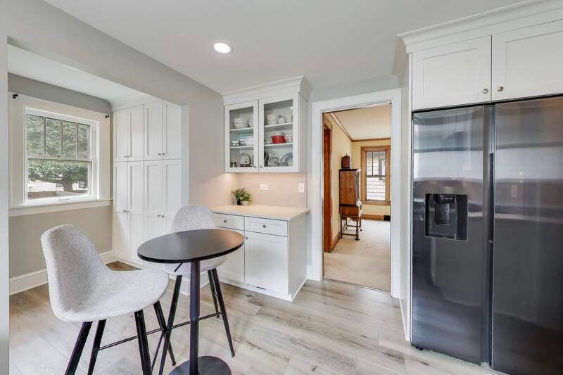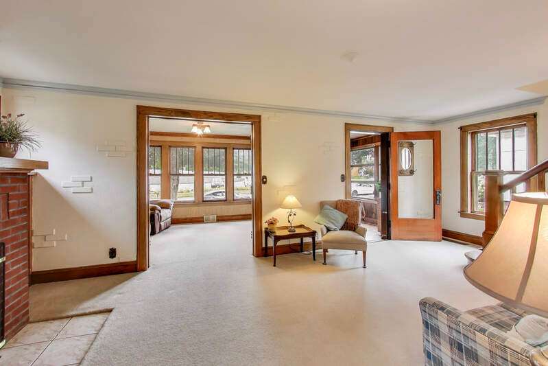 You will fall in love with this charming and well cared for 2-story home that maintains so much original character but is updated for today's lifestyle. This 4 bedroom, 1.1 bath home boasts a recently remodeled baths and kitchen featuring 42" cabinets, quartz counters and black stainless steel upgraded appliances. Enter the home through the charming enclosed porch into the living room with a beautiful original brick wood burning fireplace, built-ins, arched doorways, coved moldings and original millwork. The family room opens off the living room and features wall to wall windows and french doors. Enjoy meals in your formal dining room which bridges the living area and kitchen. Upstairs you will find 3 generously sized bedrooms each boasting walk-in closets and a recently remodeled full bath. A plus is the 4th bedroom on the main level! The full basement expands the living area and is incredibly versatile offering a finished room perfect for an office, hobbies or even more storage and a large workroom! An exterior door in the laundry area makes clean up after dirty days a breeze. The large backyard is equipped with a spacious 2 car garage and soccer sized lawn. Located walking distance to schools, train, parks, lakes and shopping. With newer roof and gutters with screens, PEX water lines throughout and updated electric, there is nothing to do but move in and make it yours! Highest and best due 2 PM Friday, 9/12
