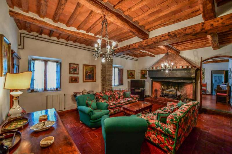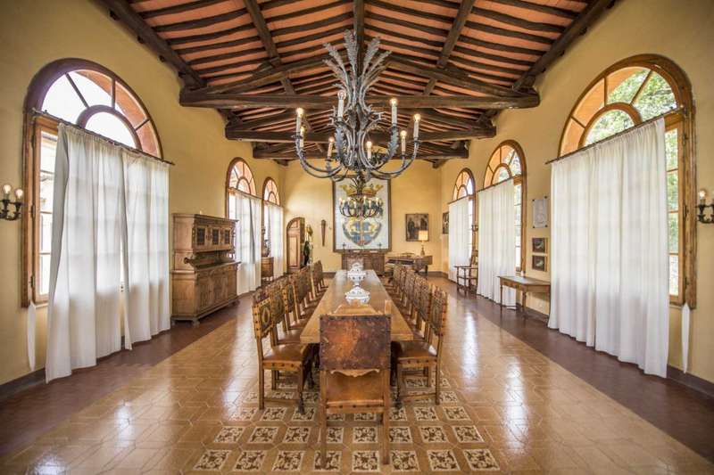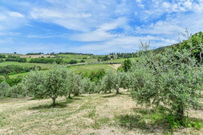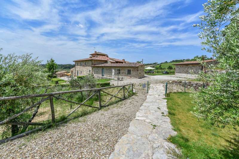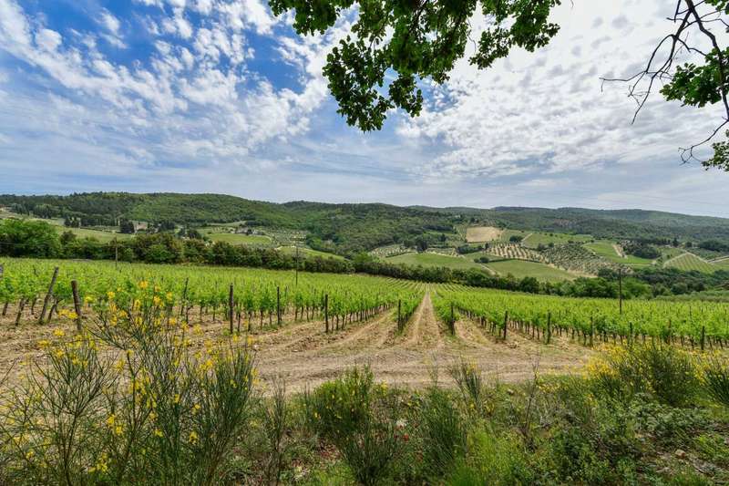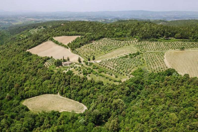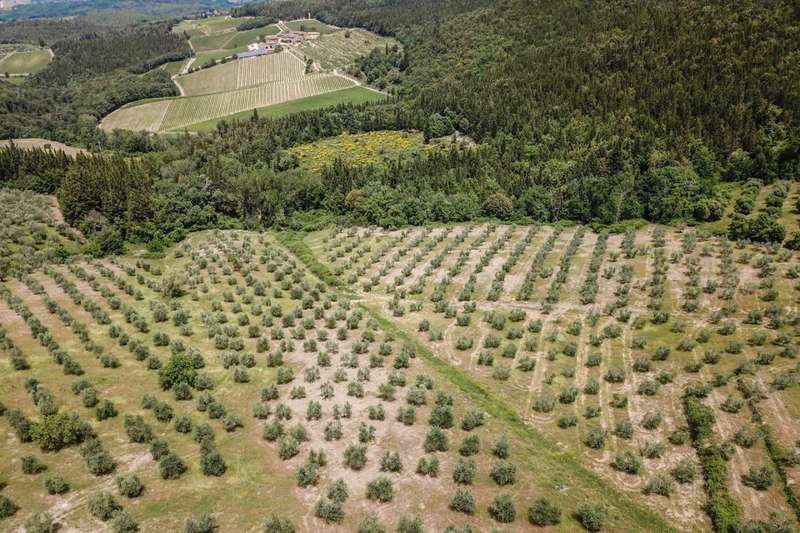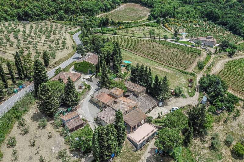In the heart of Chianti Classico, in a panoramic position not far from Castellina, this 158.5-ha estate hosts several buildings (4,431 sqm) among which a manor villa, a wine cellar and farmhouses currently used for guests Agriturismo. The vineyards (19.4 ha) allow producing up to 110,000 bottles of Chianti Classico DOCG and Reserve wine, while the olive grove (21.2 ha) can produce up to 5,000 kg of oil. The estate is easily reached via the municipal road network and is located right in the heart of Tuscany, a feature which greatly enhances its appeal as an accommodation business, allowing easily moving throughout Tuscany and easily connected to airports. Villa Iolanda (935sqm –8 beds - 8 baths) is a building in late-baroque style and dates back to the 18th century. The restoration was carried out between 2003-04. The building houses 3 halls, one of which with independent access, 2 dining rooms, a studio, 8 double bedrooms with private bathroom. The villa is embellished by a finely landscaped garden which hosts the panoramic swimming pool. The manorial complex is completed by a warehouse, a tavern with oven and a consecrated chapel ideal to celebrate weddings. Naccolino (837sqm –12 beds and 12 baths) is a 14th-century building split into 5 apartments with independent access and can host up to 25 pers. Outside, a swimming pool is reserved for the guests of the structure. Casa al Bosco (258 sqm -7 beds-6 baths) is a 14th-century building split into 4 apartments which could host up to 14 pers. The farmhouse is located amidst the wood, in a quiet and retired location. The hamlet Naccolone (1,692sqm) is the real heart of the estate and is made up of buildings dating back to the 14th century assembled around a small square with a fountain. These buildings house the offices, the salesroom, the wine cellar (671sqm) and the olive mill (162sqm). Other rooms can be used by the staff. We have the 14th-century Podere Gaversa (356 sqm 4 beds - 2 baths), not yet restored but split into 2 apartments: Lastly, the building Capraie (353 sqm) houses ample storage rooms and a garage. The buildings in the property, except for the manor villa, are Typical Tuscan farmhouse with stone and masonry walls. Inside, all the typical features of countryside buildings have been preserved and we can find terracotta floors, wooden beams and stone fireplaces. The villa is a beautiful 18th-century building with original finishes which include ample halls with huge windows allowing a great deal of light to enter the building. The estate covers a total surface of 158.5 hectares. Backbone of the estate are the Chianti Classico DOCG vineyards (19.4 ha) and the olive grove (21.2 ha). The remaining surface is split among fruit orchard (0.3 ha), mixed woodland (105 ha), arable and unused land (12.6 ha). Buildings are surrounded by gardens and pertinences for a total of approximately 13,700 sqm.