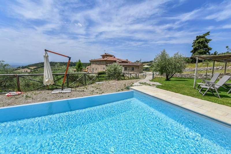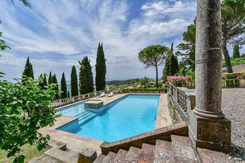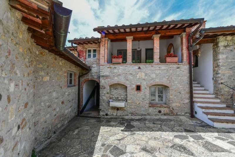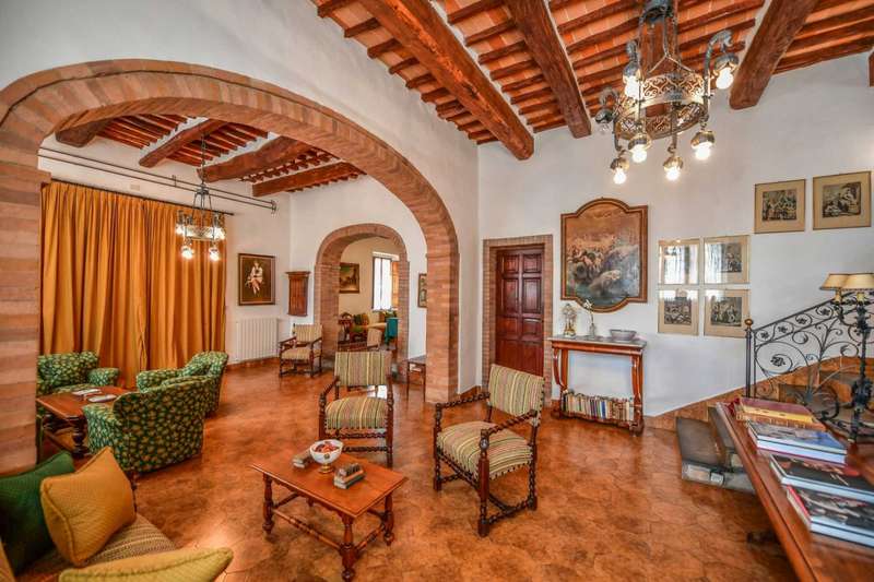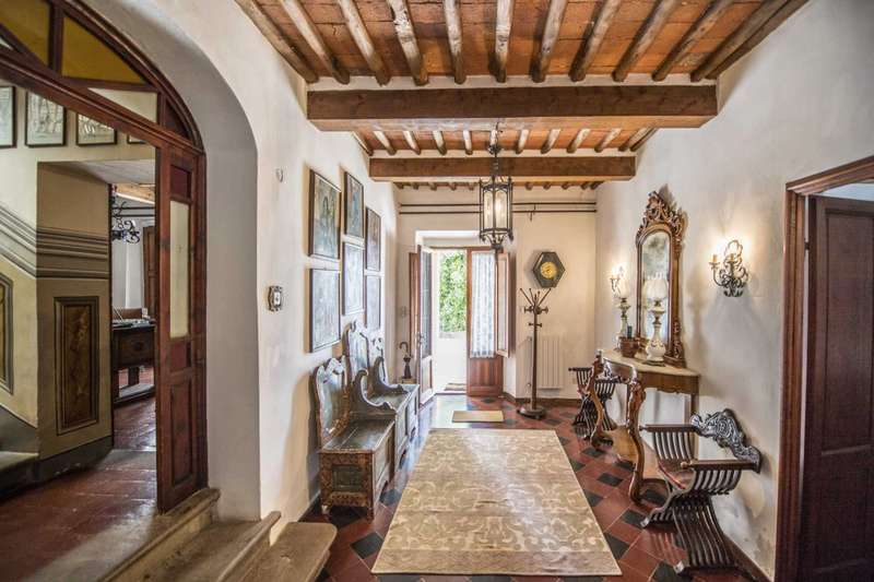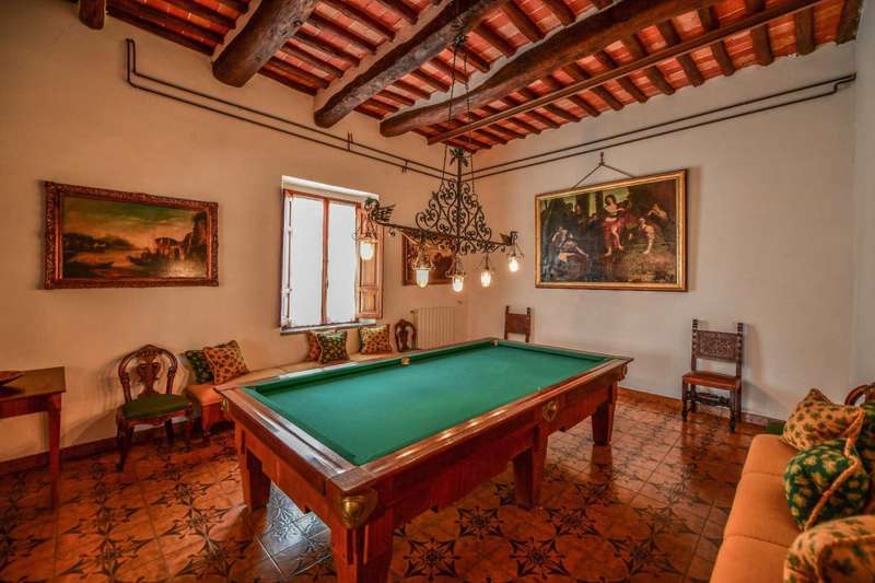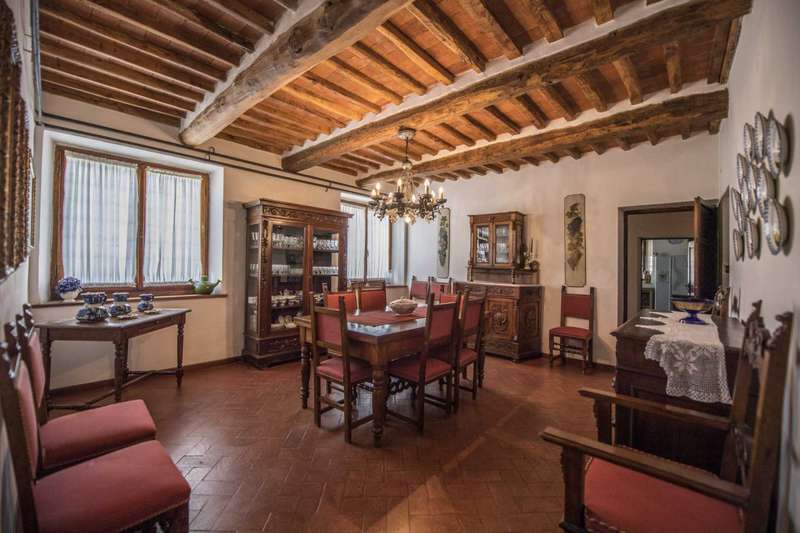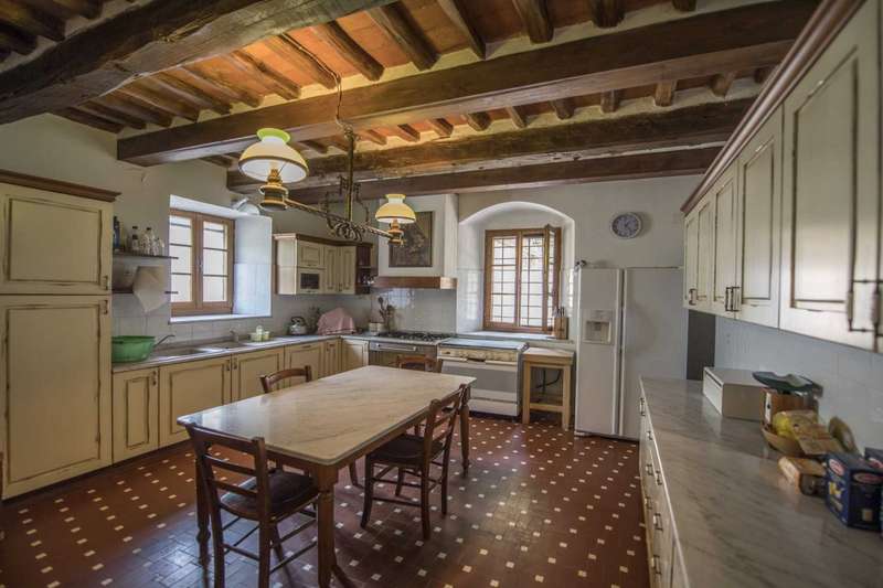In the heart of Chianti Classico, in a panoramic position not far from Castellina, this 158.5-ha estate hosts several buildings (4,431 sqm) among which a manor villa, a wine cellar and farmhouses currently used for guests Agriturismo. The vineyards (19.4 ha) allow producing up to 110,000 bottles of Chianti Classico DOCG and Reserve wine, while the olive grove (21.2 ha) can produce up to 5,000 kg of oil. The estate is easily reached via the municipal road network and is located right in the heart of Tuscany, a feature which greatly enhances its appeal as an accommodation business, allowing easily moving throughout Tuscany and easily connected to airports. Villa Iolanda (935sqm –8 beds - 8 baths) is a building in late-baroque style and dates back to the 18th century. The restoration was carried out between 2003-04. The building houses 3 halls, one of which with independent access, 2 dining rooms, a studio, 8 double bedrooms with private bathroom. The villa is embellished by a finely landscaped garden which hosts the panoramic swimming pool. The manorial complex is completed by a warehouse, a tavern with oven and a consecrated chapel ideal to celebrate weddings. Naccolino (837sqm –12 beds and 12 baths) is a 14th-century building split into 5 apartments with independent access and can host up to 25 pers. Outside, a swimming pool is reserved for the guests of the structure. Casa al Bosco (258 sqm -7 beds-6 baths) is a 14th-century building split into 4 apartments which could host up to 14 pers. The farmhouse is located amidst the wood, in a quiet and retired location. The hamlet Naccolone (1,692sqm) is the real heart of the estate and is made up of buildings dating back to the 14th century assembled around a small square with a fountain. These buildings house the offices, the salesroom, the wine cellar (671sqm) and the olive mill (162sqm). Other rooms can be used by the staff. We have the 14th-century Podere Gaversa (356 sqm 4 beds - 2 baths), not yet restored but split into 2 apartments: Lastly, the building Capraie (353 sqm) houses ample storage rooms and a garage. The buildings in the property, except for the manor villa, are Typical Tuscan farmhouse with stone and masonry walls. Inside, all the typical features of countryside buildings have been preserved and we can find terracotta floors, wooden beams and stone fireplaces. The villa is a beautiful 18th-century building with original finishes which include ample halls with huge windows allowing a great deal of light to enter the building. The estate covers a total surface of 158.5 hectares. Backbone of the estate are the Chianti Classico DOCG vineyards (19.4 ha) and the olive grove (21.2 ha). The remaining surface is split among fruit orchard (0.3 ha), mixed woodland (105 ha), arable and unused land (12.6 ha). Buildings are surrounded by gardens and pertinences for a total of approximately 13,700 sqm.