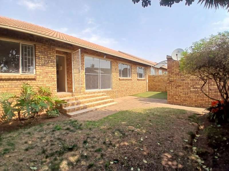 Spacious 3-Bedroom Simplex Townhouse Discover modern living in this beautifully designed 3-bedroom simplex townhouse, where convenience meets comfort! Key Features: Bedrooms: 3 spacious bedrooms, each with built-in cupboards and tiled floors, offering plenty of space for relaxation. Bathrooms: 2 full bathrooms, 1st bathroom with bath, shower, toilet, and basin; the main bedroom features an en suite with bath, toilet, and basin. Kitchen: A modern kitchen with Melamine countertops and ample cabinetry, plus space for 2 under-counter appliances. Enjoy meals in the separate dining room. Lounge: A large, inviting lounge with tiled floors and a spacious study. Outdoor Space: Enjoy your private garden, ideal for pets and family gatherings. Parking: Double garage plus 2 additional parking bays. Location: Perfectly situated within walking distance of shops, making it an ideal choice for families or anyone seeking convenience and style. Contact Us: Don’t miss out on this charming home! Contact us today to arrange a viewing.