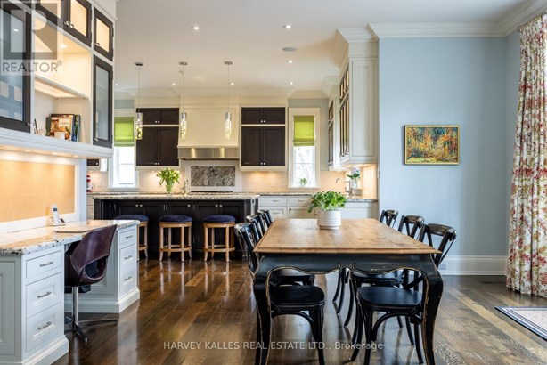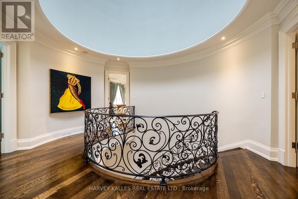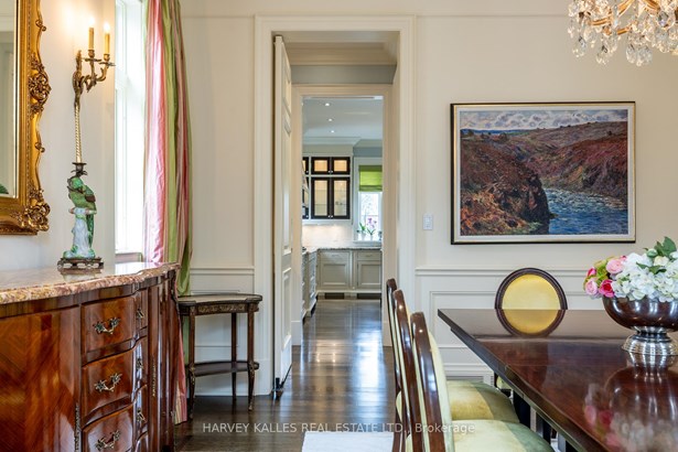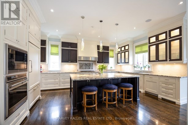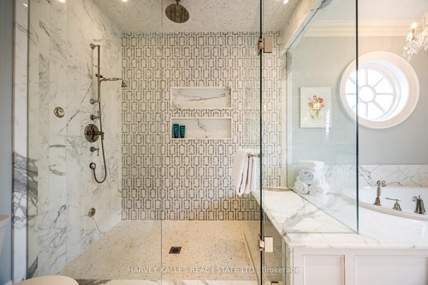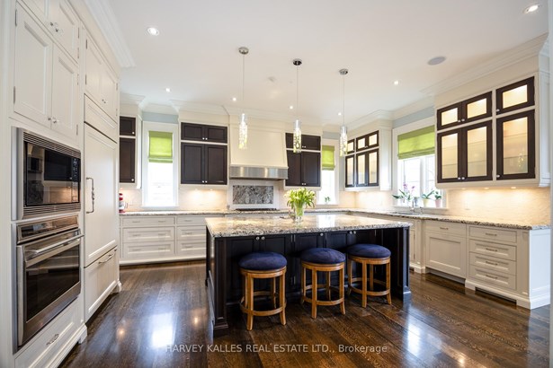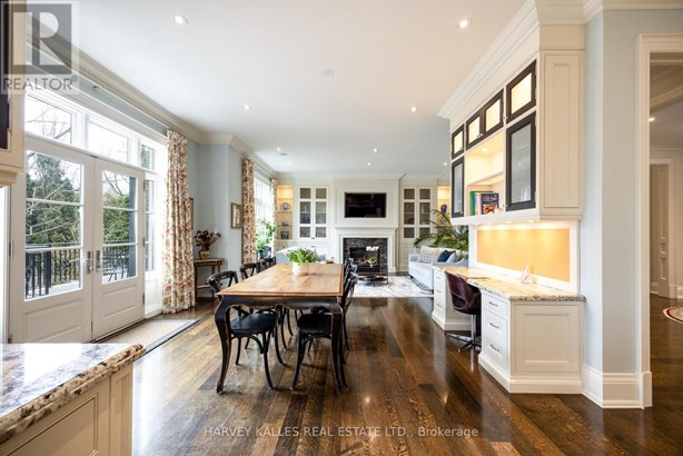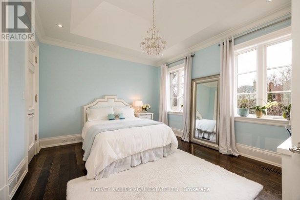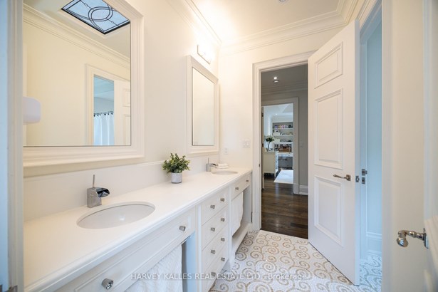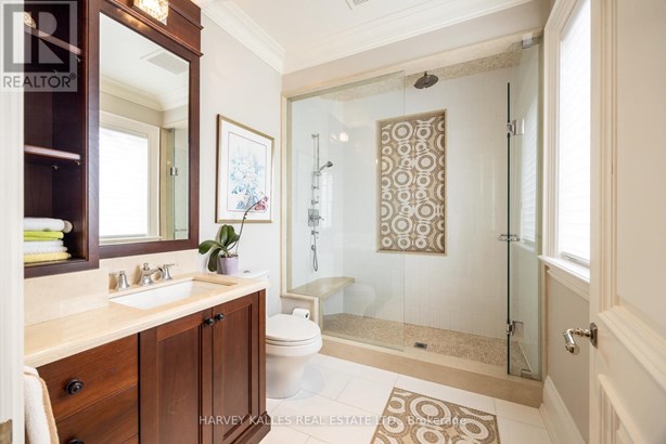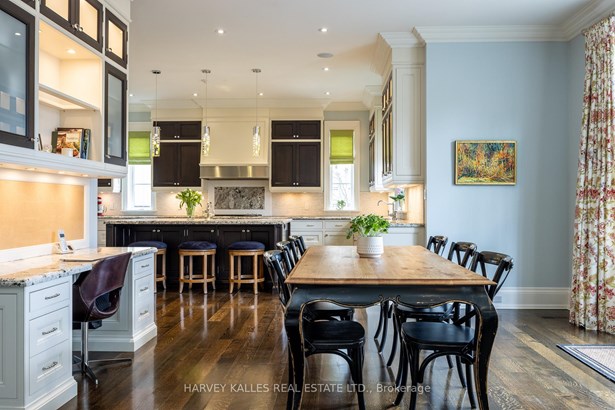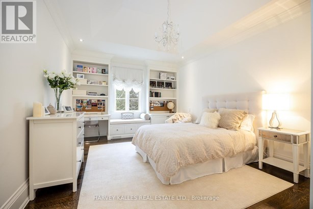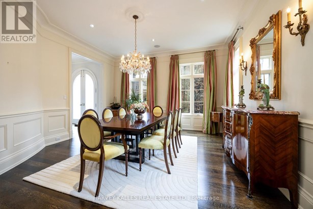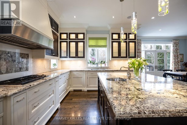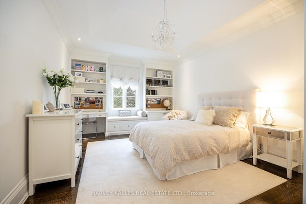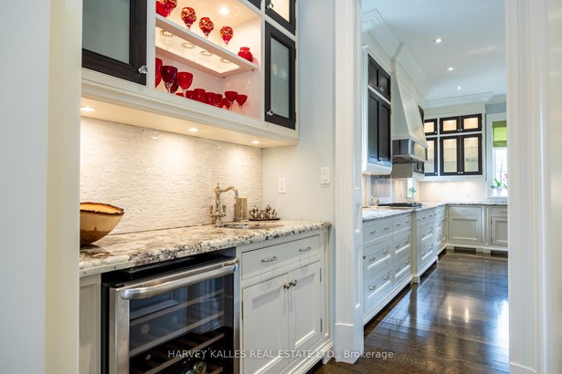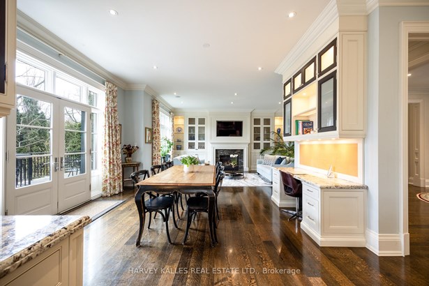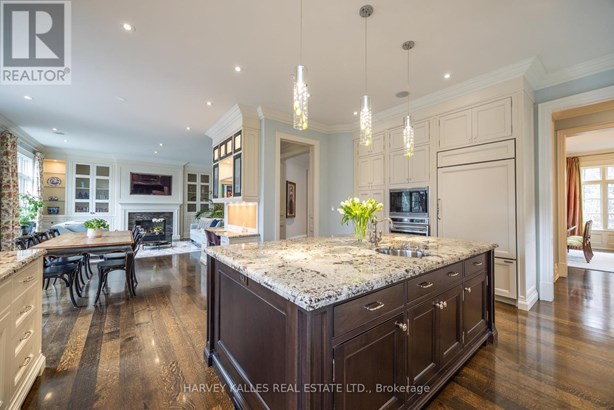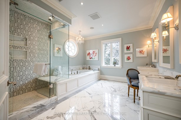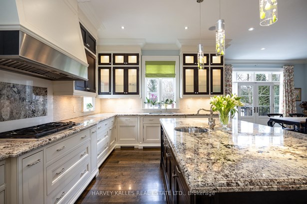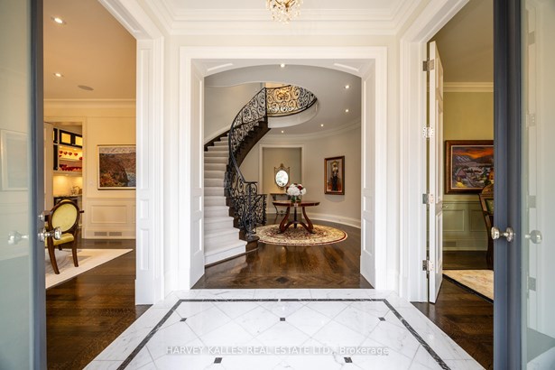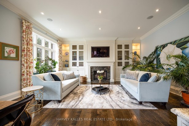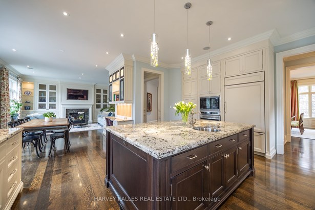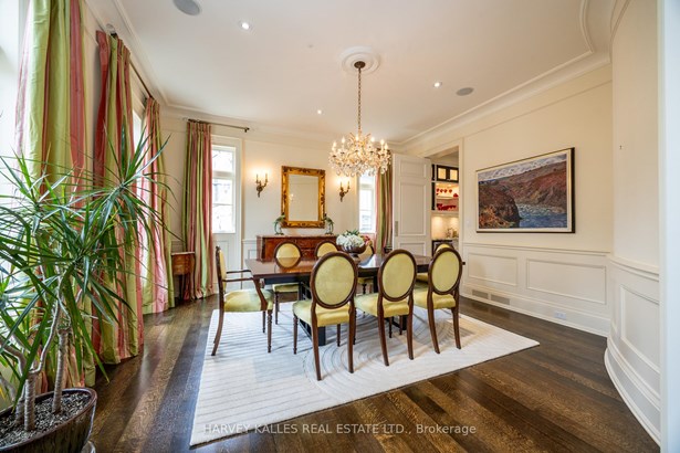 Welcome to 50 Lawrence Crescent a refined, custom-built residence in the heart of prestigious Lawrence Park. Completed in 2011, this timeless home was designed and executed by a dream team: Architect Lorne Rose, Interior Designer CMID, Landscape Architect the late Egils Dirdrichsons, and Project Manager LeBoeuf Jones. Set on a rare pie-shaped 50' x 151' lot that widens to 80 at the rear, the home is framed by perfectly manicured, professionally landscaped grounds featuring a Bona Vista saltwater pool with marblite finish, Lynx built-in BBQ, and elegant stone terrace creating a private, resort-style oasis in the city. Offering over 6,139 Sq. Ft. of interior living space, this home is designed with a classic centre hall layout and tremendous attention to detail throughout. The main floor boasts 10' ceilings, wide-plank oak hardwood, custom millwork, and sophisticated principal rooms, including a formal living room (or study), an oversized dining room, and a sun-filled family room with gas fireplace and built-ins. The gourmet kitchen features Sub-Zero, Wolf, and Bosch appliances, granite countertops, custom cabinetry, and a large centre island with bar seating. French doors provide a seamless connection to the backyard. The upper level offers a serene primary suite with vaulted ceilings, a large dressing room, and a 9-piece marble-clad ensuite with heated floors and steam shower. Three additional bedrooms feature ensuite or semi-ensuite baths and walk-in closets. The finished lower level includes radiant heated floors, a large rec room with wet bar, home gym, fifth bedroom with ensuite, and walk-up to the backyard. Impeccably maintained, this home exudes pride of ownership. Located in the top-rated Blythwood Junior Public School and Lawrence Park Collegiate Institute districts, and walking distance to Toronto French School, Lawrence subway, and in close proximity to Toronto's top private schools. A rare opportunity on one of Lawrence Parks most desirable streets.