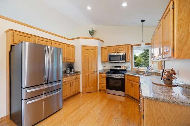 Set on a peaceful corner lot, this home blends comfort, function, and charm. Hardwood floors connect the foyer, living room and kitchen, setting a warm tone throughout the main level. The sunroom, filled with natural light, is a year-round retreat—perfect for morning coffee or getting lost in a good book. The well-appointed kitchen offers granite countertops, stainless steel appliances, and a walk-in pantry. The walkout lower level, with new carpet, BRAND NEW Water Heater, a gas fireplace, and custom built-ins, is ideal for cozy movie nights or hosting friends. The lowest level expands the possibilities even further with flexible space for a gym, playroom, or guest suite. Upstairs, you’ll find three spacious bedrooms and a dedicated laundry room that keeps daily routines simple. All this, just steps from Clearwater Creek Park offering walking trails, picnic areas, and a basketball court. This home has been pre-inspected.