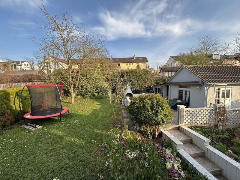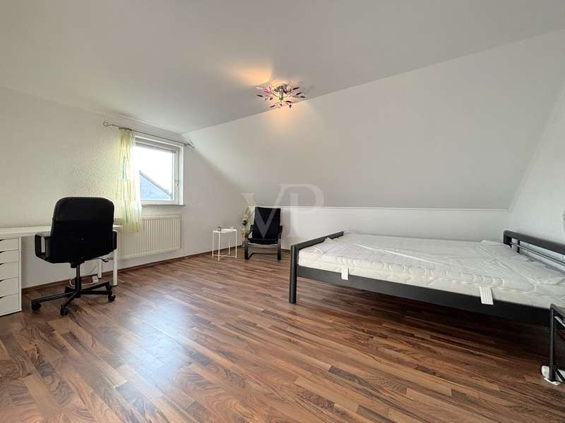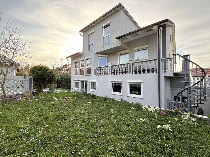 This spacious two-family house with a living space of approx. 273 m² is located on a plot of approx. 625 m² and offers enough space for large families or two households. Originally built in 1958, the property has been continuously maintained and modernized so that it presents itself in a very good and contemporary condition. The last comprehensive modernization took place in 2021. Due to the modern extension in 2002, during which an extension and the renewal of the roof including insulation, the facade and the entire water and electrical installation were carried out, the year of construction also corresponds to 2002 according to the energy certificate. The equipment of the house includes central heating, which was already renewed in 1997, and numerous windows from 2021. The property has a total of 7 bedrooms and 3 daylight bathrooms. The first floor apartment consists of 3.5 rooms with approx. 103 m² of living space. Here you will find a spacious living and dining area with a large adjoining kitchen and direct access to the garden. The spacious south-facing garden offers plenty of room and will become your favorite spot thanks to the beautiful terrace with barbecue area and garden shed - an ideal place for sociable evenings outdoors. The hallway takes you one floor up to the second apartment. The maisonette consists of 6.5 rooms with approx. 170 m² of living space. The open-plan living and dining area is flooded with light thanks to the large window fronts and, together with the high ceilings, creates a wonderful sense of space. From here you can access the balcony and the large roof terrace. The property also has a garage and two parking spaces, providing ample parking space. The quiet location of the house is surrounded by a good neighborhood. For potential buyers looking for a spacious and modernized property, this two-family home offers numerous advantages. The combination of ample space, contemporary features and a beautiful garden make this property an attractive choice. Don't hesitate to arrange a viewing and see the advantages of this house for yourself.