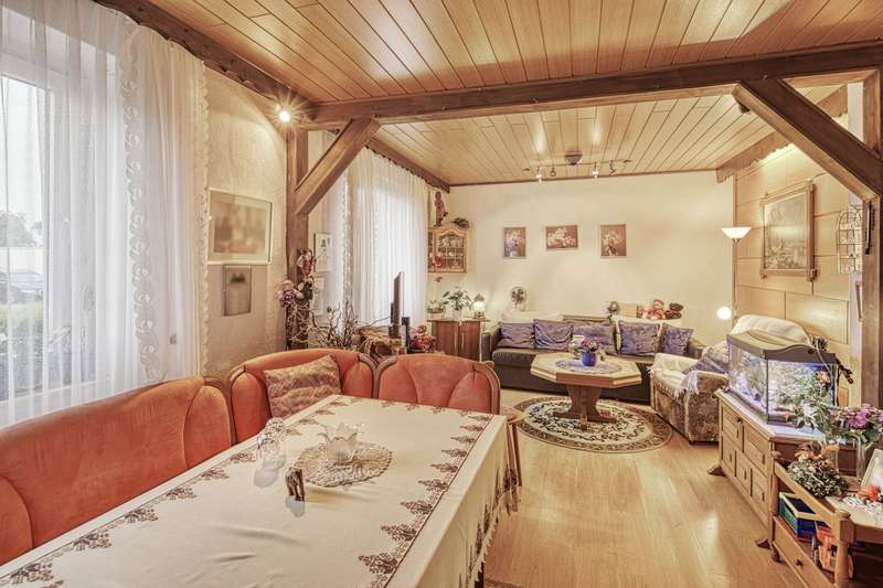 VON POLL Immobilien presents this charming detached house in Kerpen-Buir. The detached house was built in 1900 and has been rented to the same tenants for over 40 years. The basic rent is currently 470.00 euros. On the first floor, the rustic hallway leads to the guest WC, the living and dining area and the kitchen, from which there is a beautiful view of the garden. The wooden staircase leads to the upper floor. Two bedrooms lead off the large hallway. One of them is a walk-through room and therefore has two rooms. The bathroom with bathtub and another room, which is currently used as a storage room, are located in the converted attic. The beautiful garden is used by the tenant and offers plenty of space to relax. The basement offers additional storage space. The house is heated with gas heating from 2000. The so-called "Buirer Sprung" runs through part of the property. We would be happy to provide you with more information about this in a further conversation. There is also a hall of approx. 100 m² on the property, which has also been rented out for many years. The monthly rental income for this amounts to 100.00 euros. Further development of the property would also be possible. Please note that the building authorities do not have any documents relating to the property. Please contact us for an individual viewing appointment. We look forward to seeing you!