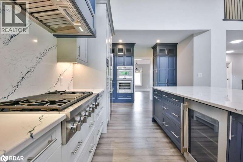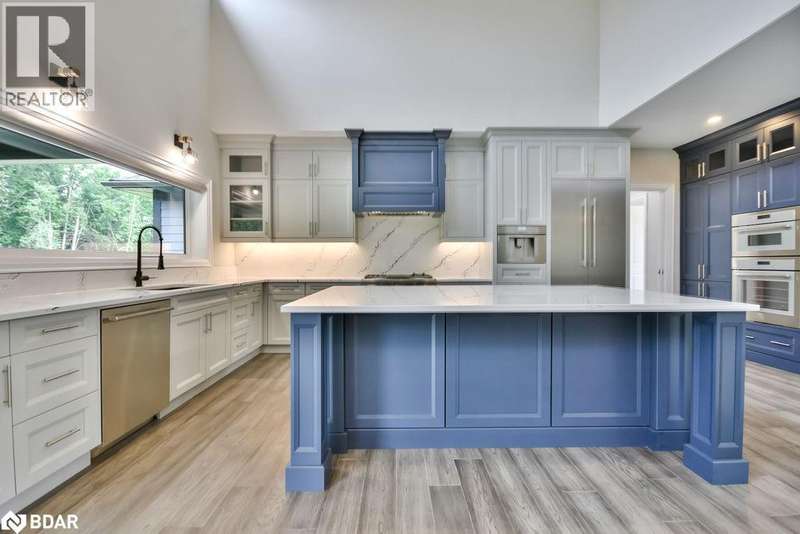 One-of-a-Kind in Braestone Estate Home with Legal Coach Apartment! Welcome to 4 Clydesdale Court, a custom-designed estate-style home perfectly positioned on a quiet court. Backing onto green space, this stunning residence blends timeless craftsmanship with upscale finishes, offering a luxurious lifestyle minutes from Barrie and Orillia. The open-concept main floor features soaring vaulted ceilings, oversized windows, and a gas fireplace. Walk out to a covered balcony with composite decking and glass railings perfect for serene views or entertaining. The chef-inspired kitchen includes granite counters, pantry, custom cabinetry, and $75k in built-in Thermador appliances. The main floor primary suite is a true retreat with a spa-like 5-piece ensuite, soaker tub, walk-in shower, and heated floors. Additional main floor highlights include a formal dining room, a den (ideal office or bedroom), a stylish powder room, and laundry. Upstairs, two large bedrooms each have 3-piece ensuites and walk-out access to a shared balcony. A major highlight is the finished triple car garage with private entry to a bright, self-contained legal coach apartment complete with kitchen rough in, bathroom, and laundry -ideal for family, guests, or rental income. The full-height unfinished basement with large windows offers excellent future potential for additional bedrooms, rec-room or home gym - the possibilities are endless. Enjoy the best of Braestone award-winning for its trails, equestrian features, farm-to-table charm, and vibrant community. Close to skiing, golf, Bass Lake, and major commuter routes, this rare offering combines privacy, elegance, and lifestyle in Oro-Medonte's most sought-after neighborhood. (id:7434)