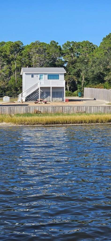 **Bayfront Sportsman Paradise & Family Retreat** Welcome to your dream getaway! This immaculate bay front property combines relaxation and adventure in a stunning setting. Enjoy panoramic views of Dog Island from your spacious lounge swing beneath the house, and soak in breathtaking sunrises and sunsets from your expansive front decks. Conveniently located just a short golf cart ride from town and the public boat launch, this retreat offers the tranquility of country living while remaining close to local amenities. With 225 feet of waterfront and a 210-foot dock, you'll have plenty of space for boating and fishing. **Property Highlights:** - Fully renovated kitchen and baths featuring new pecky cypress countertops and replaced cabinet doors - new barn style doors. Cozy gas log fireplace - Elevator for easy access - Newly replaced double sliding doors in the kitchen - High-quality Pella windows and doors throughout the main house - Durable laminate wood plank flooring - Low-maintenance aluminum siding and a metal roof . Inside, you'll find one large bedroom, 2 full baths. The AC in the main house is just three years old. A 48 x 60 pole barn for ample parking of all your automobiles and toys. This home comes furnished, including outdoor furniture, making it move-in ready. It has a 2-story detached garage and the upstairs is a fully renovated studio apartment with breathtaking views with a full kitchen and bath. The spacious lot offers numerous opportunities—whether you want to rent, build more, or simply enjoy the ample outdoor space. With three driveway entrances, access is easy and convenient. For added privacy, the St. Joe Paper Company owns the land to the east of this parcel, enhancing the seclusion of your retreat. Equipped with two private wells and a septic system, this property is MOVE IN ready Just minutes away from Dog Island by boat and a short drive to Carrabelle Beach, this is the ultimate sportsman's paradise and family escape.