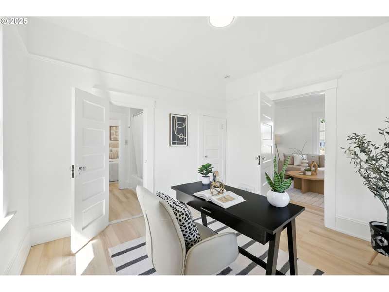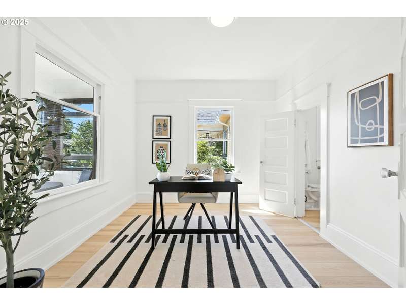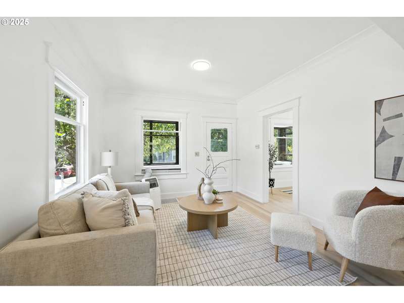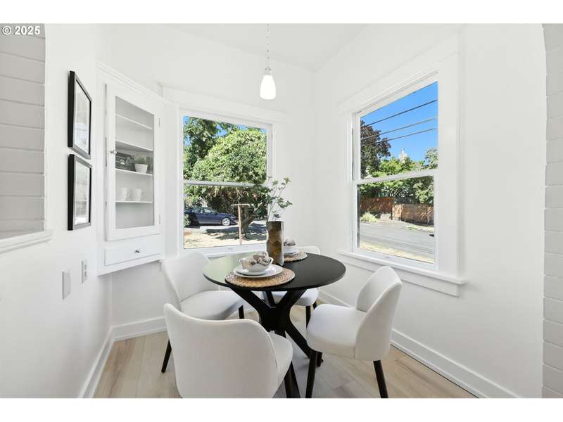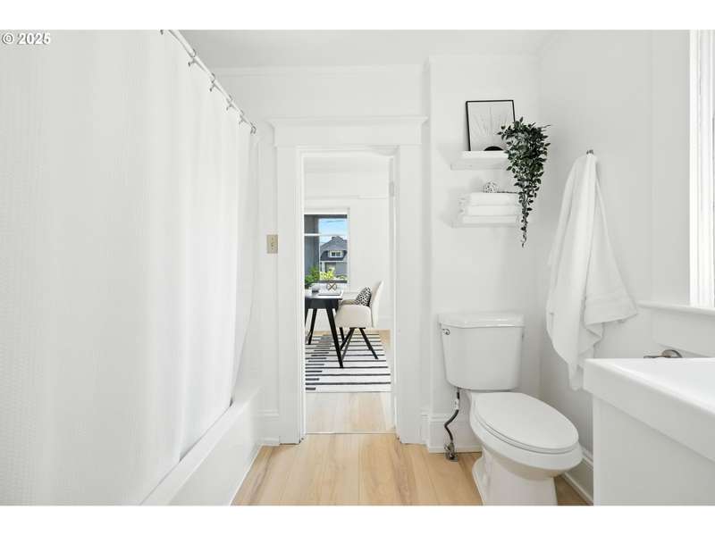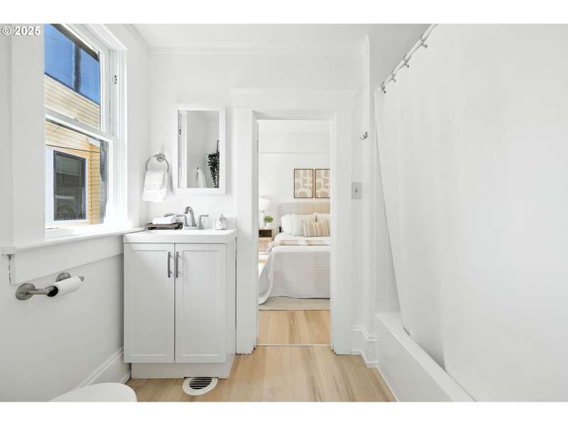 Welcome to 1908 charm in coveted S. Portland just steps from the Willamette River. The curb appeal here isn’t just a rumor—it’s a fact! Step onto the inviting porch and envision yourself waving to neighbors while sipping something delicious. Open the front door and you’ll be greeted by sunlight, gleaming across new LVP flooring and interior paint. The spacious living/dining room is perfect for lively game nights or quiet afternoons. The updated kitchen includes new quartz countertops and even a cozy, bright breakfast nook. There are two bedrooms on this level, one for you and another for guests or a home office with a bathroom in between! Bedroom three is downstairs for anyone needing a creative studio, or a dedicated “do not disturb” zone with its own adjacent bathroom. It would also make a great ADU with it's own exterior door, and zoning allows for additional ADU structures outside too! There’s plenty of space for gardening, lawn games, or simply lounging in the sun with a good book. Enjoy the best of Portland living: paddle board on the river, enjoy tree-lined streets, friendly faces, and walkable access to coffee shops, parks, and schools. Seller-carried financing is an option at lower than market interest rates or Lender partner is offering a one-year interest rate buy down, so don't miss out on this great opportunity! Let’s make history together—one charming room at a time! [Home Energy Score = 4. HES Report at https://rpt.greenbuildingregistry.com/hes/OR10241246]