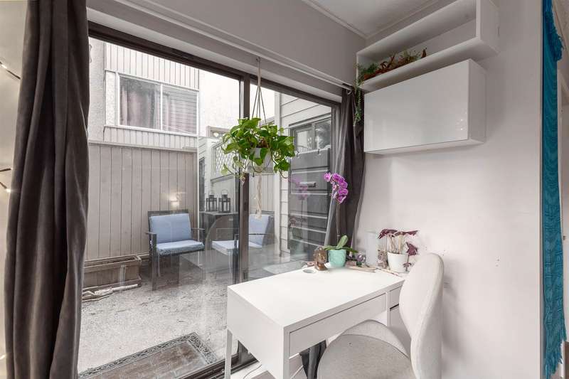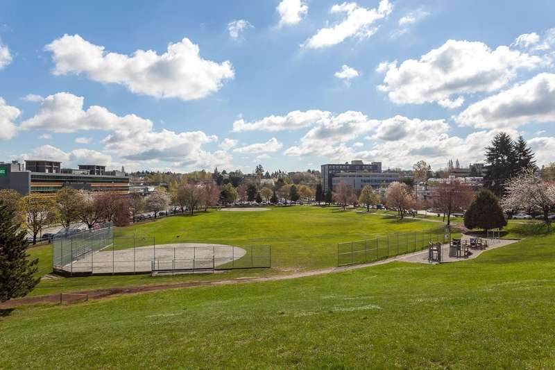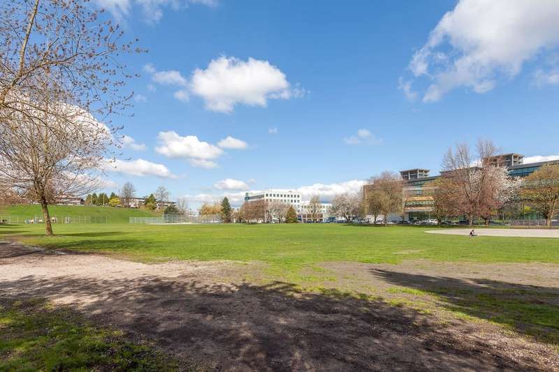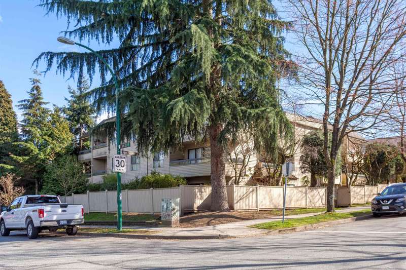 Bright corner unit in quiet and serene location! This nicely laid out junior 1 bedroom looks larger than its square footage. Enjoy open concept living and spacious patios surrounded by trees. Freshly painted, vinyl flooring and updated kitchen make this unit ready to move in. Well maintained Landmark building offers secure underground parking and full size storage locker. Strata fees include heat and hot water. Conveniently close to Broadway, Emily Carr, Main St, and a short drive to Downtown. Great for first time buyers, investors, or to be used as a pied-a-terre.