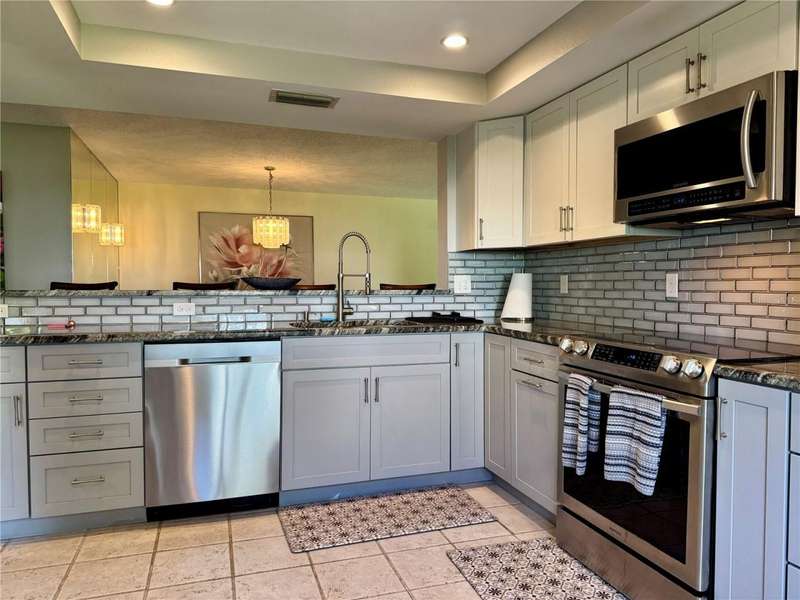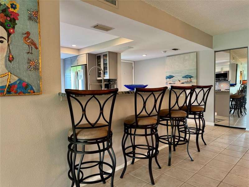 Welcome to this 1st-floor all-age condo that epitomizes effortless luxury and convenience. This turn-key furnished residence boasts 3-bedrooms, 2-full baths, and a carport. It provides a perfect blend of spaciousness and comfort. Revel in the stunning views of the IMG GOLF COURSE from the comfortably furnished lanai. The interior features an open floor plan that seamlessly connects the living spaces, highlighted by a RECENTLY REMODELED KITCHEN adorned with stone countertops. The kitchen's modern design sets the stage for culinary delights, while the stone countertops extend to both bathrooms, adding a touch of sophistication to these spaces. Immerse yourself in the tasteful ambiance of this beautifully furnished condo, where neutral tones create an inviting and timeless atmosphere. Safety and durability are prioritized, with the sliding doors facing the golf course being upgraded to IMPACT-RESISTANT WINDOWS(2022). Enjoy the outdoor patios -- One to the front of the home and the second overlooking the golf course. Convenience is essential, as this condo is strategically located near the airport, IMG Academy, State College of Florida, shopping destinations, Anna Maria Island, pristine beaches, and upscale dining options. Embrace the Florida lifestyle in this meticulously maintained and thoughtfully appointed condo, where every detail has been carefully curated for your comfort and enjoyment.