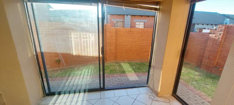 Open Plan Living with an enclosed Patio and Private Garden This Stunning 3 bedroom Town house with an enclosed patio and one full bathroom is in the heart of Centurion West and is perfectly situated close to a private hospital, private & public schools, Shopping centres, N14 highway, R55 as well as close to Shopping Malls. The open plan kitchen has a big Island Table that adds cupboard spaces to a kitchen that already has a lot of cupboard spaces, it also has spaces for two appliances (washing machine and dishwasher) as well as a space for a fridge, because it is an open plan, it makes it possible to cook while interacting with your friends or loved ones who are sitting in a living area. From the living area there is a sliding door that leads to a covered patio, that leads to a private garden. Did I mention that this beautiful home is fully tiled has 2 carports as well as enough parking space for visitors ? The complex is secured within a 24 hour-guarded security Estate and is fibre ready. Give me a call today to view this beautiful Property.