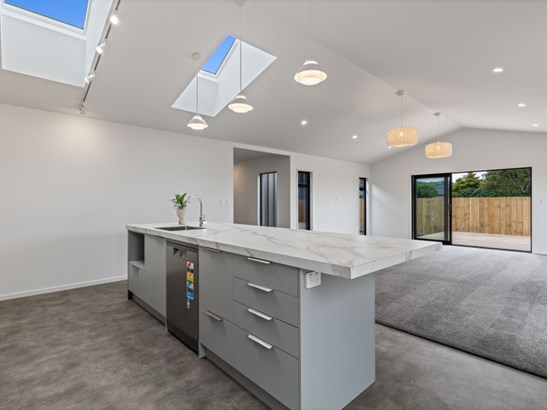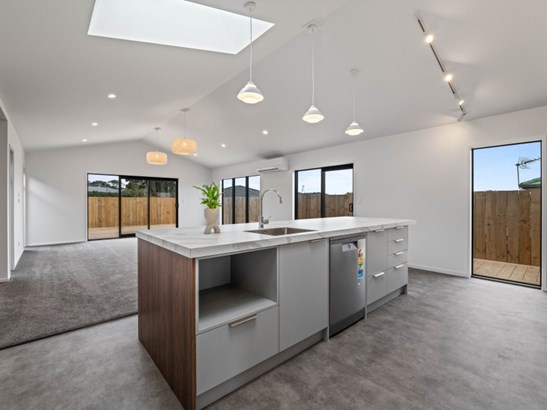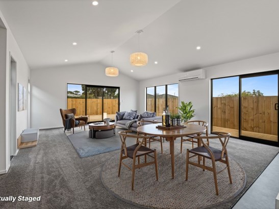 Situated a very short walk from Bell Block shops, school and swimming pool, this brand new three bedroom, two bathroom home currently being built by Cavalier Homes has a future focus, being energy efficient and very low maintenance both inside and out. Clad with colorsteel and concrete look BGC montage board gives it a modern appearance. Located on a back section, this lovely property is tastefully decorated throughout, including beautiful skylights over the kitchen, light is a big focus of this home positioned for sun. Through the front door into the foyer you are greeted with a tall window that looks straight out into a beautiful feature garden and the back yard. The short central hallway links to the open plan kitchen, dining and living area and in the other direction to the bedrooms. Heating is by way of heat pump and a state of the art Eco Spring heat pump hot water system has also been installed. The 1.5 space garage is home to the laundry and has fantastic cupboard storage space as well as an electric vehicle charger and of course comes with a ten-year Master Builders guarantee.