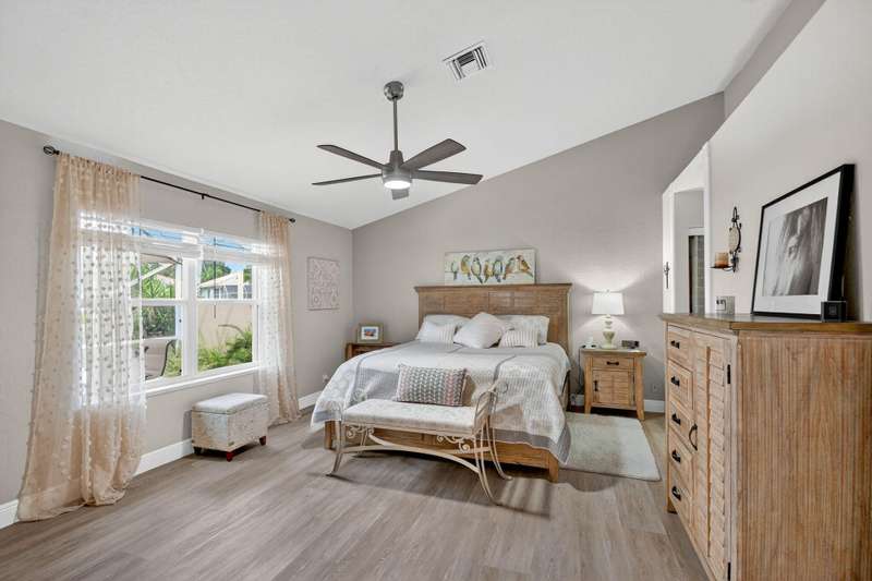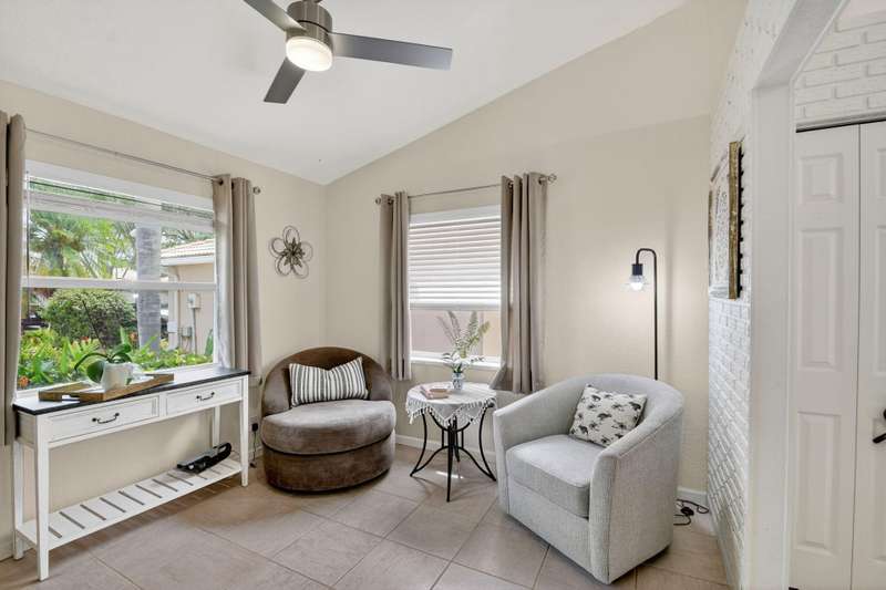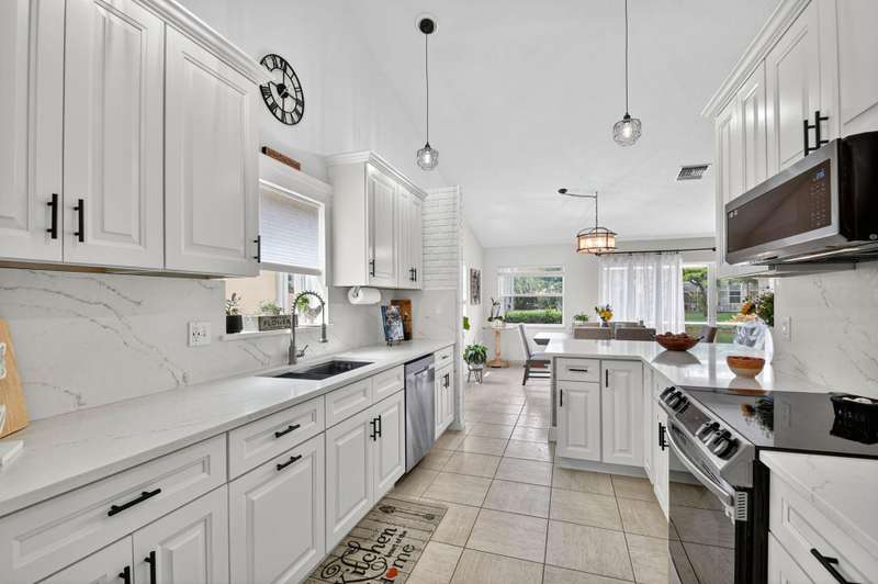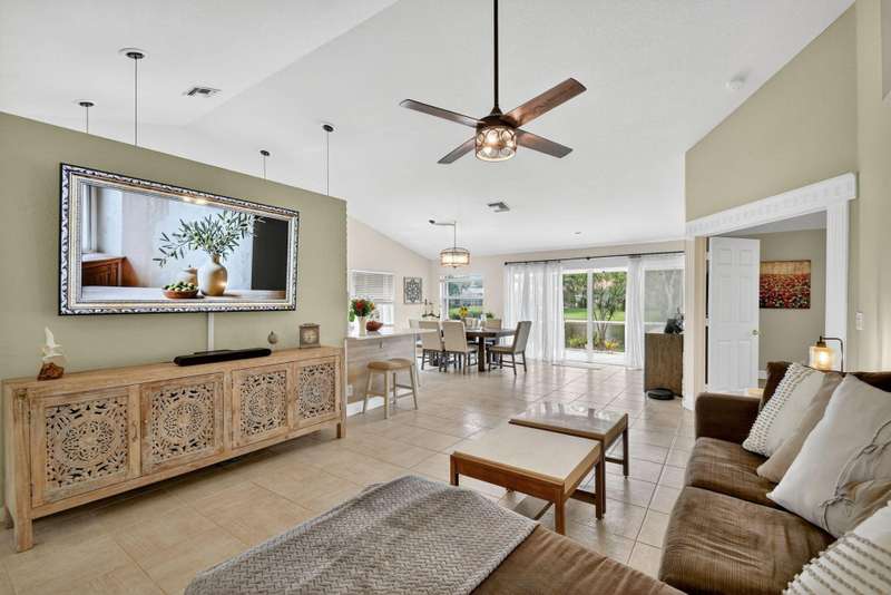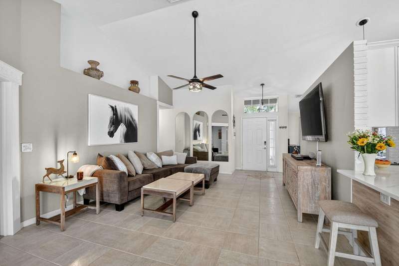 Looking for your Florida dream home? This stunning lakefront property has been completely updated with warm, inviting finishes and breathtaking views! Kitchen remodeled in 2024 with luxury upgrades including quartz countertops, bathrooms tastefully updated, and a Screened patio with serene lake views to enjoy your morning coffee or a relaxing barbecue at the end of the day. The open floor plan offers a separate Den for retreating to read a good book or enjoying some me time. A/C 2006, W/H 2024, roof original but in great condition. Community offers Resort-style community pool, fitness center & tennis courts. Low HOA includes cable, ADT, landscaping & more! Close to shopping, dining, and everything you need. Dont just dream it--live the Florida lifestyle!