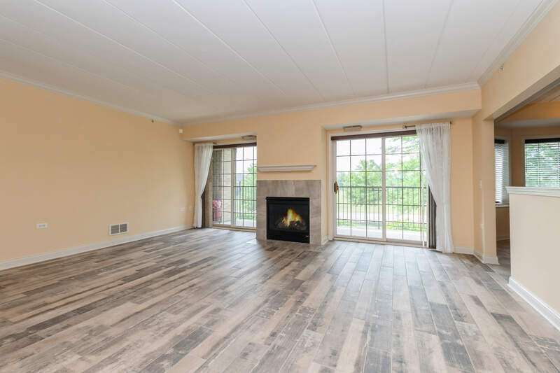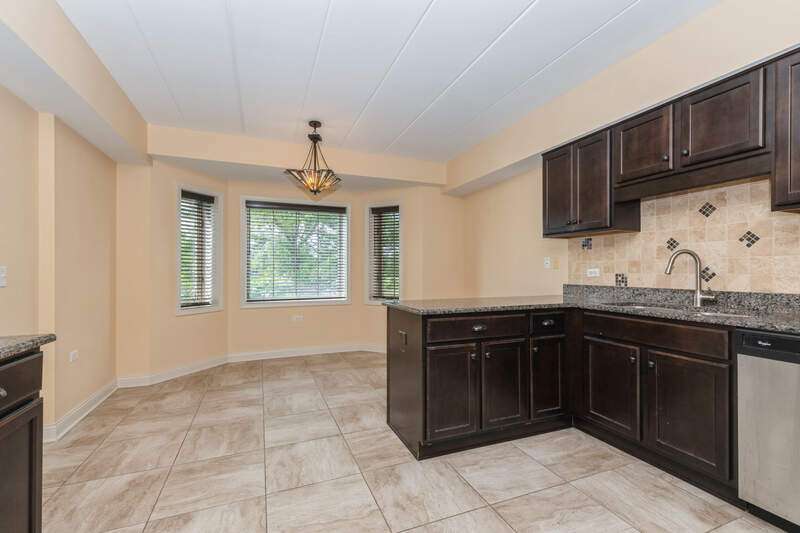 Welcome home to this beautiful and rarely available Condo in the heart of Homer Glen. Located in a beautiful all brick building. Highly sought after flexicore and elevator building. As you step inside, you will immediately notice the spacious foyer. Open floor plan with over 1,600 sq ft of living space. Sprawling living room with lots of natural lighting features a beautiful fireplace and two sliding doors to the private balcony, great for your morning tea or coffee. The dining area is perfect for your dining room or office area. Spacious eat in kitchen features granite countertops, tile backsplash, many wood cabinets, while a pantry provides ample storage space. In unit laundry room with added cabinets for convenience. The large primary bedroom features a walk in closet and en suite bathroom. The beautiful primary bath features a whirlpool tub and separate shower. The second bedroom offers double closets and beautiful French doors. Brand new windows will be installed in both bedrooms. Full hallway bathroom perfect for guests to use. Enjoy the private balcony of the living room. 1 car parking spot located in the attached heated garage and storage closet included. Near I-355/I-55, Metra, shopping, and dining. Do not miss this amazing Condo!