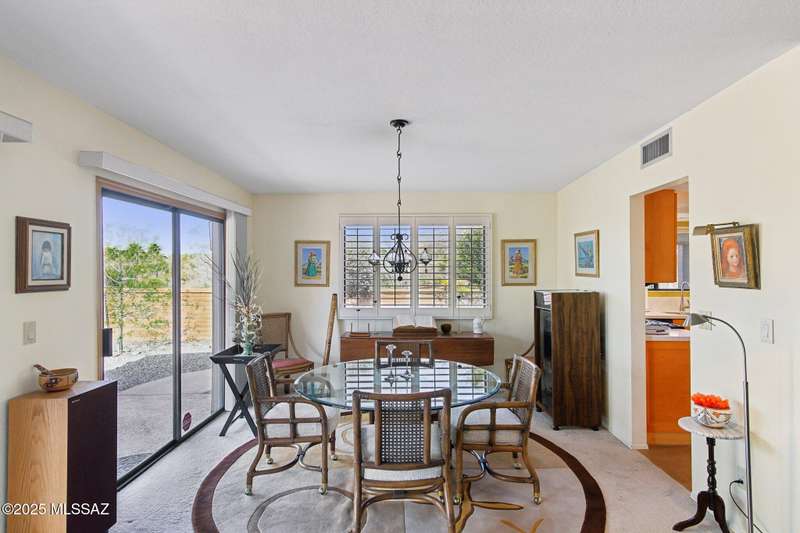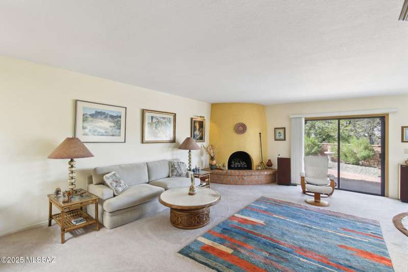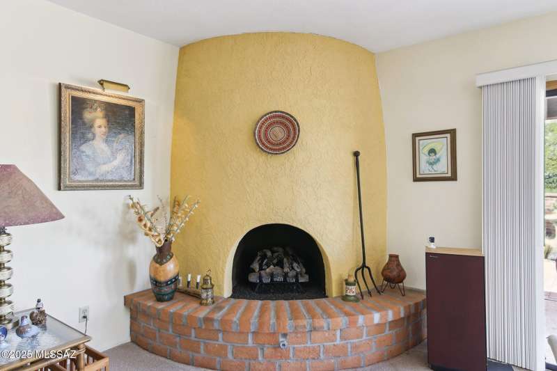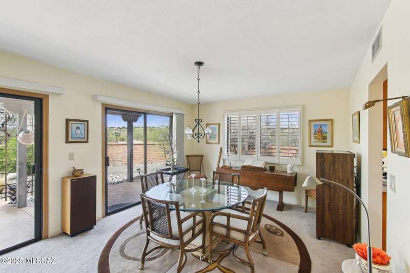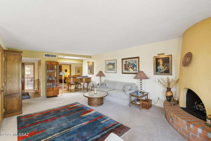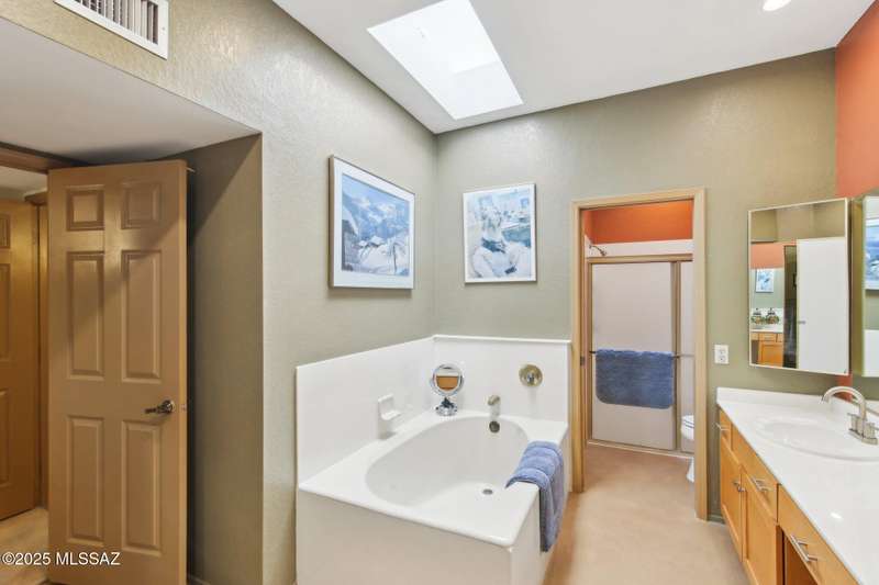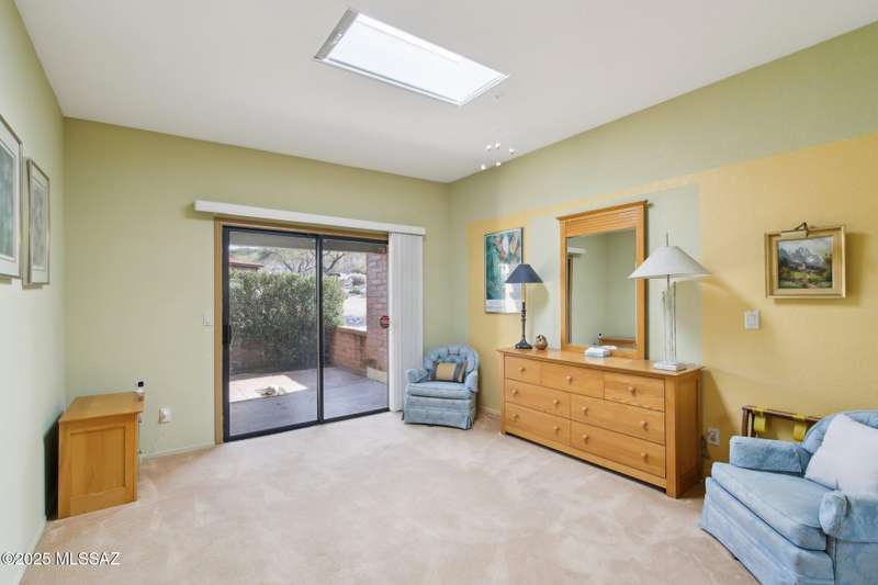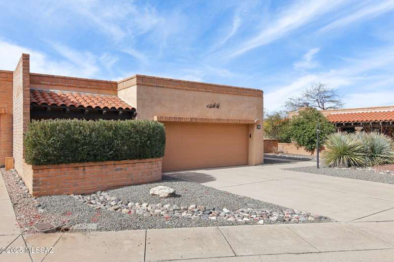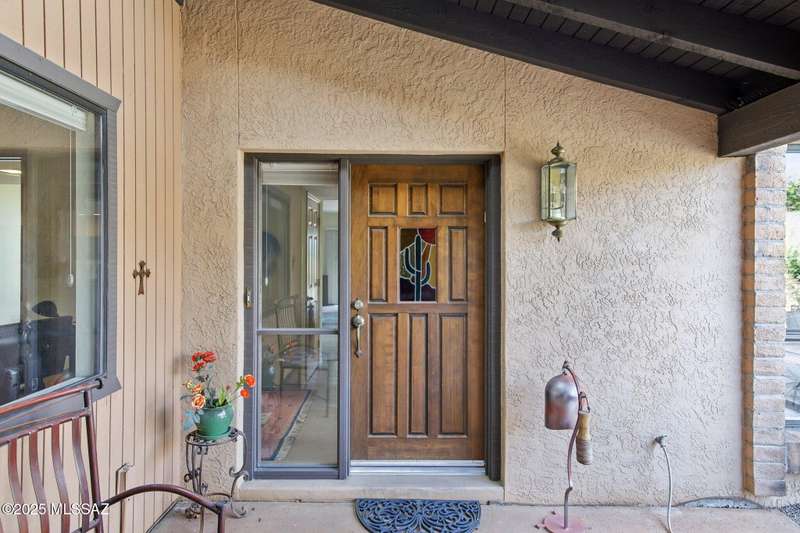 Southwest Desert Living at its finest! This beautifully maintained home offers stunning mountain and desert views, along with breathtaking sunsets and an unbeatable location. Featuring a modern, updated kitchen and bath with sleek fixtures and finishes, the home also boasts skylights and ceiling fans that enhance the airy, open atmosphere. The inviting beehive gas fireplace in the living room and multiple porch/patio areas create the perfect retreat for easy, peaceful living. The walled entry courtyard, side porch, rear porch, and low-care landscaping capture the essence of desert living. Ideally situated near the community pool, spa, and tennis courts, with easy access to shopping, medical services, and recreational areas, this home provides both convenience and tranquility.