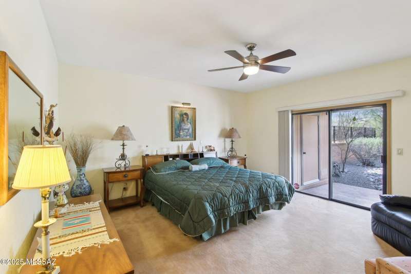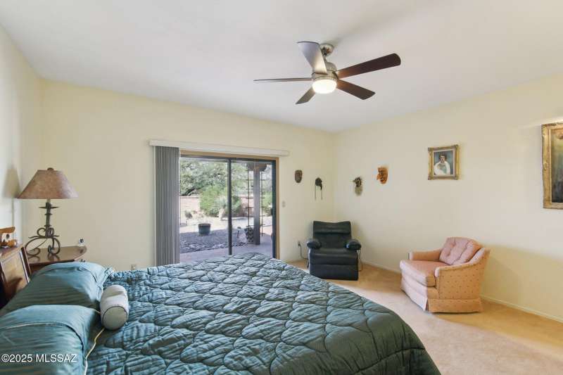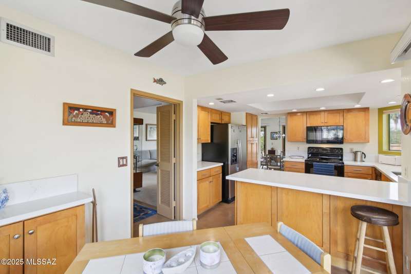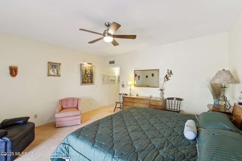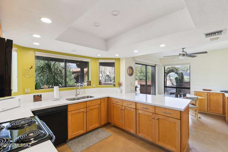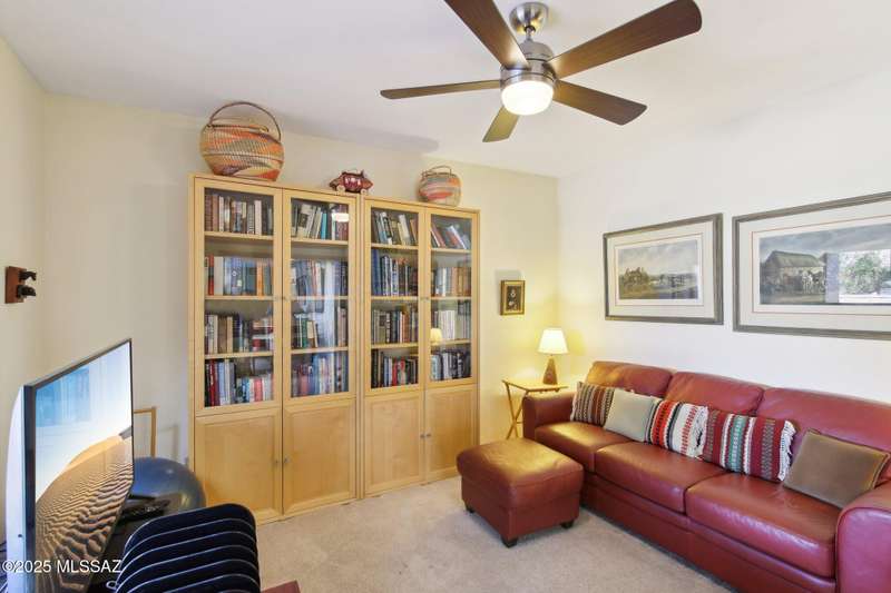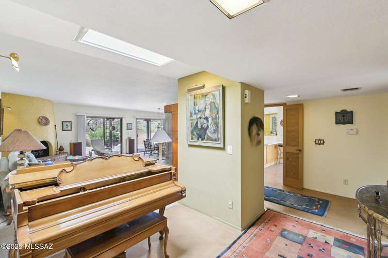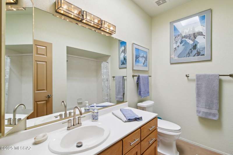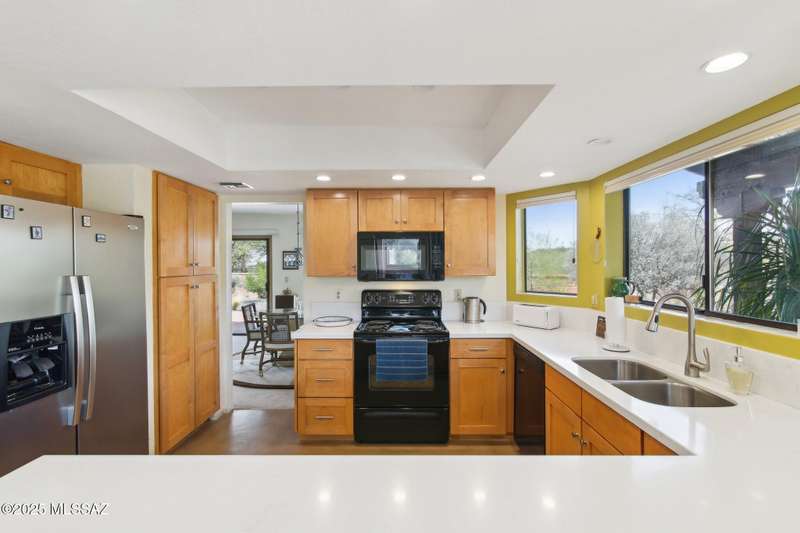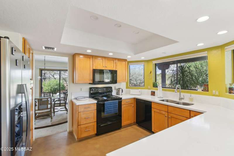 Southwest Desert Living at its finest! This beautifully maintained home offers stunning mountain and desert views, along with breathtaking sunsets and an unbeatable location. Featuring a modern, updated kitchen and bath with sleek fixtures and finishes, the home also boasts skylights and ceiling fans that enhance the airy, open atmosphere. The inviting beehive gas fireplace in the living room and multiple porch/patio areas create the perfect retreat for easy, peaceful living. The walled entry courtyard, side porch, rear porch, and low-care landscaping capture the essence of desert living. Ideally situated near the community pool, spa, and tennis courts, with easy access to shopping, medical services, and recreational areas, this home provides both convenience and tranquility.