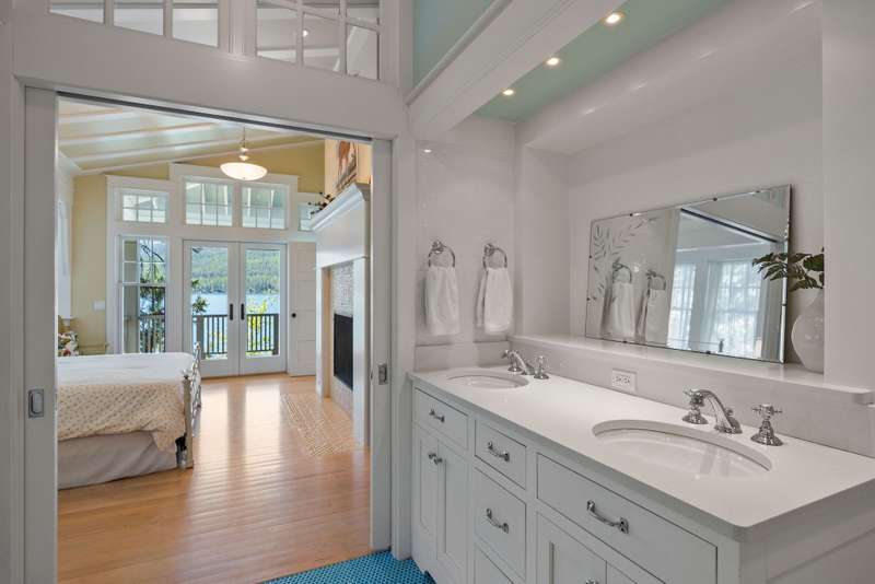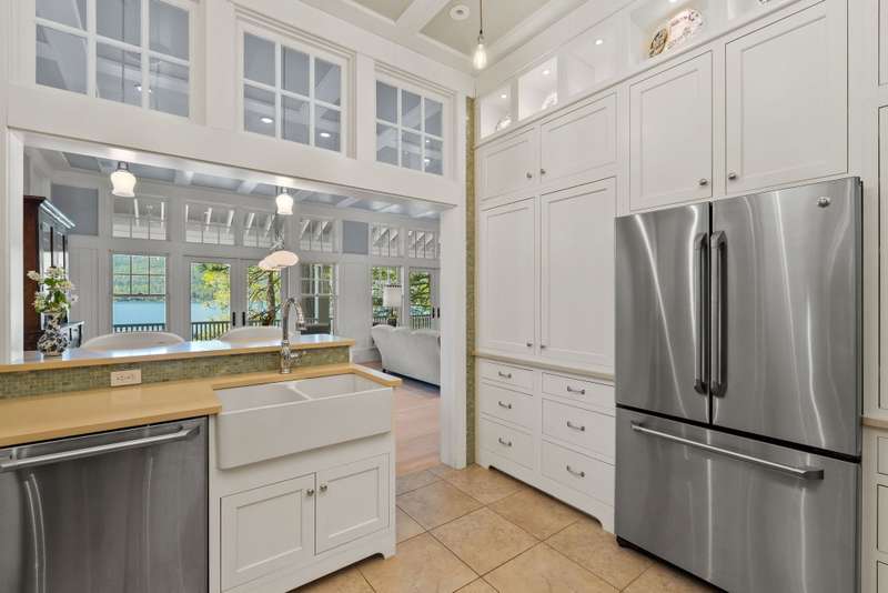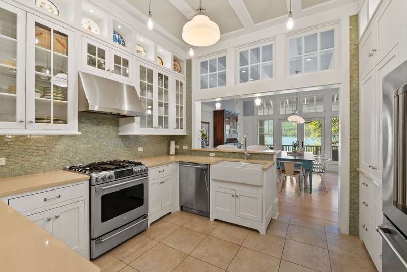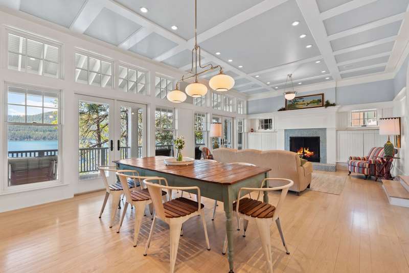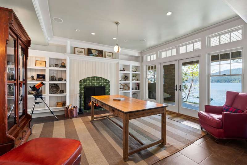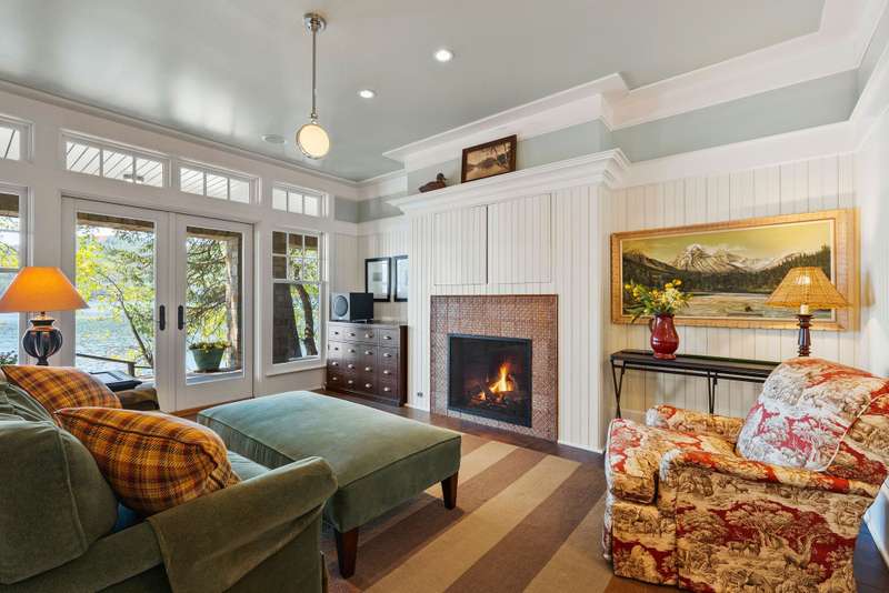 This luxurious lakefront cottage is truly captivating, featuring 4 bedrooms and 5 bathrooms that showcase architectural brilliance from the award-winning architect, Chuck Dietsche, who draws inspiration from Cape Cod, and all the woodwork was milled in North Carolina. With 7 fireplaces throughout, the home offers a warm and inviting atmosphere year-round. Delightful finishes in every corner reflect timeless charm, while the covered porch provides breathtaking views and a screened-in dining area complete with a fireplace. An additional bonus room below the guest wing is perfect for a gym, theater, or hobby room. Discover extra storage through a secret passageway. Enjoy life at the lake with 99 feet of prime Whitefish Lake waterfront, a private dock, and a cozy firepit. Sold turn-key!