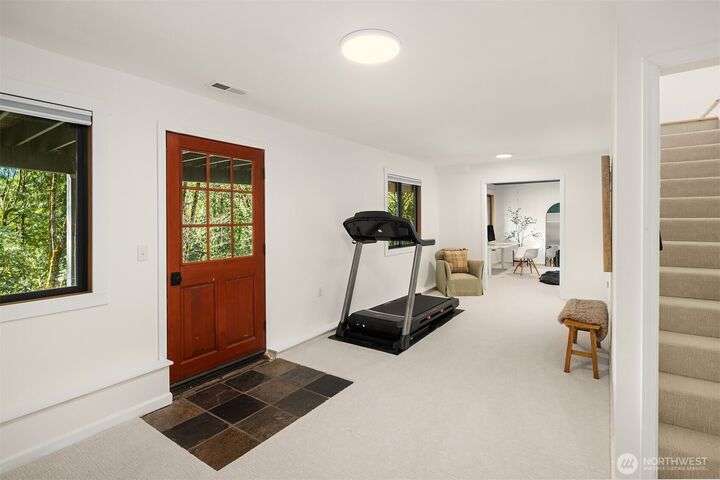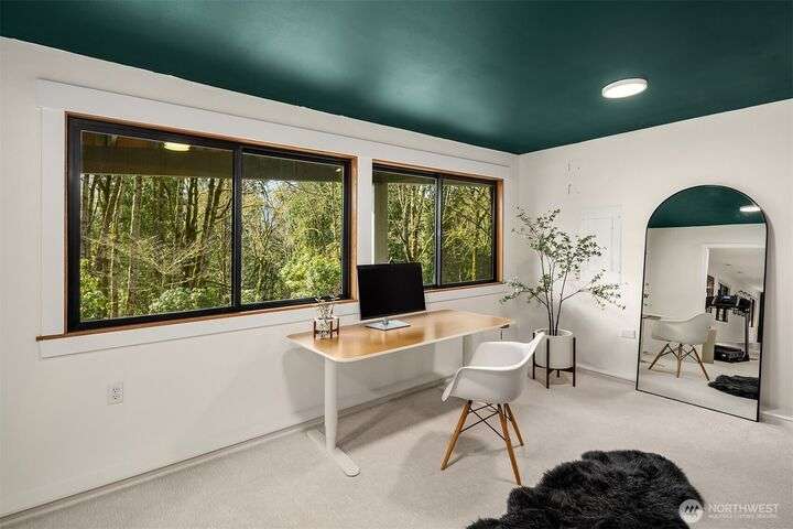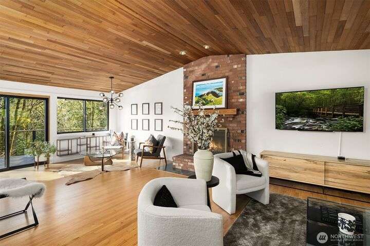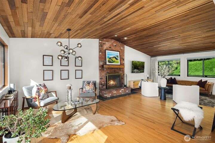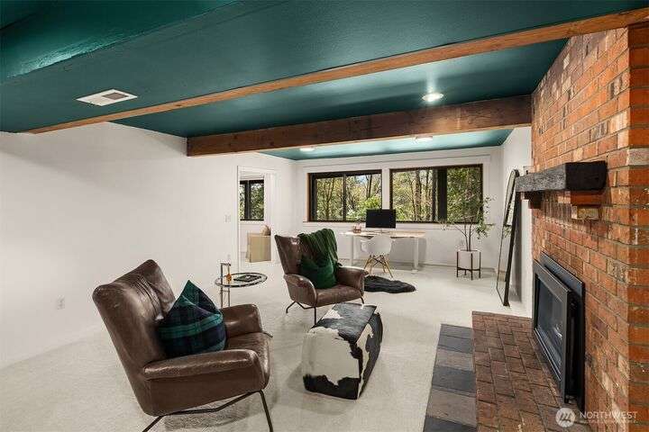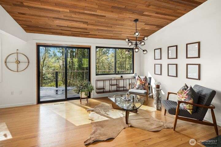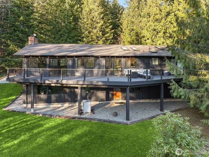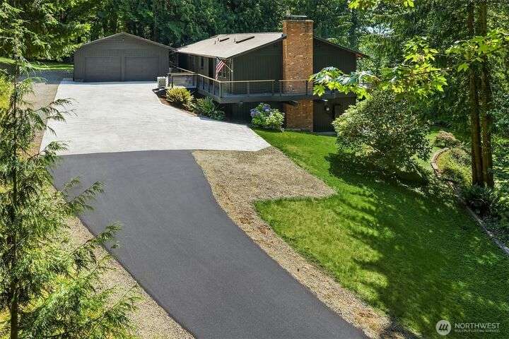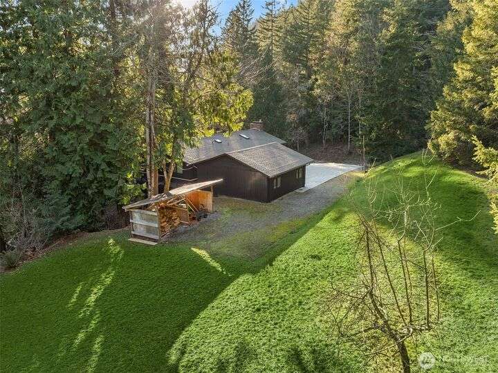 Follow the NEWLY PAVED ROAD to your serene sanctuary nestled on 2.73 acres of natural beauty. This 3,120 sqft home offers 4 beds and 2.5 baths, with an open-concept main level highlighted by cedar-wrapped vaulted ceilings and generous natural light. The kitchen provides peaceful views of the surrounding trees—an ideal setting for both cooking and unwinding. The private primary suite includes direct access to the wrap-around deck, perfect for savoring your morning coffee or watching the sun set. The lower level features a spacious bonus room, a second kitchen, and a cozy home office complete with a fireplace—perfect for work or play. Outside, relax under the stars by the firepit. A perfect blend of comfort, convenience, and nature awaits!