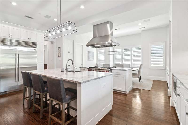 Experience modern living in this contemporary residence, tucked inside one of North Dallass few private gated communities. Perfectly situated off Forest Lane between Hillcrest and Preston Road, 11825 Green Knoll Dr. offers sleek architectural lines, a timeless neutral palette, and a thoughtful floor plan that blends beauty with functionality. The inviting, low-maintenance outdoor space is designed for year-round enjoyment with a covered patio, fireplace, motorized retractable screens, and seamless indoor-outdoor flow. Inside, the gourmet chefs kitchen impresses with dual islands, a Wolf 6-burner gas cooktop, Sub-Zero built-in refrigerator, designer marble countertops, and abundant custom cabinetry. A spacious butlers pantry expands the possibilities with additional storage, serving space and room for a custom coffee bar. The open-concept living area features a wet bar, wine cooler, beverage fridge and a 2025 nugget ice machineperfect for entertaining. A flexible formal dining room or office, currently used as a music room, is enhanced with custom sliding privacy doors. The luxurious primary suite overlooks the backyard oasis and includes a spa-inspired bath with a soaking tub, expansive shower, and dual vanities. A second ensuite bedroom downstairs provides comfort for guests, while two additional upstairs bedrooms with ensuites flank a large game room for versatile living. Notable upgrades include: whole-home generator, plantation shutters and professionally designed $100,000 AV system with Sonos multi-zone audio, ceiling speakers, dual TV feeds, security cameras, backup time-controlled interior lights, and high-performance internet firewall. All just minutes from NorthPark Center, The Galleria, and Dallass top private schools, this residence delivers the perfect blend of lifestyle, location, and community.