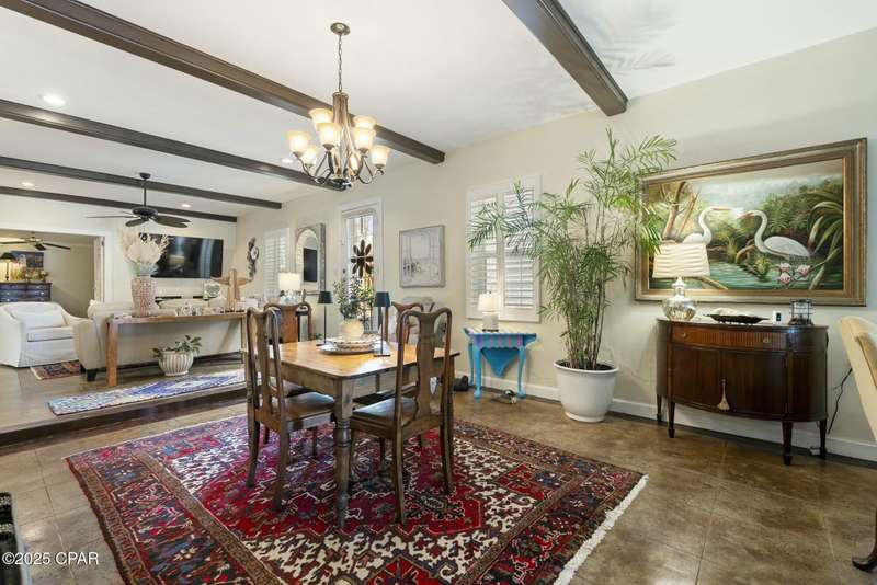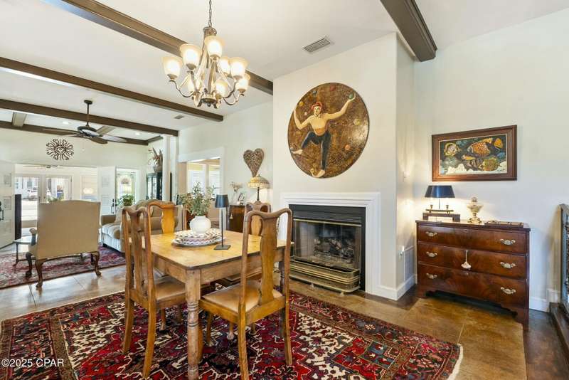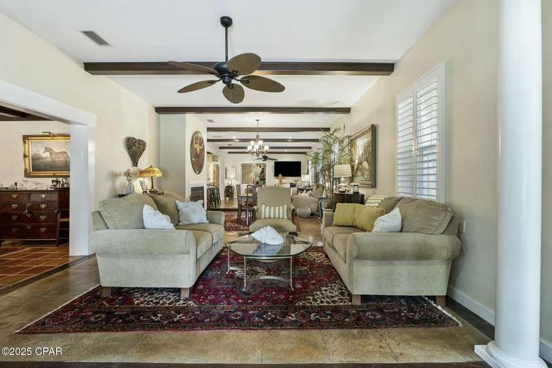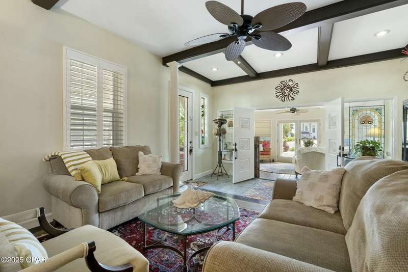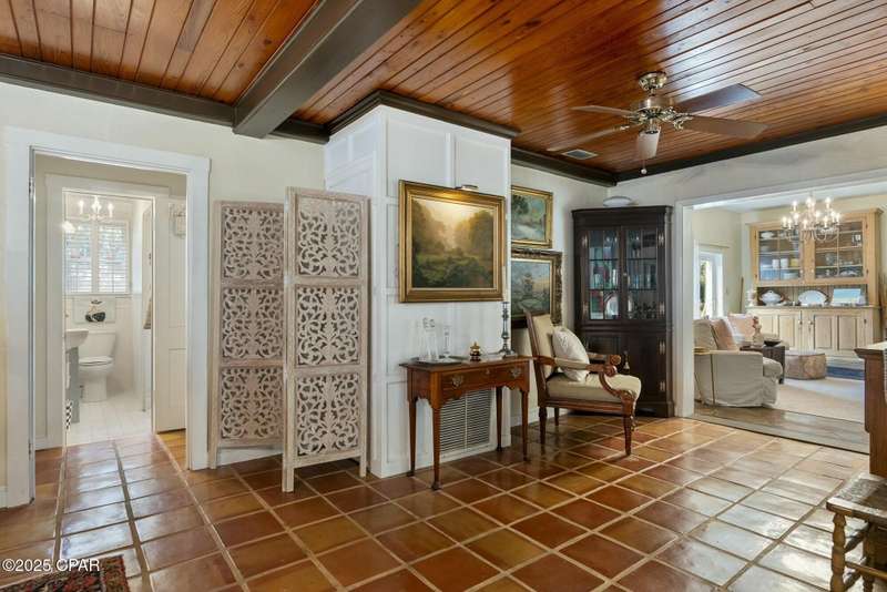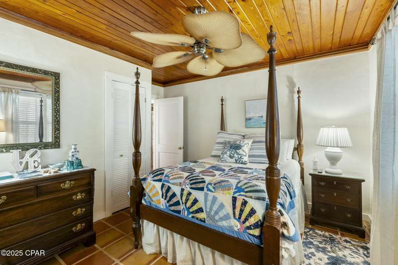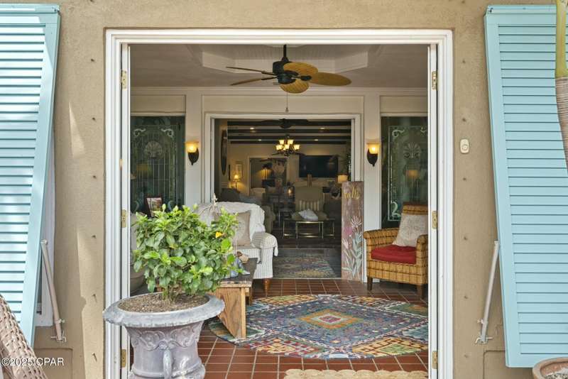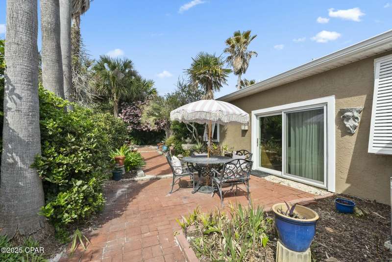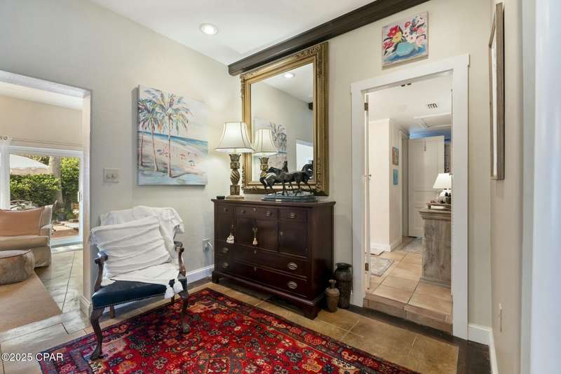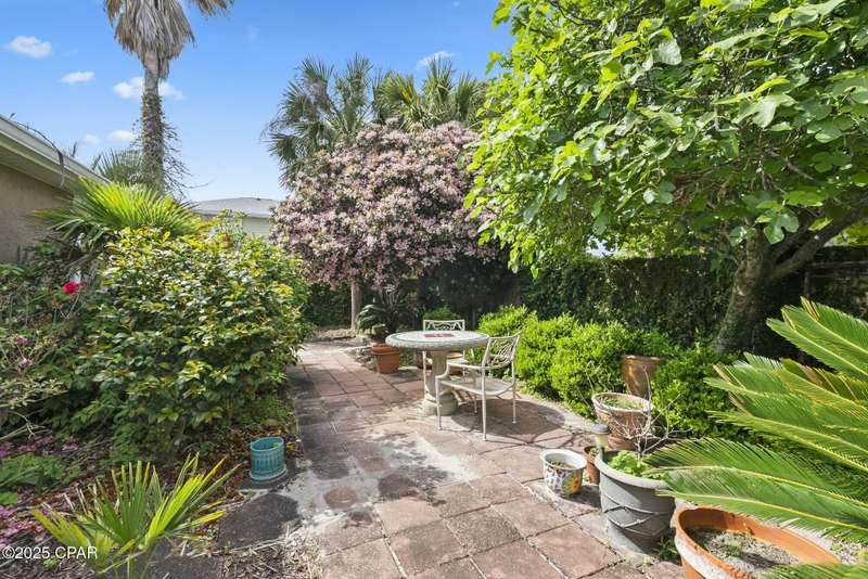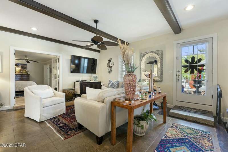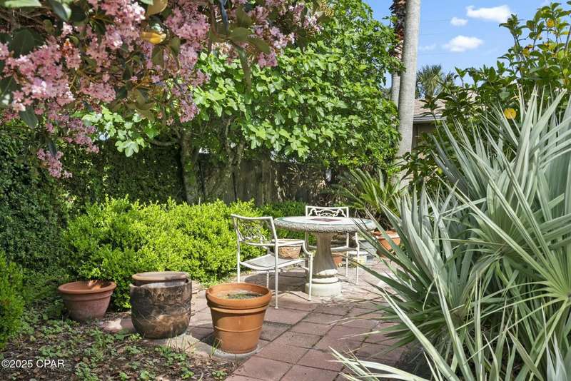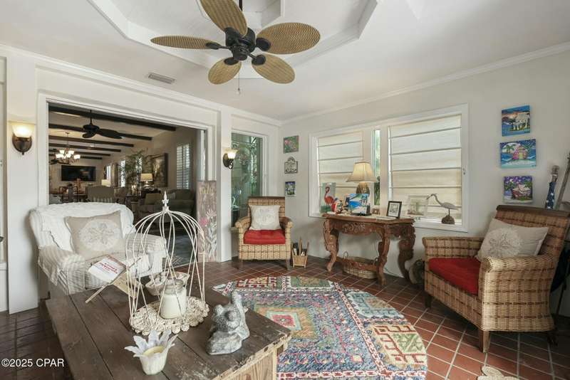 AVAILABLE to show 8/25 - 9/3. Step back in time to timeless coastal elegance at this true mid-century treasure. Built in 1952, this solid concrete block home is a beautifully preserved gem that blends vintage charm, historic character, and relaxed coastal living--just steps from the Gulf of Mexico. Rich in craftsmanship and soul, this six-bedroom, four-bathroom property is located in the highly sought-after Laguna Beach community and offers a rare opportunity to own a piece of Old Florida magic, directly across from Public Beach Access 80.This expansive, private coastal estate has been thoughtfully expanded to over 4,297 square feet and is quietly tucked behind lush garden walls, offering privacy and tranquility. Once inside the gates, you'll discover a world of its own, where tropical landscaping, cascading wisteria, and tranquil fountains surround an enchanting outdoor retreat. At the heart of it all lies a sparkling saltwater pool, a shaded gazebo, and a Gulf-view deck--perfect for everything from quiet mornings to sunset gatherings.The main residence features four bedrooms and three bathrooms, showcasing timeless mid-century architecture highlighted by original woodwork, tongue-and-groove ceilings, and elegant stamped concrete floors. Bright and airy interiors are filled with natural light and authentic character throughout. A formal sitting room, anchored by a grand piano, provides the perfect space for hosting elegant soirees or intimate evenings. Two front bedrooms share a charming retro-tiled hall bathroom, evoking a sense of nostalgia and classic design. Additionally, two spacious master suites, each with its own private ensuite bath, offer comfort and privacy for family or guests.Separated from the main home by a private entrance, the charming guest house offers two bedrooms and one full bathroom. This inviting space includes an open-concept kitchen and living area, in-unit laundry, and large sliding glass doors that open directly to the pool and gardens. With its own entrance and lockout capability, the guest house is ideal for visiting family, in-laws, vacation rentals, or use as a secluded home office.Every corner of this property is designed to inspire a deep connection to its surroundings--from sun-drenched mornings by the pool to candlelit dinners under the stars in the garden courtyard. Offered nearly fully furnished, the home is turn-key and filled with carefully curated touches that reflect timeless style and soulful elegance.Whether you're seeking a peaceful sanctuary, a multi-generational retreat, or an exceptional income-producing investment, this rare Laguna Beach estate offers unmatched flexibility, space, and charm--just steps from the sugar-white sands of the Gulf. This is more than just a home. It's a hidden world waiting to be discovered.