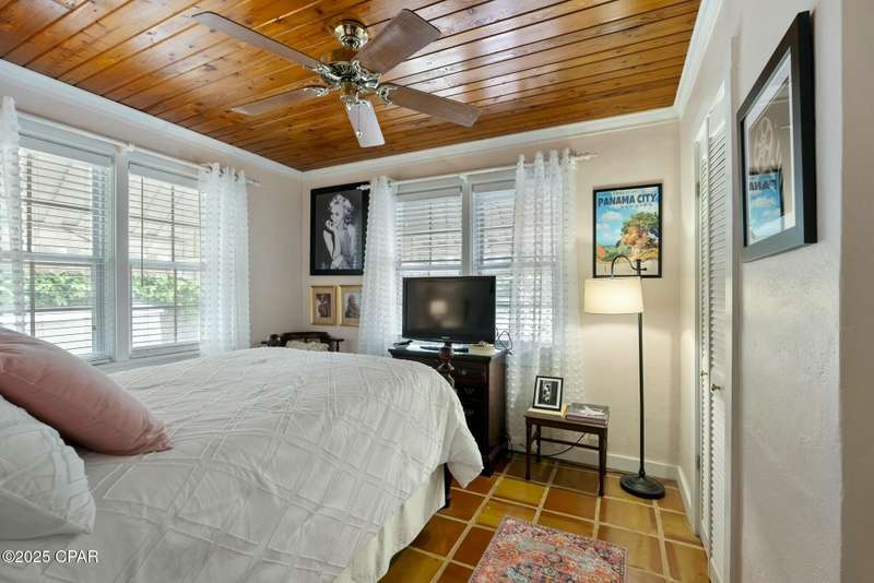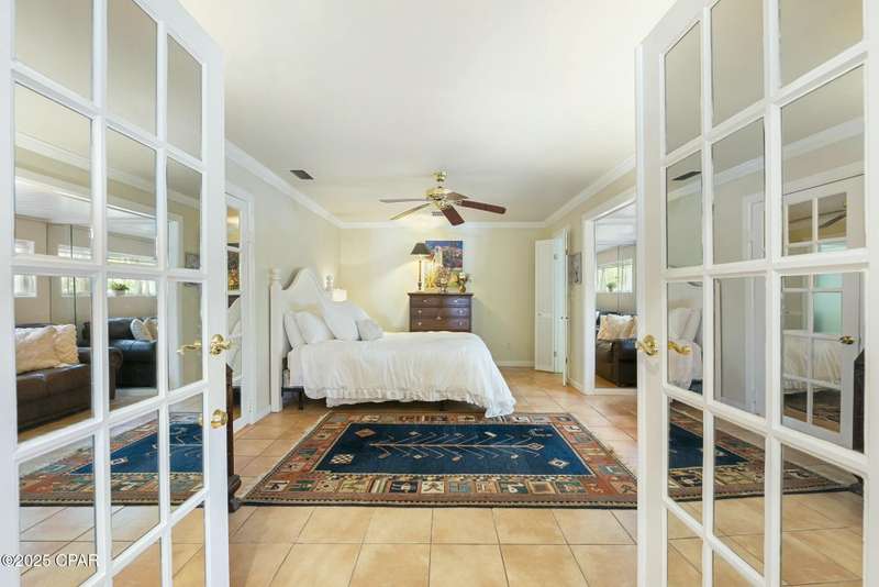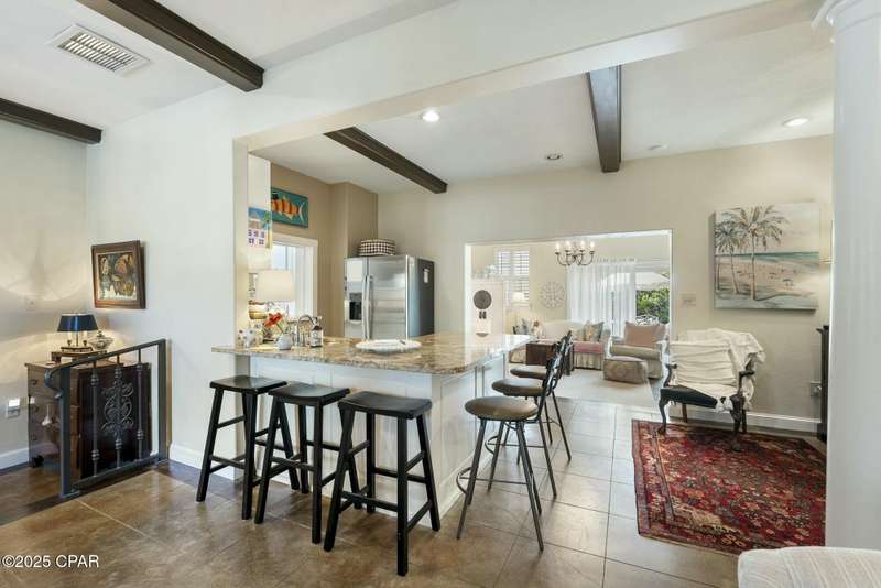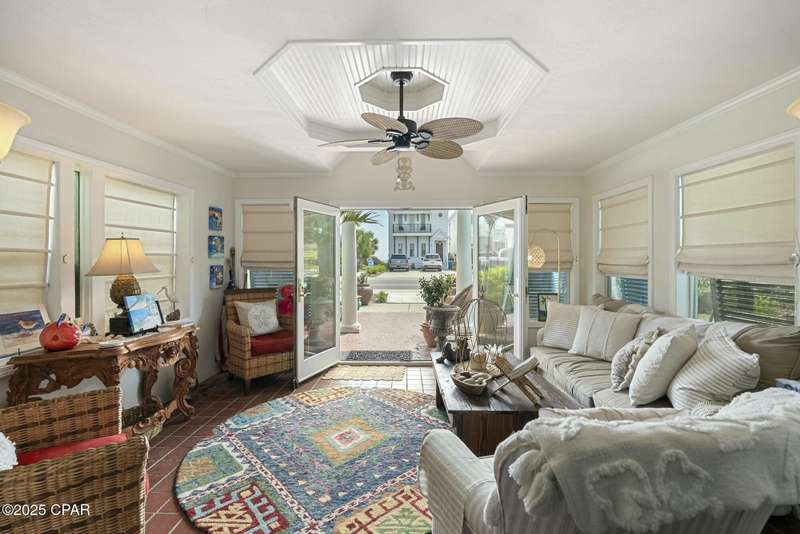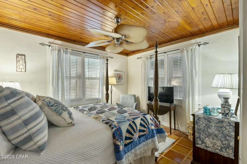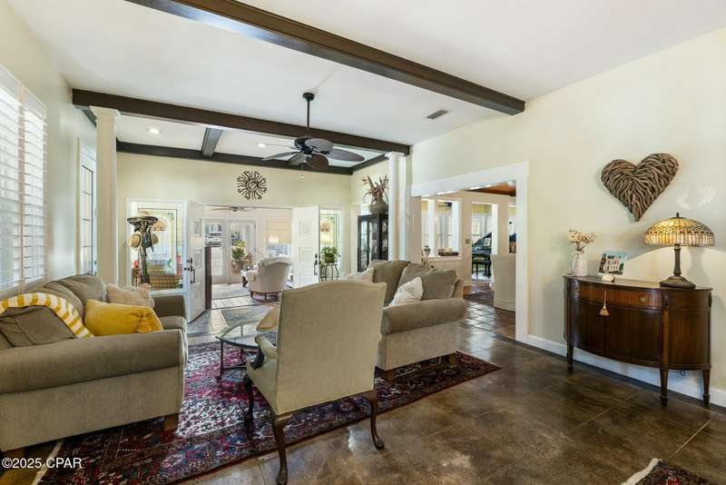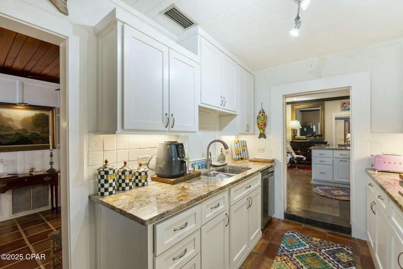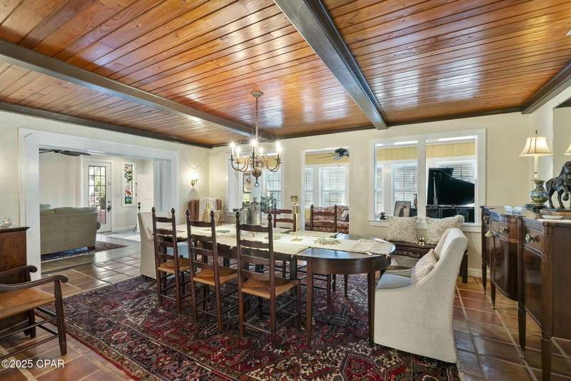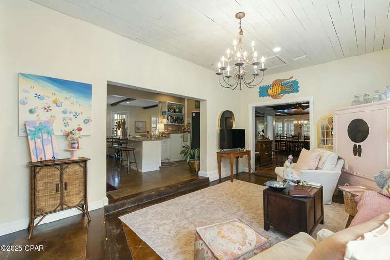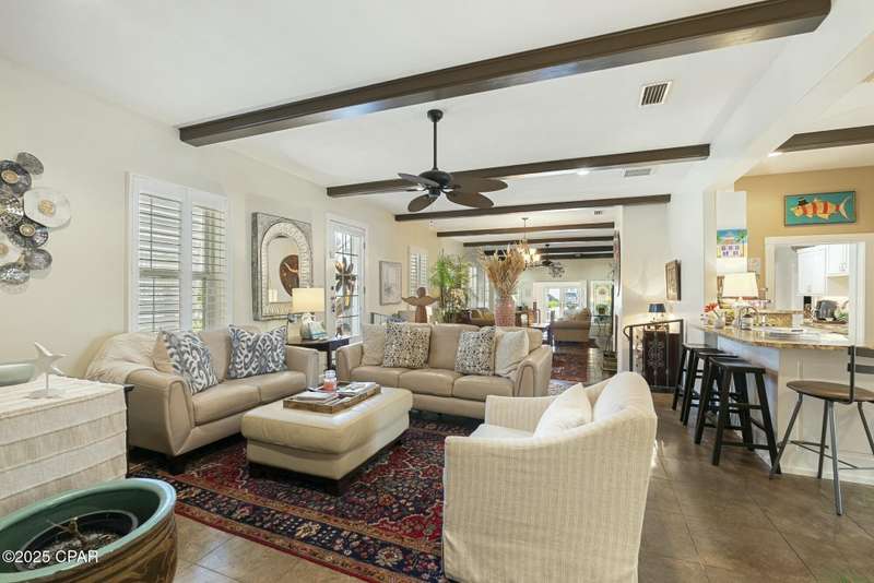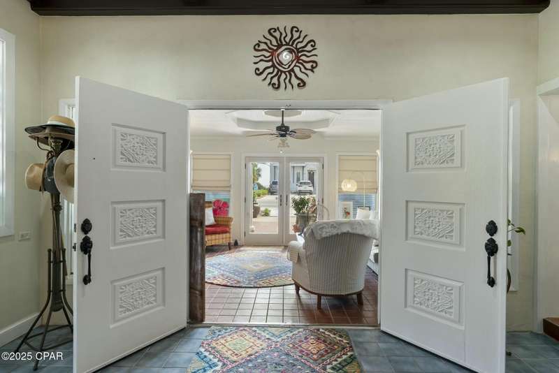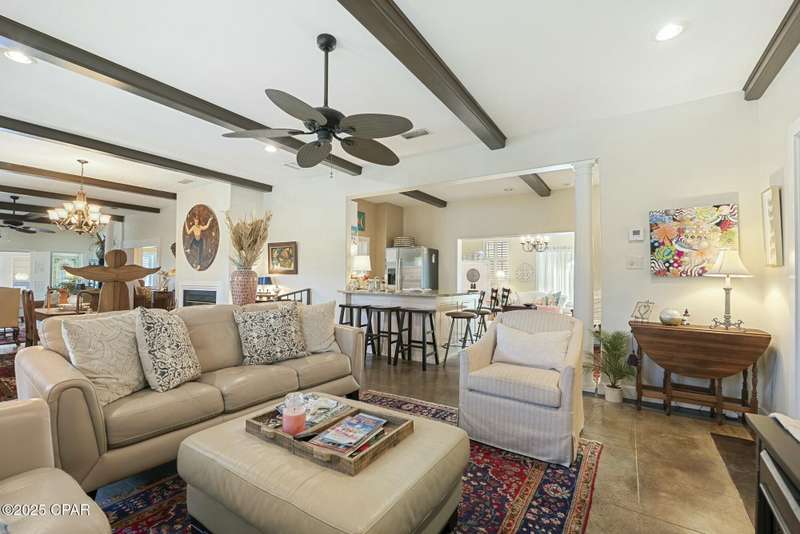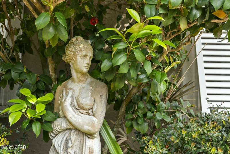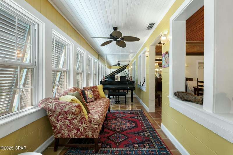 AVAILABLE to show 8/25 - 9/3. Step back in time to timeless coastal elegance at this true mid-century treasure. Built in 1952, this solid concrete block home is a beautifully preserved gem that blends vintage charm, historic character, and relaxed coastal living--just steps from the Gulf of Mexico. Rich in craftsmanship and soul, this six-bedroom, four-bathroom property is located in the highly sought-after Laguna Beach community and offers a rare opportunity to own a piece of Old Florida magic, directly across from Public Beach Access 80.This expansive, private coastal estate has been thoughtfully expanded to over 4,297 square feet and is quietly tucked behind lush garden walls, offering privacy and tranquility. Once inside the gates, you'll discover a world of its own, where tropical landscaping, cascading wisteria, and tranquil fountains surround an enchanting outdoor retreat. At the heart of it all lies a sparkling saltwater pool, a shaded gazebo, and a Gulf-view deck--perfect for everything from quiet mornings to sunset gatherings.The main residence features four bedrooms and three bathrooms, showcasing timeless mid-century architecture highlighted by original woodwork, tongue-and-groove ceilings, and elegant stamped concrete floors. Bright and airy interiors are filled with natural light and authentic character throughout. A formal sitting room, anchored by a grand piano, provides the perfect space for hosting elegant soirees or intimate evenings. Two front bedrooms share a charming retro-tiled hall bathroom, evoking a sense of nostalgia and classic design. Additionally, two spacious master suites, each with its own private ensuite bath, offer comfort and privacy for family or guests.Separated from the main home by a private entrance, the charming guest house offers two bedrooms and one full bathroom. This inviting space includes an open-concept kitchen and living area, in-unit laundry, and large sliding glass doors that open directly to the pool and gardens. With its own entrance and lockout capability, the guest house is ideal for visiting family, in-laws, vacation rentals, or use as a secluded home office.Every corner of this property is designed to inspire a deep connection to its surroundings--from sun-drenched mornings by the pool to candlelit dinners under the stars in the garden courtyard. Offered nearly fully furnished, the home is turn-key and filled with carefully curated touches that reflect timeless style and soulful elegance.Whether you're seeking a peaceful sanctuary, a multi-generational retreat, or an exceptional income-producing investment, this rare Laguna Beach estate offers unmatched flexibility, space, and charm--just steps from the sugar-white sands of the Gulf. This is more than just a home. It's a hidden world waiting to be discovered.