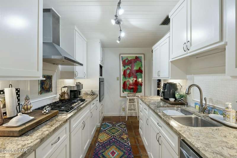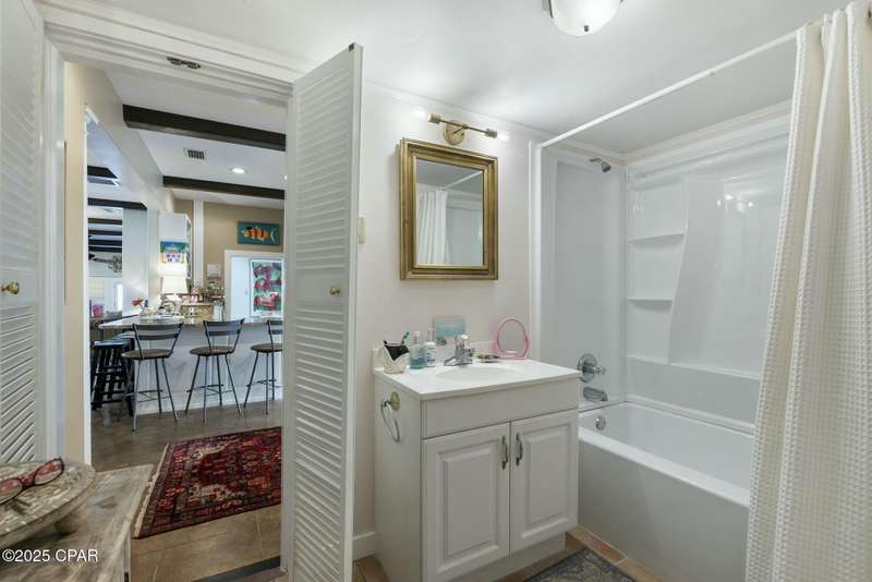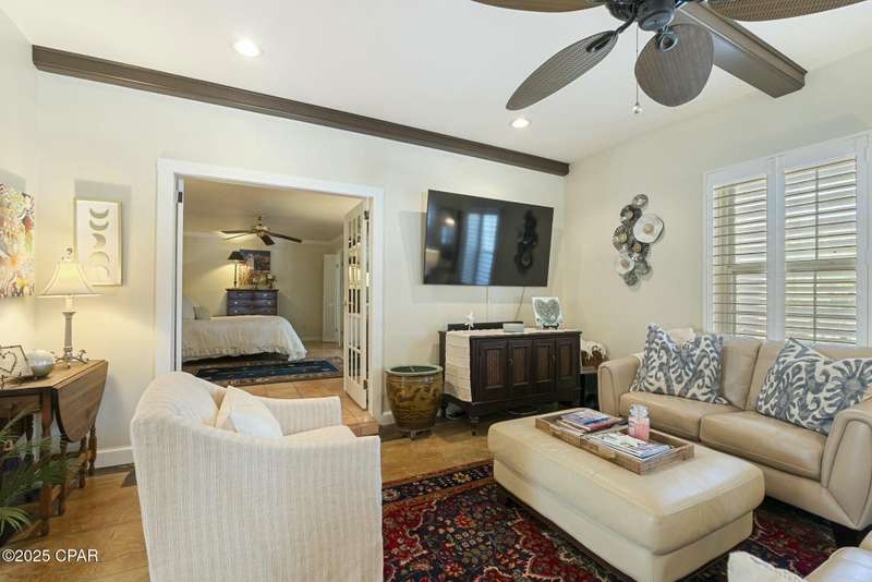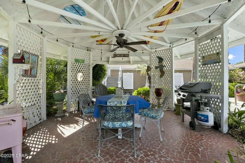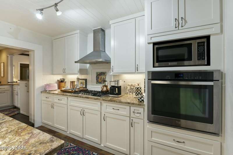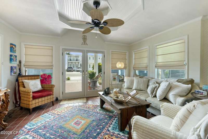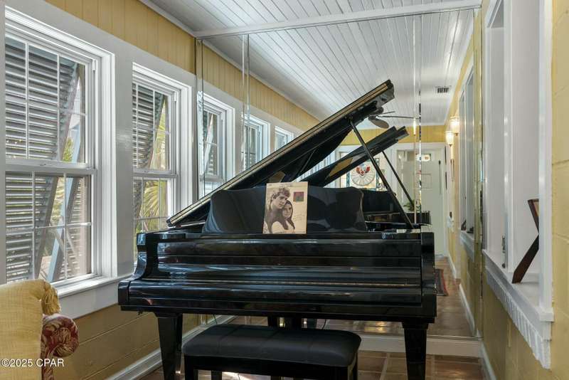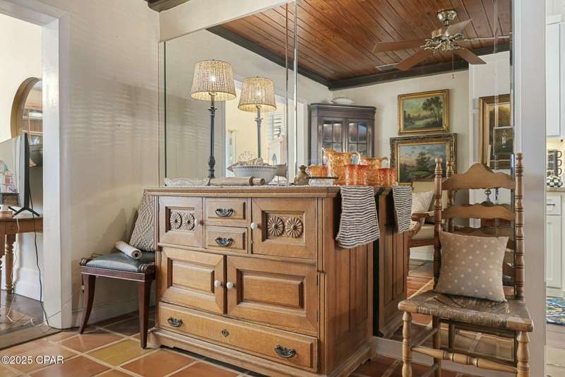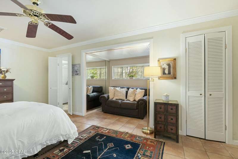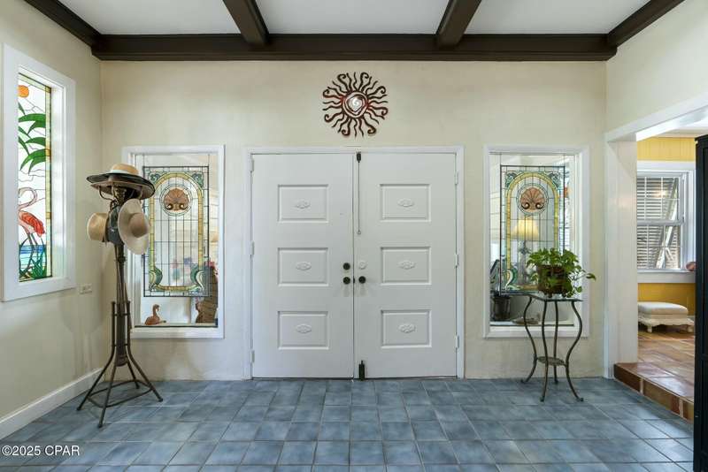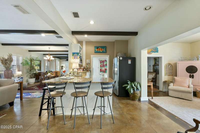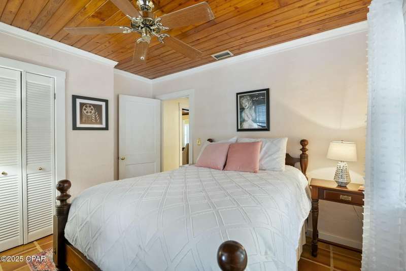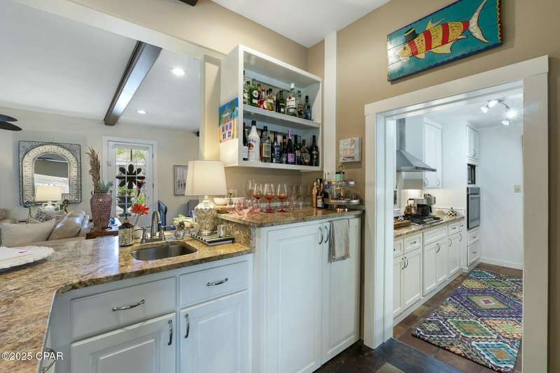 AVAILABLE to show 8/25 - 9/3. Step back in time to timeless coastal elegance at this true mid-century treasure. Built in 1952, this solid concrete block home is a beautifully preserved gem that blends vintage charm, historic character, and relaxed coastal living--just steps from the Gulf of Mexico. Rich in craftsmanship and soul, this six-bedroom, four-bathroom property is located in the highly sought-after Laguna Beach community and offers a rare opportunity to own a piece of Old Florida magic, directly across from Public Beach Access 80.This expansive, private coastal estate has been thoughtfully expanded to over 4,297 square feet and is quietly tucked behind lush garden walls, offering privacy and tranquility. Once inside the gates, you'll discover a world of its own, where tropical landscaping, cascading wisteria, and tranquil fountains surround an enchanting outdoor retreat. At the heart of it all lies a sparkling saltwater pool, a shaded gazebo, and a Gulf-view deck--perfect for everything from quiet mornings to sunset gatherings.The main residence features four bedrooms and three bathrooms, showcasing timeless mid-century architecture highlighted by original woodwork, tongue-and-groove ceilings, and elegant stamped concrete floors. Bright and airy interiors are filled with natural light and authentic character throughout. A formal sitting room, anchored by a grand piano, provides the perfect space for hosting elegant soirees or intimate evenings. Two front bedrooms share a charming retro-tiled hall bathroom, evoking a sense of nostalgia and classic design. Additionally, two spacious master suites, each with its own private ensuite bath, offer comfort and privacy for family or guests.Separated from the main home by a private entrance, the charming guest house offers two bedrooms and one full bathroom. This inviting space includes an open-concept kitchen and living area, in-unit laundry, and large sliding glass doors that open directly to the pool and gardens. With its own entrance and lockout capability, the guest house is ideal for visiting family, in-laws, vacation rentals, or use as a secluded home office.Every corner of this property is designed to inspire a deep connection to its surroundings--from sun-drenched mornings by the pool to candlelit dinners under the stars in the garden courtyard. Offered nearly fully furnished, the home is turn-key and filled with carefully curated touches that reflect timeless style and soulful elegance.Whether you're seeking a peaceful sanctuary, a multi-generational retreat, or an exceptional income-producing investment, this rare Laguna Beach estate offers unmatched flexibility, space, and charm--just steps from the sugar-white sands of the Gulf. This is more than just a home. It's a hidden world waiting to be discovered.