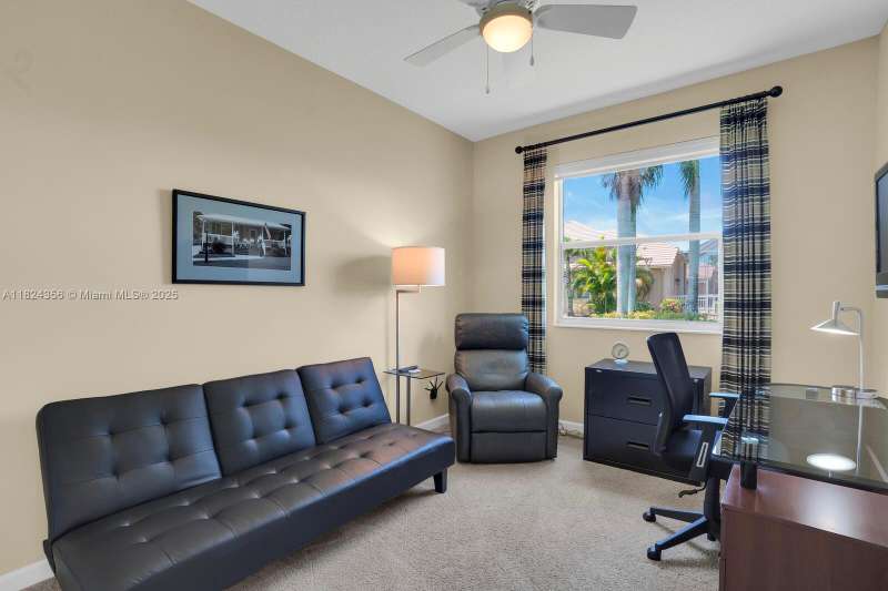 Welcome to your dream home in the prestigious Estates of The Florida Club in Stuart, FL, a gated golf course community where elegance meets tranquility. This meticulously maintained 4-bedroom, 3-bathroom, 3-car garage estate, with a new roof, offers the ultimate blend of privacy, functionality, and Florida charm. Step inside a bright, open concept living space framed by soaring ceilings and expansive windows that capture shimmering lake views. The spacious office is ideal for working remotely. With a split bedroom layout, guests and family will appreciate comfort and privacy. The heart of the home is its airy great room that flows into a well-appointed kitchen. Outdoor living is a breeze on the patio. A large yard offers plenty of space for a pool, or enjoy the resort-like community pool,