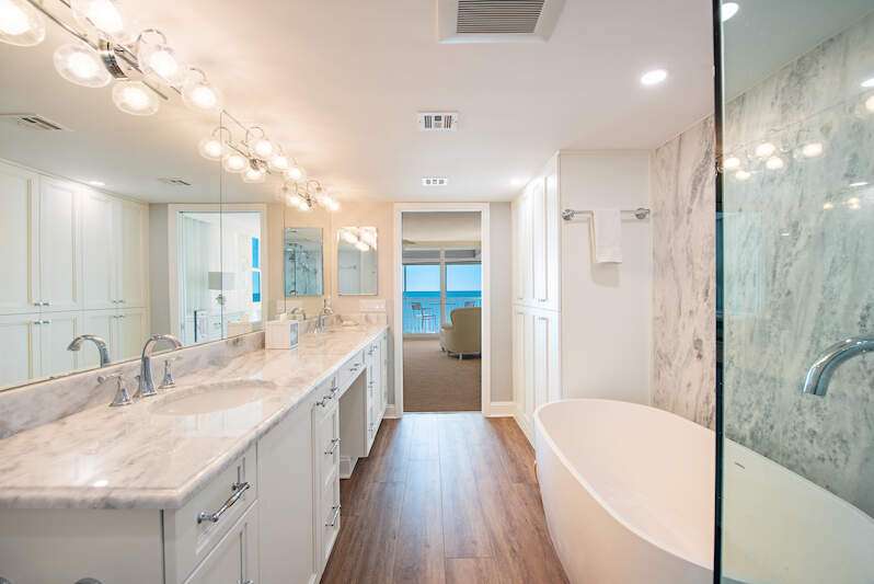 Stunning Gulf-Front Condo with Breathtaking Views and Luxury Features - Exquisite Condo offering spectacular views of both sunrises and sunsets from the expansive east and west balconies and floor-to-ceiling windows in the living room and master bedroom. Located directly on the Gulf of Mexico, this spacious 3-bedroom, 3-bath condo provides an idyllic setting with the soothing sound of the waves and regular dolphin sightings. Inside, this beautifully updated home features a brand-new kitchen with high-end finishes and top-of-the-line appliances. All three bathrooms boast luxurious quartzite and marble counters, as well as non-slip floors for safety and comfort. The condo's layout ensures privacy and tranquility, with only three units per floor and just 12 floors in the entire building. Additionally, it comes with one of the highly desirable, secure garage parking spots located right in the building-one of only 8 spaces available. Residents enjoy access to fantastic amenities, including a tennis court, 2 pickleball courts and a heated pool overlooking the beach. This secure, pet-free building offers unmatched beach access, sweeping views, and the convenience of modern luxury living.