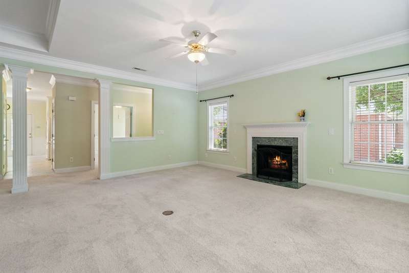 **$35K PRICE REDUCTION** Charming and spacious, this full-brick end-unit townhome is all on one level. Ideally located just minutes from shopping, dining, and interstate access, this home features 3 bedrooms and 2 full baths, with the third bedroom offering flexibility as a home office. The large living room welcomes you with a cozy fireplace and flows into a dedicated dining area, while the kitchen boasts a pantry and breakfast nook. A generous laundry room with a sink adds extra functionality. Step outside to your private brick-fenced courtyard, perfect for relaxing or entertaining, with a breezeway connecting to the rear-entry 2-car garage. Handicap accessible and situated in a community that offers a pavilion with picnic tables?this one checks all the boxes!