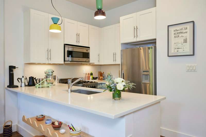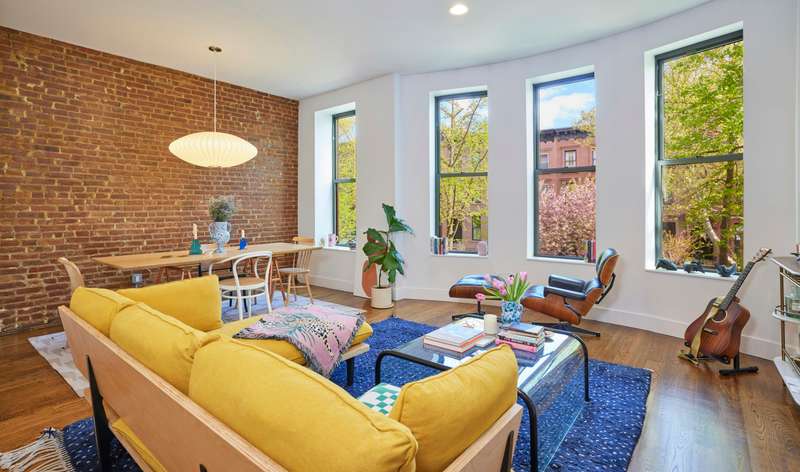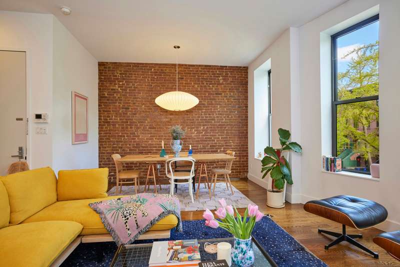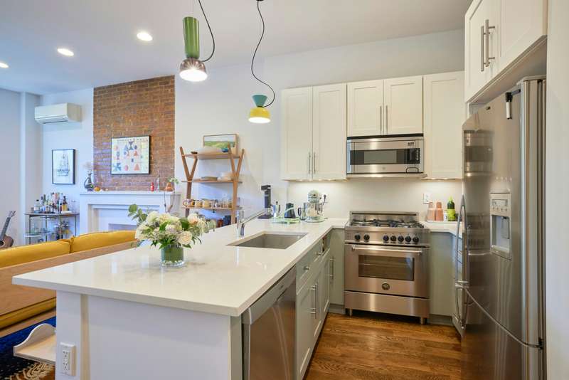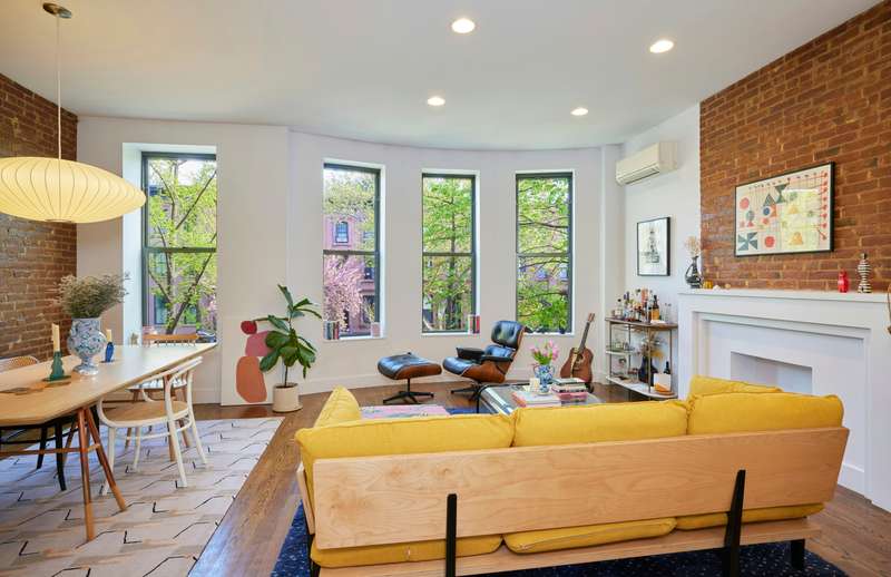 3 Bedroom 2 Bath condominium on tree-lined Union Street in picturesque Carroll Gardens. Apt. 2, located on the second floor, has high ceilings, abundant prewar charm and details, and loads of natural light. Sunlight pours through large bay windows into  the living room, dining area and open kitchen. The living room has a decorative fireplace with accent brick, and the dining room also has an exposed brick wall. The open chef's kitchen is timeless with state of the art appliances including a Bertazzoni stove  and oven, and Fischer Paykel and Bosch appliances.