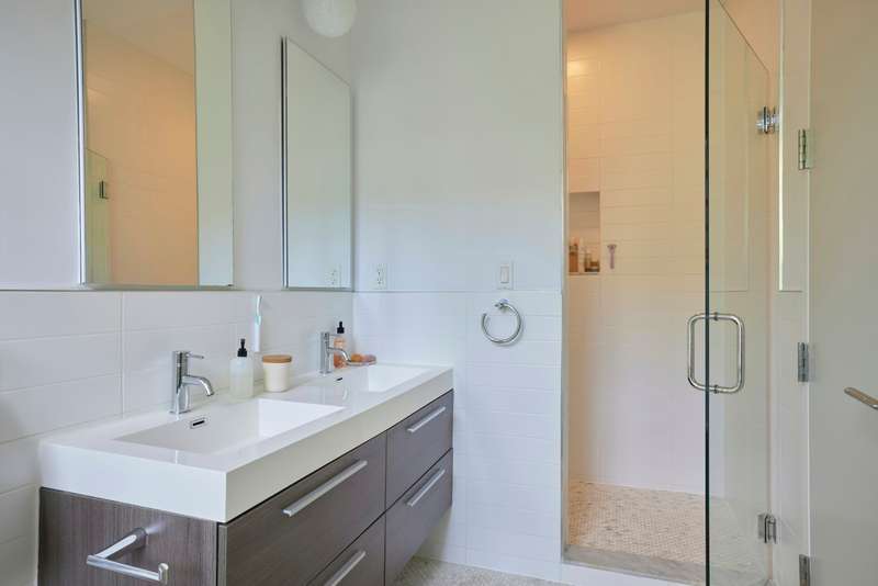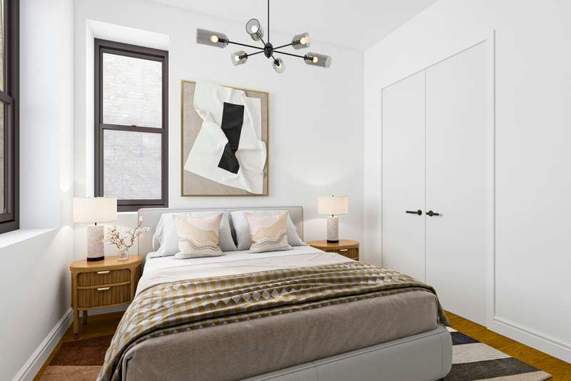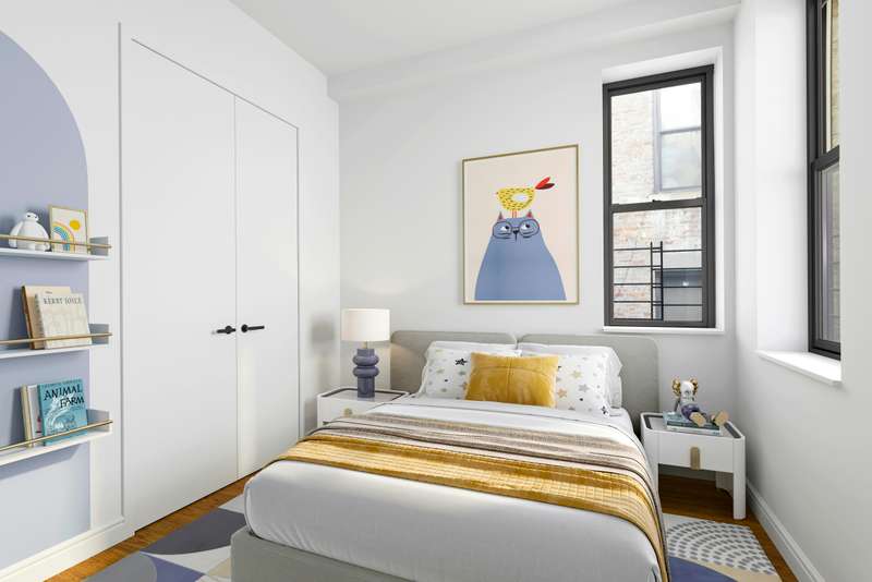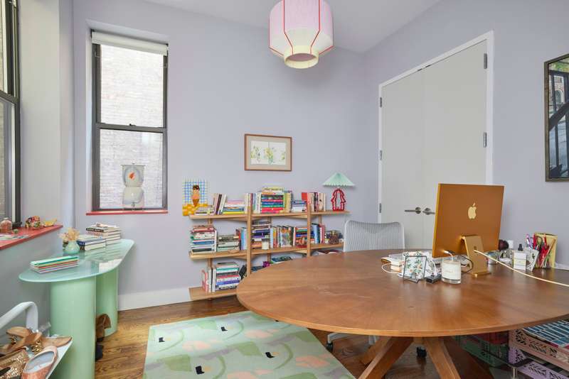 Off a private bedroom hall are three generous bedrooms. The large primary has a huge walk-in closet and faces the manicured yards of the surrounding buildings. The ensuite windowed primary bath has a large walk-in glass enclosed shower and double sink. The  second and third bedrooms share a large full bath in the hall. There is a bonus office space also located off the bedroom hall that features custom bookshelves and seating. Also on the bedroom hall is the laundry with washer/dryer. Each room in this magnificent  apartment has its own individual heating/cooling controls (split system). There is plenty of storage and closets throughout, plus design touches like Farrow & Ball paint, Cole & Son wallpaper, and lighting by Herman Miller, RBW, and Hay. There are beautiful hardwood floors throughout the apartment.