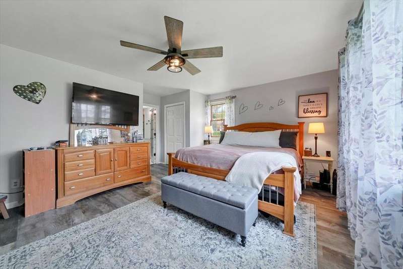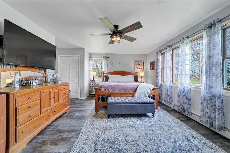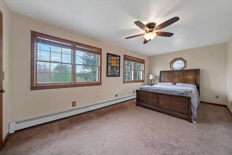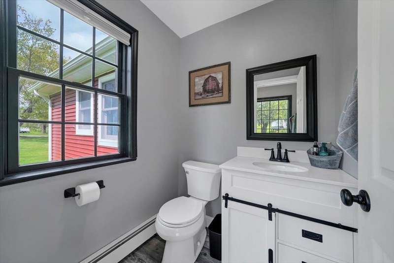 Whole house for rent on a beautiful property with a pool! Your home is your sanctuary at this beautifully renovated 2100+ sqft home located on a gorgeous 3 acre property with a pool, detached garage and a pond. The recently fully renovated main floor with hardwood floors throughout feature a renovated open kitchen, living room, dining room, office, a powder room half bathroom, and a master bedroom suite. Fully renovated kitchen with hardwood floors featuring granite countertops and tile backsplash, granite island with bar-stool seating and cabinetry and drawers, modern lighting fixtures and recessed lights, custom cabinets, hardwood floors, eat-in kitchen with vaulted ceiling and large windows to back yard, modern stainless steel appliances including a beverage cooler. The second floor of the residence includes the additional bedrooms and updated full bathroom. The full unfinished basement includes plenty of storage and houses the utilities, heating and water systems. Enjoy the gorgeous property's beauty in every season. Swim in the pool on hot summer days. Go fishing and sit by the pond. Host gatherings for any and every occasion you may have. Enjoy the beauty of the property and it's surroundings. The large driveway with detached garage offers plenty for parking and storage of your vehicles and toys and room for plenty of guest parking. The solar panels located on the rear roof are owned outright! No monthly payments and you enjoy minimal electricity bills most of the year. A true benefit! This property offers so much. See it in person to truly appreciate.