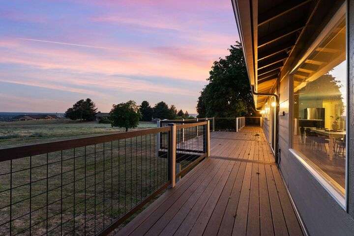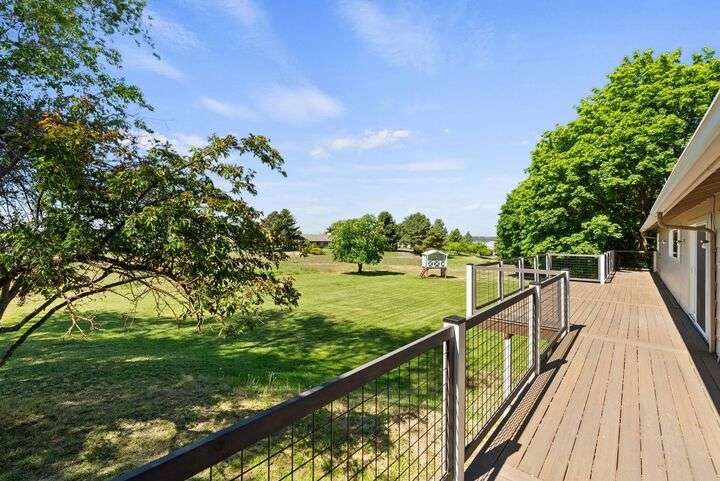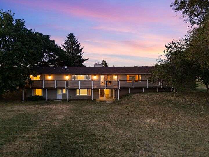 This charming daylight rancher sits on a full acre in a peaceful, private setting with sweeping city views. Designed for comfortable living and entertaining, the home features an expansive living area filled with natural light—perfect for gatherings or quiet evenings at home. Venture out onto the brand-new deck to enjoy stunning sunsets and tranquil surroundings. Inside, you'll find four cozy bedrooms and a generously sized lower level offering endless potential—create a home theater, workout space, office, or guest retreat. A rare opportunity to enjoy space, views, and serenity just minutes from town!