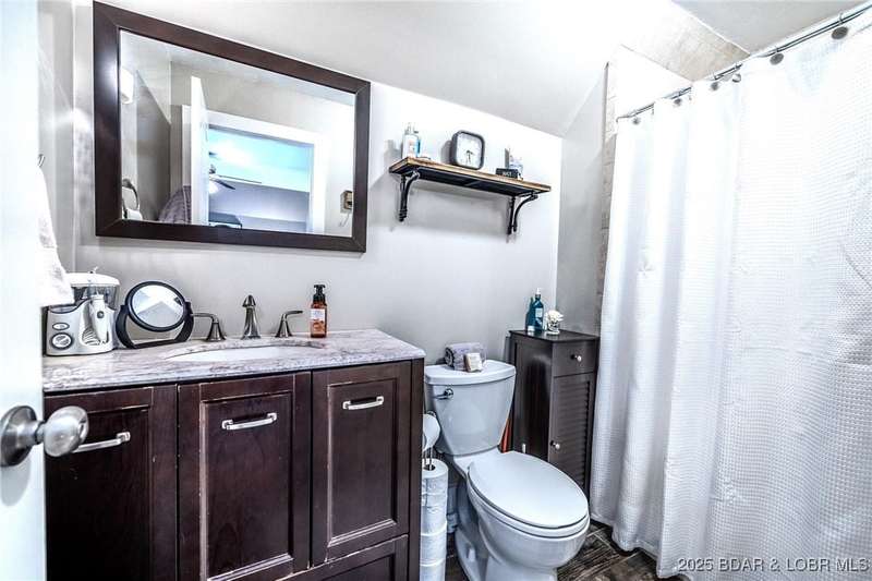 This meticulously maintained custom lakefront property is situated on almost 6 acres at the 35MM. Just off HWY 5 near the Hurricane Deck bridge, you will have quick access to restaurants, gas and shopping, but can still soak up some private R&R. Enjoy rare level parking, with a combined total of 2,300 sq ft of indoor space for cars and toys, plus ample outdoor room for boats and trailers. The main home features hardwood floors, two opposing ensuite bedrooms, and sits above an oversized and completely finished, 1100 sq ft 3-car garage with a half bath and storage. The 1,200 sq ft detached shop includes a fully finished 1-bed, 1-bath apartment with a loft, full kitchen, and laundryideal for guests or rental income. A groomed path leads to your cove-protected lakefront, complete with a 2 well dock, PWC slip, and sundeck. Bonus lakefront spot that would be perfect to add a second home, cabana, or outdoor kitchen. Endless potential! Property is part of a larger parcel and is in process of being surveyed. When completed, home will sit on almost 6 Acres. Exact amount to be determined after survey is complete.