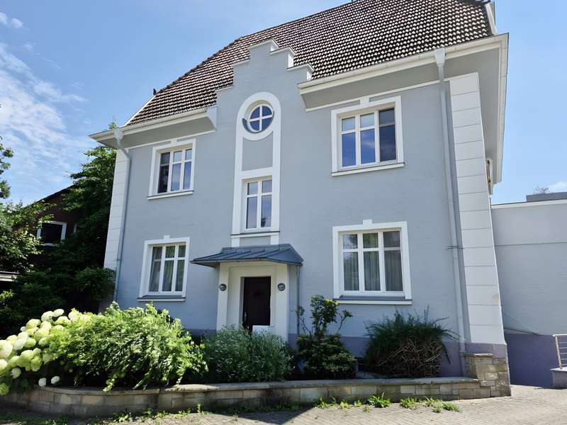 Living in the Glacis - this beautiful, light-flooded apartment makes your dream come true. The apartment impresses with its appealing architecture and well thought-out room layout. 2 balconies facing south and south-west replace the garden and provide a lot of additional living comfort! The well-kept three-party house from 1926 was completely renovated in 1999 and today offers the perfect setting for anyone looking for a cozy home in a quiet and green environment. The location in the sought-after Minden Glacis is a real highlight. Nestled in the green belt of the city, this apartment combines the advantages of a quiet, natural environment with proximity to urban amenities. With approx. 103.65 m² of living space, this apartment offers enough room for couples or small families who value comfort and a pleasant living atmosphere. Three well-designed rooms, including two bedrooms, leave room for individual design options. The spacious living/dining area is bright and friendly and invites you to spend relaxing hours with family and friends. The charmingly designed kitchen is only separated from the dining area by a sliding glass door. In front of the kitchen is the south-facing balcony, where you can enjoy your meals when the weather is nice. Two bathrooms, one with a bathtub and the other with a shower, ensure a high level of comfort and flexibility in everyday life. The private cellar room offers additional storage space. There is also a communal laundry room and a bicycle storage room. The latter is easily accessible from the courtyard. You can park your car in the well protected carport. In short: this property combines functional interior design, attractive furnishings and a first-class location - perfect for anyone looking for a harmonious home. We would be delighted to invite you to a personal viewing, where you can see the benefits of this property for yourself.