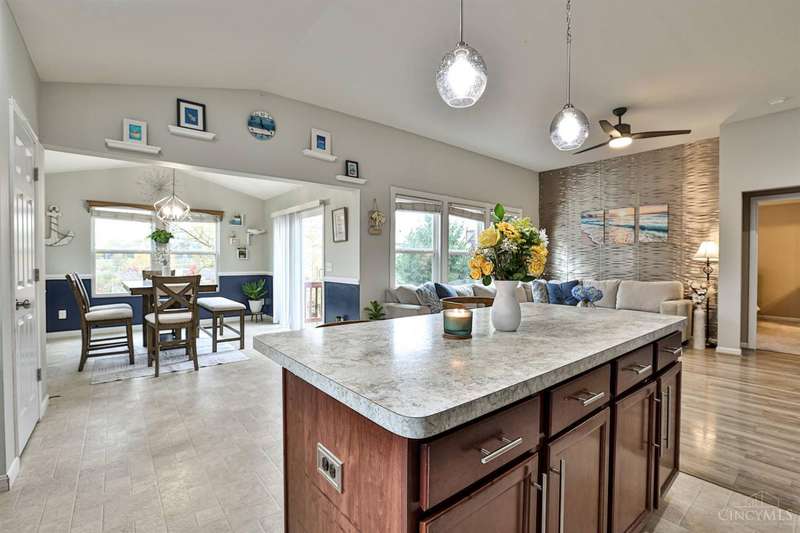 Stunning Drees resale in the highly sought after Virginia Place subdivision in Northside. This gorgeous 3 Brm ranch has numerous upgrades throughout and is Move In Ready with a 2 car garage! The spacious open floor plan lends itself to family enjoyment as well as entertaining. This home is light filled and airy with soaring ceilings. The kitchen is well appointed with SS appliances, Farmhouse sink and an island. The master suite features a soaker tub, separate shower, double vanity and WIC. The basement features a family rm, bath and rec area. The dining rm boasts a W/O to the patio and fenced yard. Located minutes from Northside's vibrant popular scene and across from Cinti Parks Greenspace Wildflower Area.