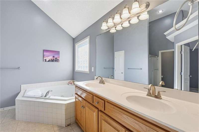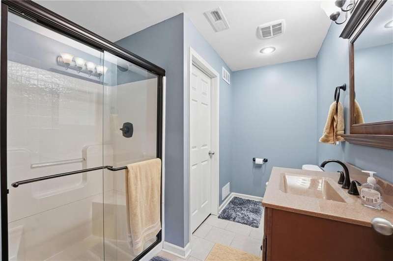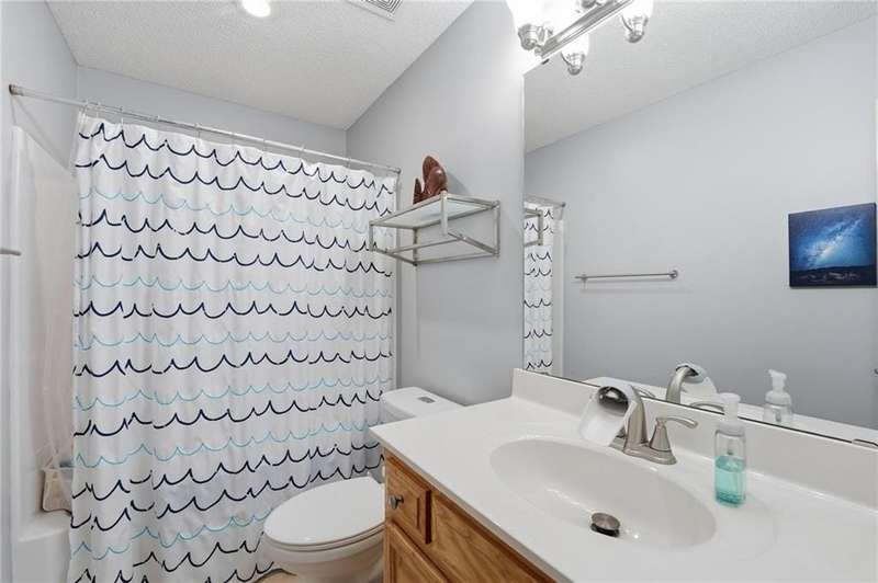 NEW Quartz countertops & deep s/s undermount sink, S/S appliances. 2024 - new roof, gutters, screens, fence. 2020 - New high efficiency Daiken HVAC with air cleaner. Beautifully updated CA split has vaulted ceilings, large windows. Great room has carpet, corner fireplace, ceiling fan. Up few steps to find wood floor in kitchen & dining, with vaulted ceiling, black stainless appliances, full glass door out to large deck with steps down to backyard. 2 bedrooms on this level, full bath has shower over tub, large laundry. Up a few steps to the primary suite. Huge bedroom, vaulted ceiling, fantastic walk-in closet. Primary suite bathroom is definition of luxury, separate vanities, jetted tub, separate shower, vaulted ceiling. Lower level family room has 9' ceilings, walks out to covered patio and lush, fenced backyard. 4th bedroom has large closet. Full bath has tile floor & large shower. The sub basement has 9' ceiling.