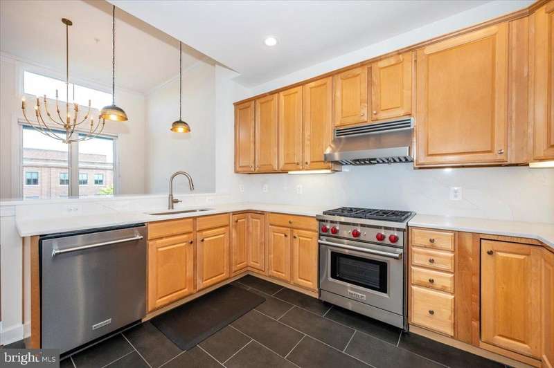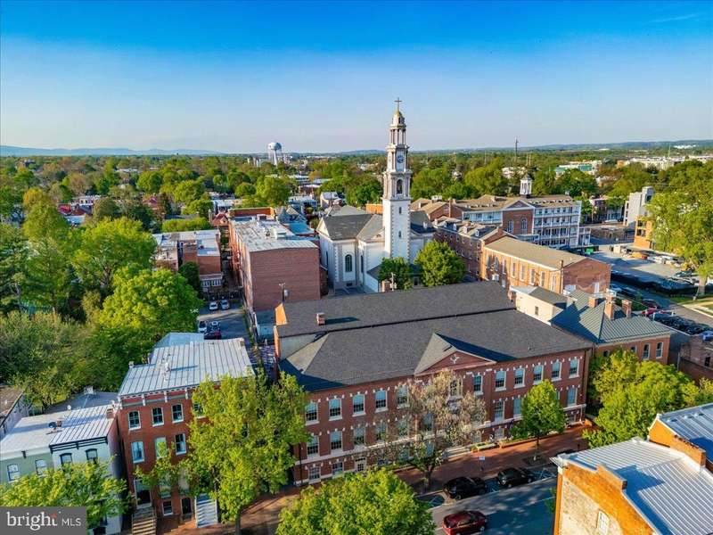 Welcome to the penthouse of the Maxwell Building - a top-floor, 2-bedroom, 2-bathroom condo offering unmatched luxury, prime downtown location, and some of the most spectacular views in Frederick. This rare rental opportunity combines elegant finishes, abundant natural light, and premium building amenities to create a living experience you'll be hard-pressed to find anywhere else. From the moment you step inside, you're greeted by a welcoming foyer - a versatile space perfect for a small desk, reading nook, or a stylish bench to kick off your shoes after a stroll along Carroll Creek. The home opens into an airy, open-concept living and dining area, where vaulted ceilings amplify the sense of space and light. A cozy fireplace adds warmth and character, making this the ideal place to unwind or entertain. Two private balconies offer completely different experiences: one overlooks historic Carroll Creek, where you can listen to the soothing sounds of fountains and watch the gentle flow of water; the other faces the charming Maxwell Plaza courtyard, perfect for sipping your morning coffee. The updated kitchen is a chef's delight, featuring brand-new quartz countertops, a gas range for precision cooking, and abundant cabinetry for all your storage needs. Hardwood floors run through the main living areas, while both bedrooms have been upgraded with brand-new carpeting for ultimate comfort. The spacious bedrooms are filled with natural light, and the two full bathrooms are beautifully appointed with tasteful finishes. This secure, elevator-access building ensures peace of mind and convenience, with controlled entry and well-maintained common areas. Your lease includes two reserved garage parking spaces and access to a private indoor, lockable storage unit - a rare luxury in the heart of the city. Residents also enjoy the on-site fitness center, so staying active is easy without ever leaving home. Perfectly located just steps from Downtown Frederick's finest dining, boutique shopping, art galleries, and entertainment, this home offers the very best of city living with a touch of tranquility.