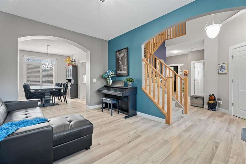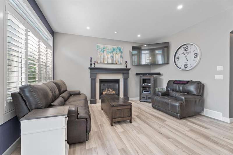 Discover this warm and welcoming family home in Drake Landing, featuring modern updates and a layout designed for everyday living and entertaining. Step into the inviting foyer with open to below ceilings that create a bright and airy first impression. The renovated kitchen is a true standout, featuring white cabinetry, quartz countertops, a stylish tile backsplash, and a corner pantry for added storage. The sunny breakfast nook is perfect for casual meals, while the adjoining living room with a cozy gas fireplace sets the stage for family gatherings. A large formal dining room and a second living space on the main floor add versatility and room to entertain. With five bedrooms upstairs, there’s no shortage of space for a growing family. The main floor bedroom can offer flexibility as a private office or den. Upstairs, the primary suite has a walk in closet and an ensuite with a soaker tub, walk in shower, and water closet. Three additional generously sized bedrooms, plus convenient upper level laundry, ensure comfort and practicality. The unfinished basement awaits your personal touch, offering endless possibilities—whether you need more bedrooms, a rec room, or multi-generational living space. Dual furnaces and air conditioners keep the home comfortable year round. Enjoy summer evenings in the south facing backyard, complete with a large deck ideal for family barbecues and entertaining. California shutters throughout the main floor elevate the style, while the mudroom offers convenient access to the double attached garage. Located in the family friendly community of Drake Landing, you’ll love being close to schools, parks, shopping, and with quick access to the city. This home truly has the space and layout to grow with your family for years to come. Check out the virtual tour.