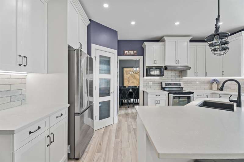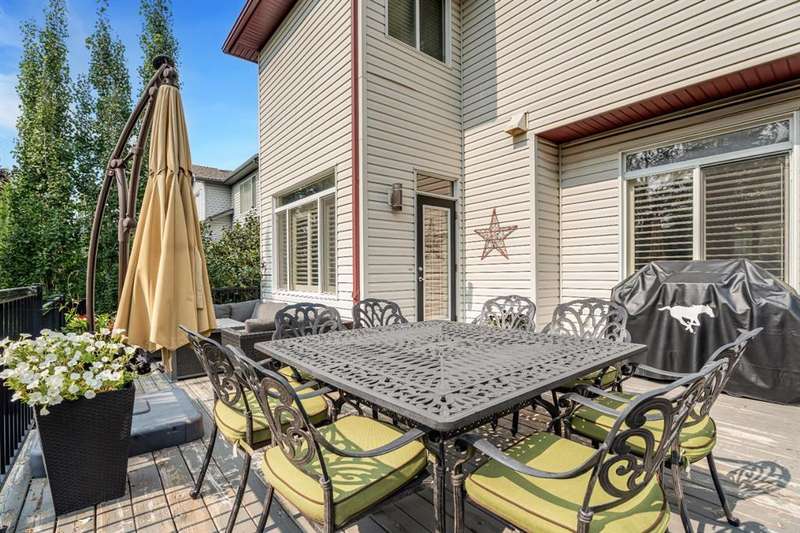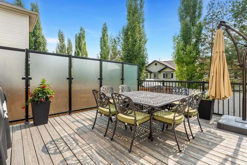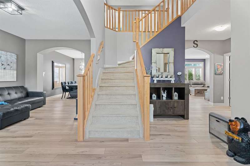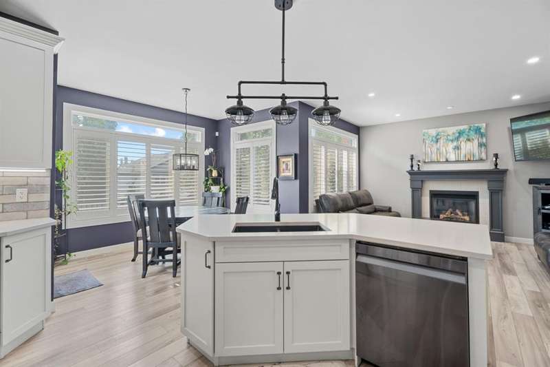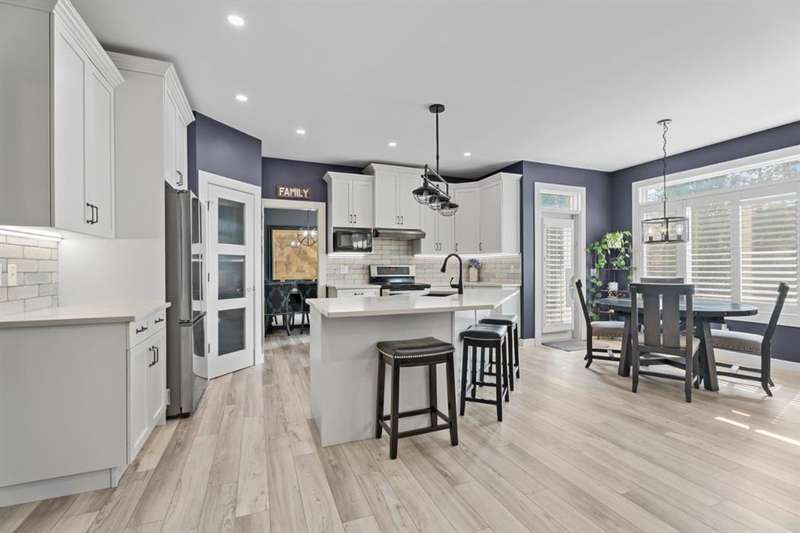 Discover this warm and welcoming family home in Drake Landing, featuring modern updates and a layout designed for everyday living and entertaining. Step into the inviting foyer with open to below ceilings that create a bright and airy first impression. The renovated kitchen is a true standout, featuring white cabinetry, quartz countertops, a stylish tile backsplash, and a corner pantry for added storage. The sunny breakfast nook is perfect for casual meals, while the adjoining living room with a cozy gas fireplace sets the stage for family gatherings. A large formal dining room and a second living space on the main floor add versatility and room to entertain. With five bedrooms upstairs, there’s no shortage of space for a growing family. The main floor bedroom can offer flexibility as a private office or den. Upstairs, the primary suite has a walk in closet and an ensuite with a soaker tub, walk in shower, and water closet. Three additional generously sized bedrooms, plus convenient upper level laundry, ensure comfort and practicality. The unfinished basement awaits your personal touch, offering endless possibilities—whether you need more bedrooms, a rec room, or multi-generational living space. Dual furnaces and air conditioners keep the home comfortable year round. Enjoy summer evenings in the south facing backyard, complete with a large deck ideal for family barbecues and entertaining. California shutters throughout the main floor elevate the style, while the mudroom offers convenient access to the double attached garage. Located in the family friendly community of Drake Landing, you’ll love being close to schools, parks, shopping, and with quick access to the city. This home truly has the space and layout to grow with your family for years to come. Check out the virtual tour.