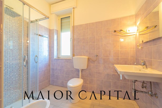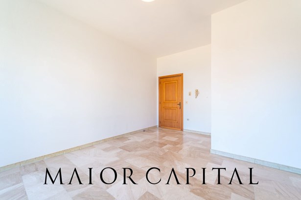The apartment opens onto a spacious and bright living area, made particularly airy thanks to its double exposure and enhanced by a small outdoor balcony, ideal for relaxing moments outdoors.