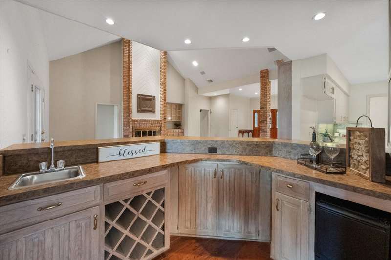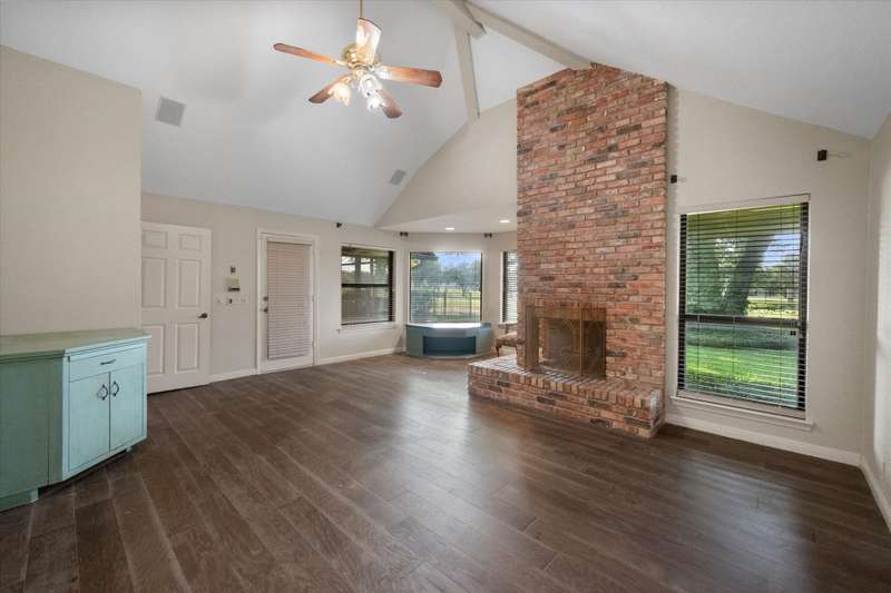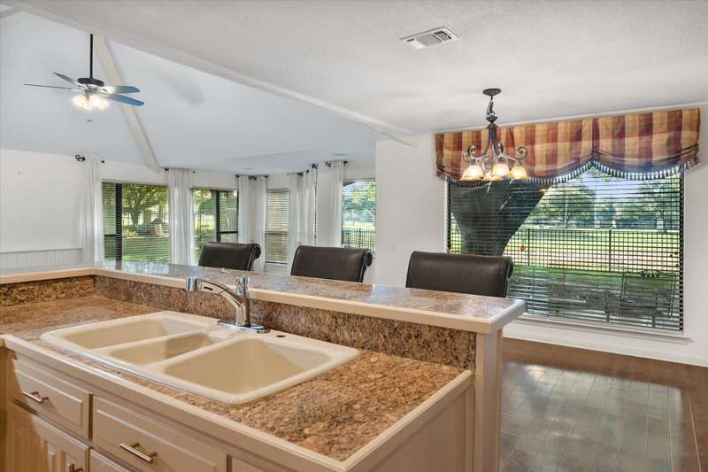 Welcome to this beautifully appointed one-story home tucked away on a quiet cul-de-sac in the sought-after Walnut Creek Valley Subdivision. Perfectly positioned on the golf course, the property showcases sweeping views and the ease of being just minutes from the club. Inside, a thoughtful three-way split floor plan offers privacy and flexibility for everyone. The primary suite rests at the back of the home, complete with a cozy fireplace, a sitting area, and an oversized bath with soaring ceilings and abundant space. Three additional large bedrooms and three full baths provide plenty of room for family and guests. Designed with entertaining in mind, the open concept living area seamlessly connects to the dining spaces and kitchen. Here youll find a breakfast bar, island with cooktop, double oven, and wood floors that flow throughout the space, making it as functional as it is inviting. A built-in bar adds to the homes hosting potential, while the sunroom overlooking the course offers the perfect retreat to enjoy your morning coffee or simply relax and take in the view. Outdoors, lush mature trees, beautifully landscaped yard, and a fenced side yard create both beauty and versatility. Expansive golf course views set the stage for relaxing weekends or memorable gatherings. As a separate standout feature, the oversized three-car garage is a true rarity. Not only does it provide ample parking, but its sheer size offers extraordinary space for storage, a workshop, or even recreational gearideal for those needing more than just the standard garage. Whether youre hosting friends, retreating to your private suite, or taking in the peaceful course-side scenery, this home blends comfort, function, and lifestyle in every detail.