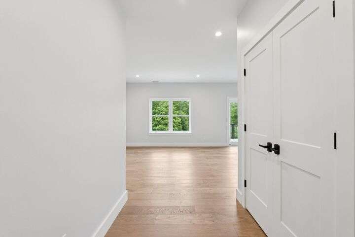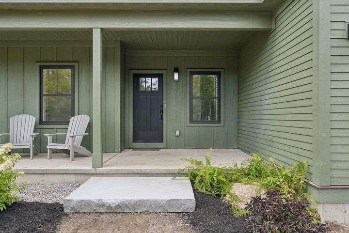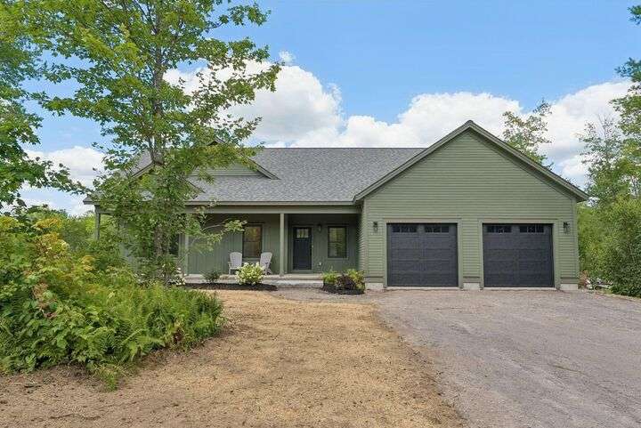 This refined ranch is intentionally designed with energy efficiency and comfortable living at its core. Quality craftsmanship via Northern Building and Design, brings to life a vision of harmonious living with the surrounding natural environment through sustainable building practices and green building technology. An inviting farmers porch covers the front entryway, black framed Marvin windows contrast an alluring green ''smart'' sided exterior- board and batten, coupled with clapboard provide texture accent with matching trim and fascia create a unified, sharp aesthetic. The first floor consists of an open kitchen and living space, 2 sizable bedrooms - primary bedroom with en suite bathroom and double closet. An additional bedroom, dedicated laundry room off of the kitchen, direct access to the garage and sliding door to the back deck. The basement is finished with walkout access. A third bedroom, great room, utility room and living space, with stubbed in electric and plumbing for a kitchenette. All homes in the Douglas Ridge subdivision are double wall construction, net zero ready homes, installed with Fuji Clean septic systems and shared communal leach field. Interested Buyers have the ability to make aesthetic interior selections. Surrounded by 280 acres of conservational land, the setting of Douglas Ridge is idyllic and tranquil, situated conveniently on the outskirts of downtown Brunswick, within striking distance to Maine St. shopping, restaurants and Bowdoin College. Truly an innovative, one of a kind subdivision, come and see yourself at home in Douglas Ridge!