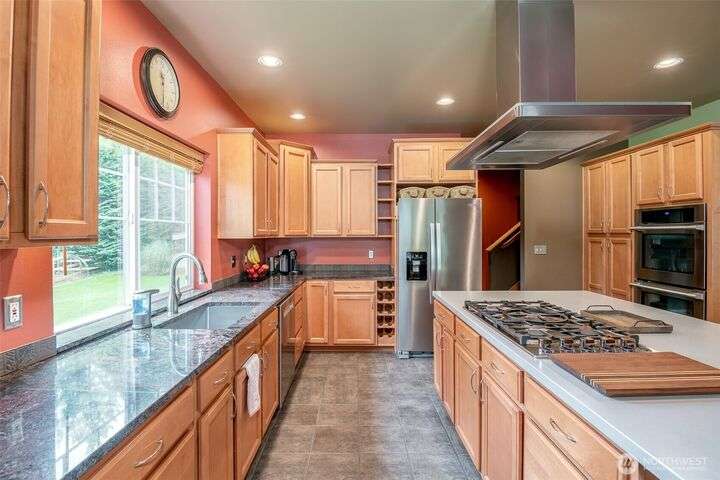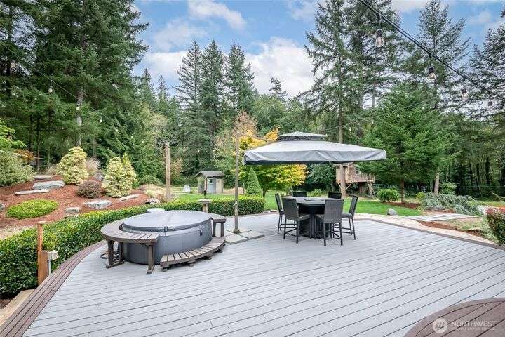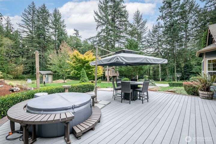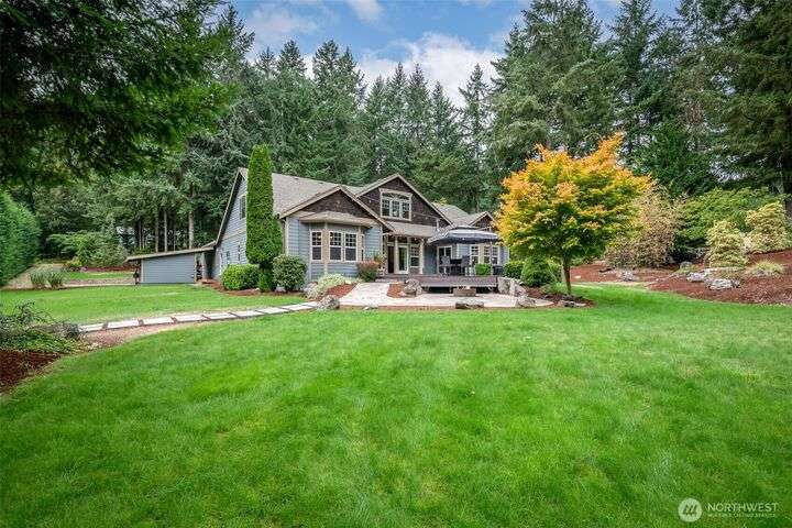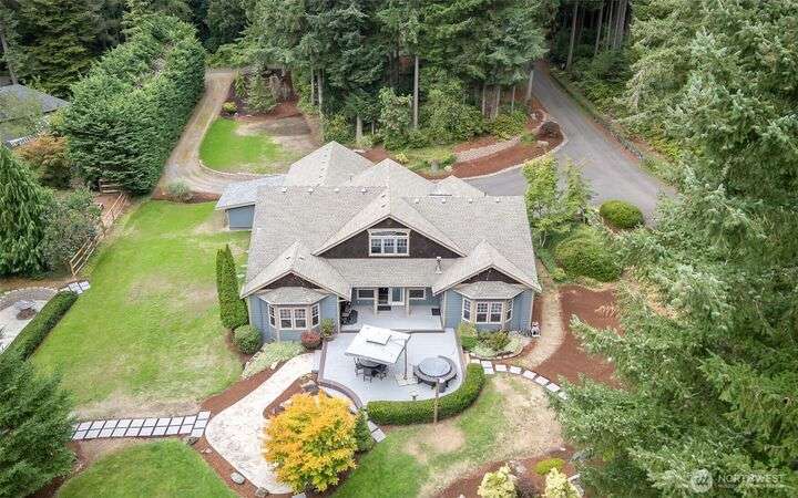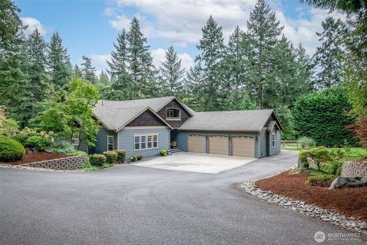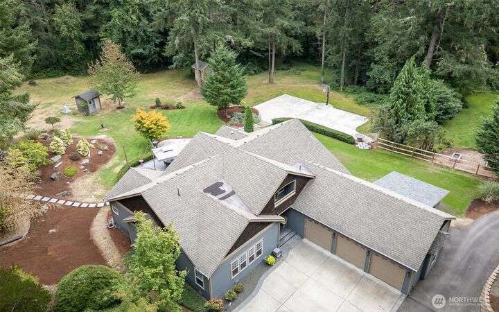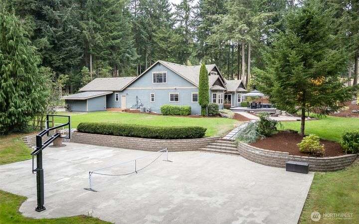 Nearly 3 acres of beautifully landscaped privacy surrounds this custom built estate tucked into an area of high end homes near Horsehead Bay Boat Launch! Lofty vaulted ceilings & windows flood the great room natural light as you enter your new home with all the right upgrades including new kitchen appliances & flooring & a newly remodeled primary bath! Your backyard awaits with an expansive composite deck overlooking the manicured yard w/ Sport Court for basketball & pickleball and custom tree house! Upstairs you will find a large bonus/media room w/ office & just beyond a large attic storage area. HWT w/ circ pump & high efficiency gas furnace, 24x40 covered carport, 12x16 storage shed w/ power for your toys & lawn equipment. Welcome Home!