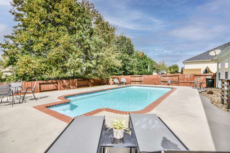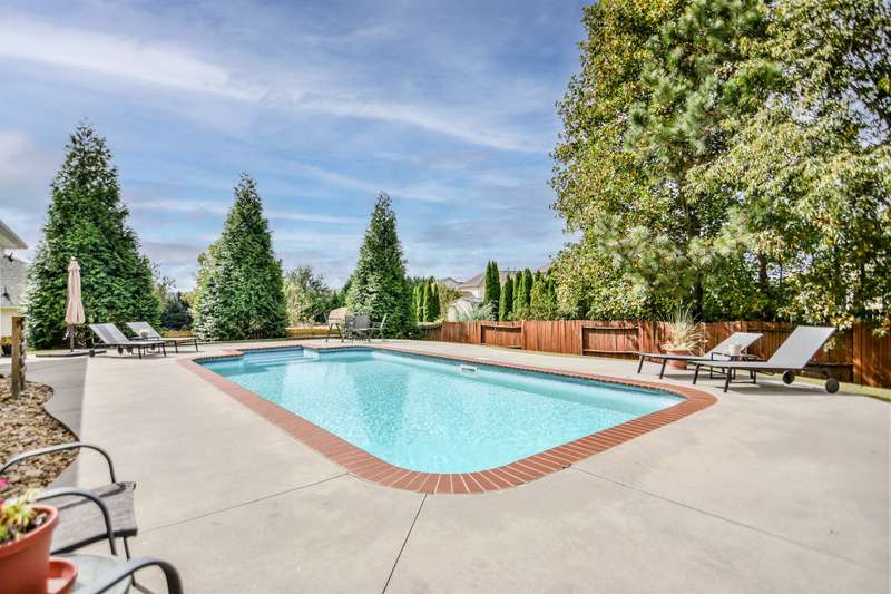 STOP THE CAR!!! THIS is THE ONE! Welcome home to 401 Spirit Mountain Lane in Easley, SC! With an amazing outdoor oasis including an in-ground salt water pool and inviting covered patio, this sweet one-level 3BR/2BA ranch is move-in ready! From the nicely landscaped and maintained yard with irrigation, step onto the covered front porch and into a spacious foyer area. To the right, a large dining room with vaulted ceiling and ship lap accent. The kitchen is a chef's delight with newer cabinetry and handles, quartz countertops, a 5-burner gas range, convenient pantry, coffee bar station area, and opening to the family room! This family room features a vaulted ceiling, a gas log fireplace, and many windows offering a great view of the pool. The split bedroom floor plan provides a private primary suite with trey ceiling and private bath with dual sinks, separate garden tub and shower, plus a large walk-in closet! Notice the lovely added trim work, pretty accent wall paper, and upgraded lighting. Two secondary bedrooms share an updated hall bath making this floor plan so easy! Outback, just imagine all the fun and relaxing times under the southern sunshine in this pretty pool surrounded by a privacy fence and trees! What more could you want? Wait... in additional to designer lighting, lovely paint colors, a pretty walk-in laundry, and more.... the two car garage boasts a ductless heating/cooling system while the home has a newer TRANE XV20 and a Clean Effects Air Filtration system considered to be top notch! Located in this cozy community of Rock Ridge, this property is close to shopping and restaurants of all kinds plus just minutes to downtown Greenville, Anderson, or even the Clemson Tigers! Do NOT miss this gem at 401 Spirit Mountain Lane!