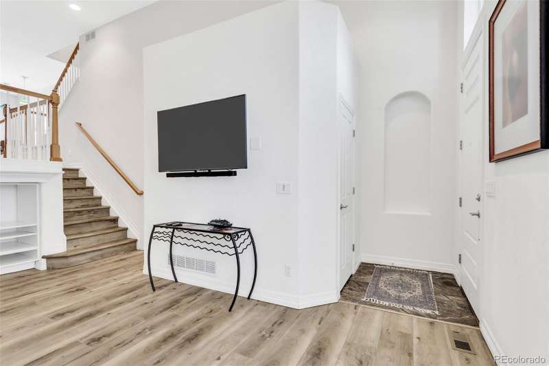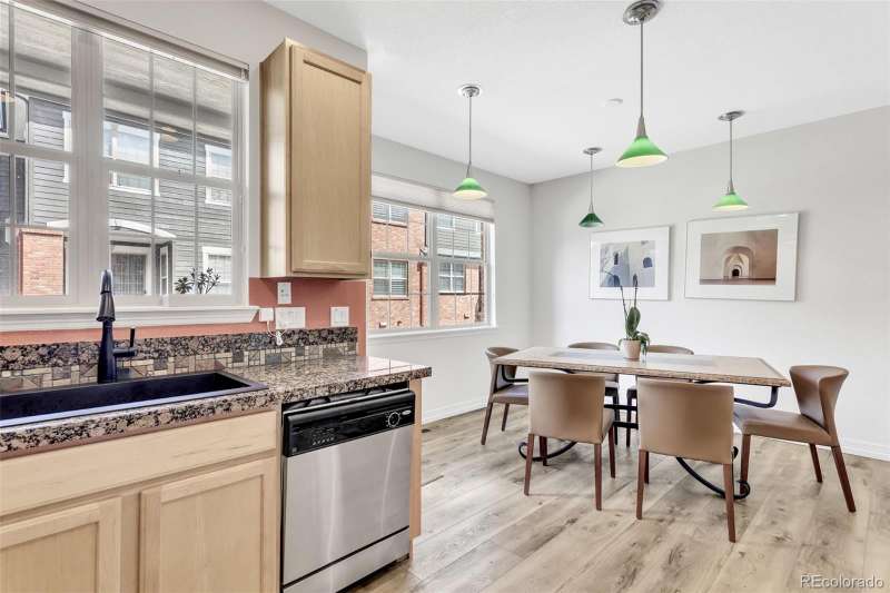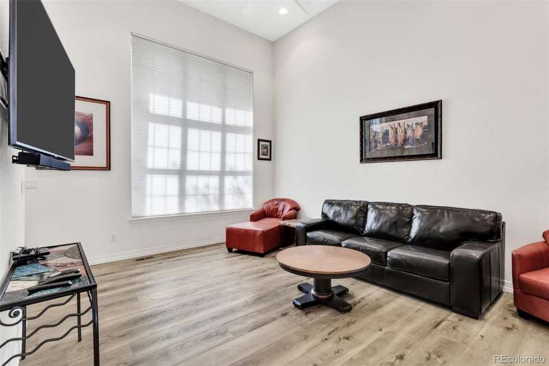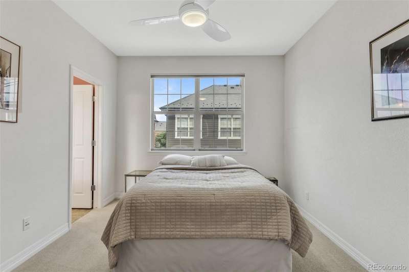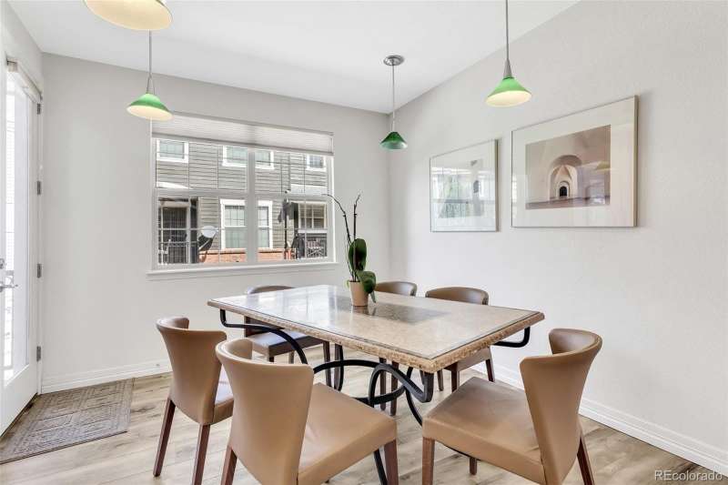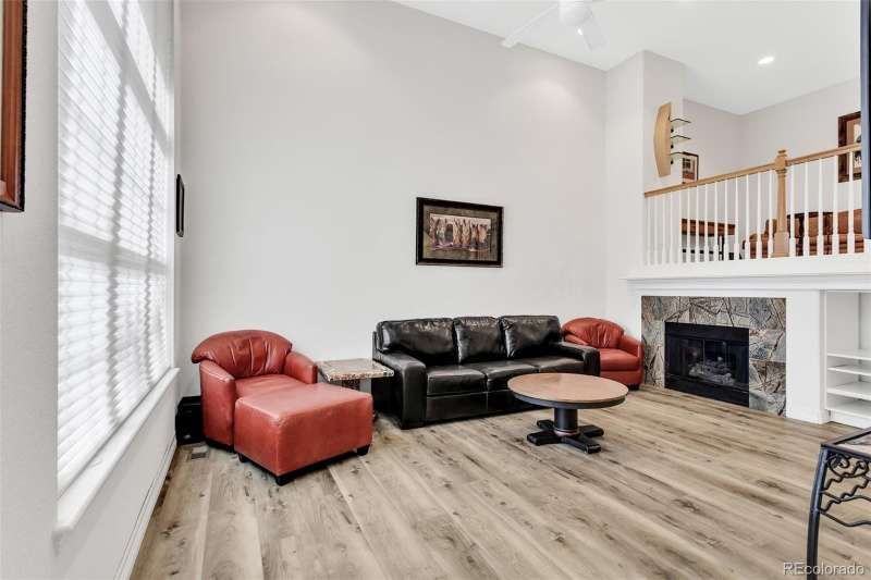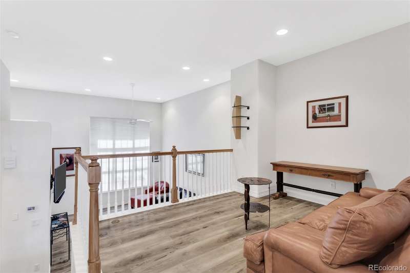 Across from one of Lone Trees beautiful parks you will find this charming townhome. The community is beautifully maintained and is the perfect setting for this very livable townhome. This home has been tastefully updated with LVP flooring as well as neutral colors throughout the home. Kitchen cabinets have drawer pullouts as well as a lazy Susan. New furnace in 2025. New roof within the past year. Main floor has a gas fireplace, perfect for the winter months. Up a few stairs find a flexible space that overlooks the main floor. The kitchen has an area for dining as well as a deck that is perfect for grilling. The upper level has two spacious bedrooms, primary suite and additional bedroom both with custom built-ins in closets. Conveniently the washer/dryer are located on the upper lever. The home is situated close to a town center that features an entertainment center, multiple shops and restaurants, all within close walking distance of this desirable property.