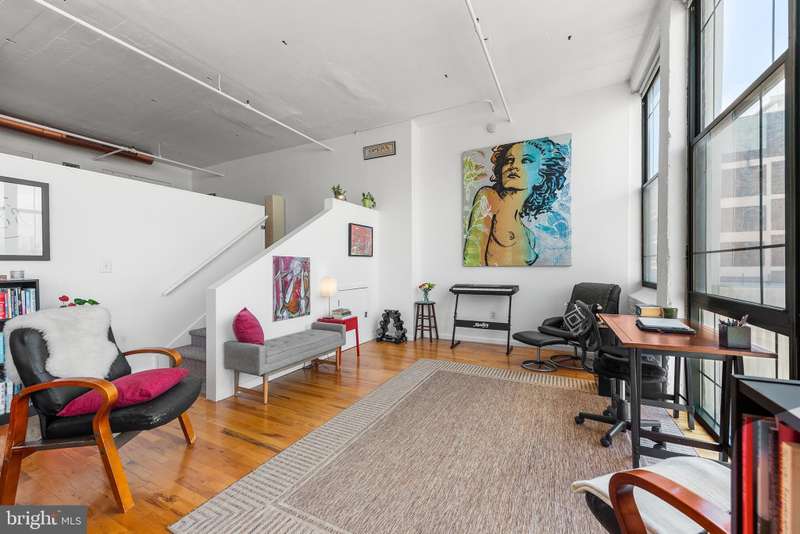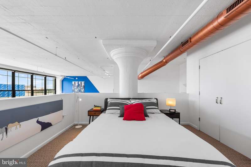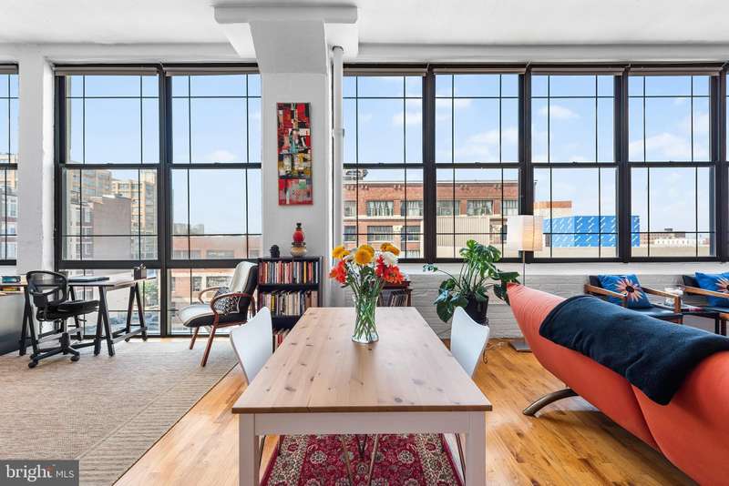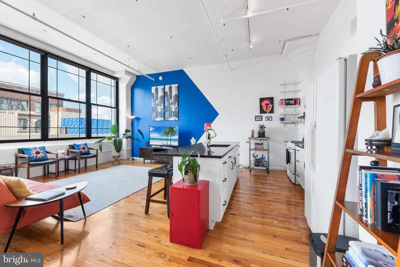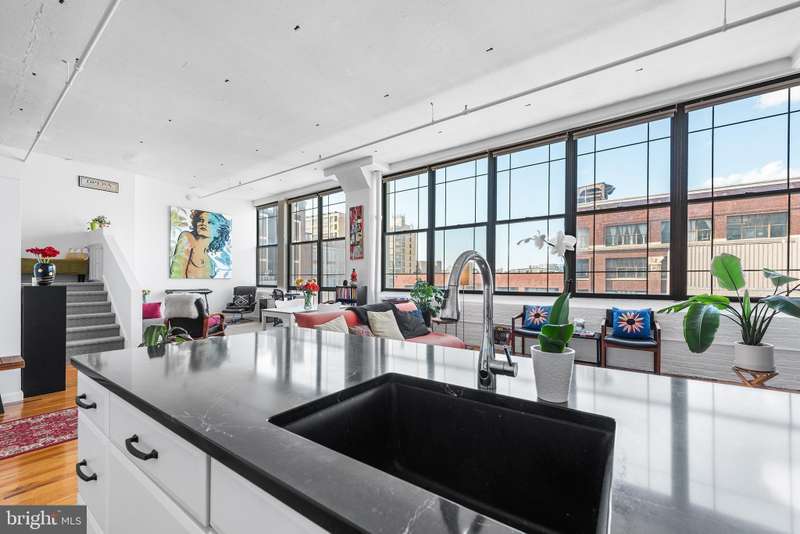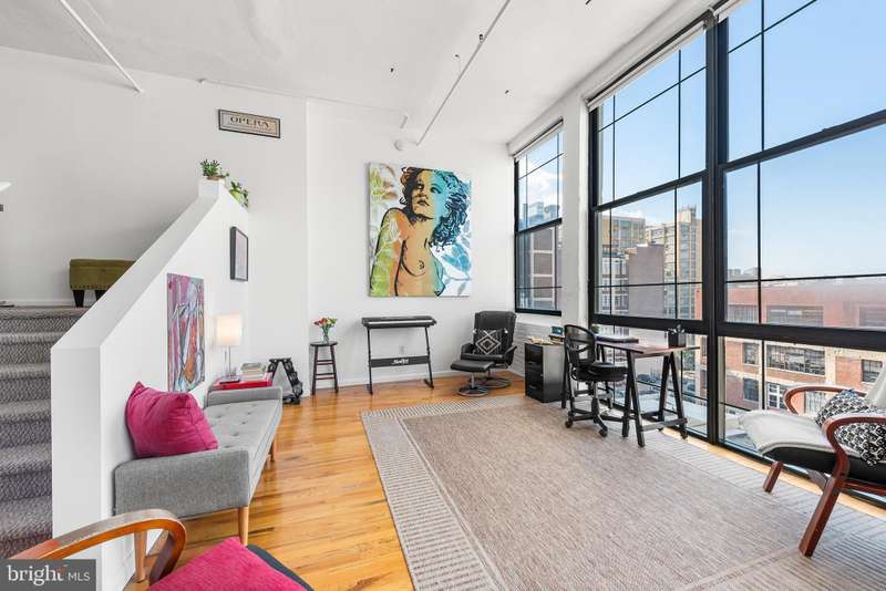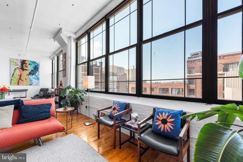 Welcome to Unit #604, a rare gem nestled in the iconic Old Shoe Factory Condominium-a former warehouse turned unique loft building in Callowhill, one of Philadelphia's most dynamic and creative corridors. Rich in character and industrial charm, this building tells a story-and Unit #604 invites you to be part of it. Inside, you'll find a spacious one-bedroom loft flooded with natural light from a dramatic wall of nearly floor-to-ceiling north-facing factory windows. Soaring ceilings, original hardwood floors, and striking black steel window frames set the stage for a true downtown loft experience that feels more Tribeca than typical Philly condo. The open-concept living space is both expansive and intimate. While the minimalist kitchen offers clean lines and a large island making cooking and entertaining effortless-whether you're hosting a dinner party or sketching over coffee. The elevated bedroom adds architectural dimension and cleverly conceals a massive bonus storage area, creatively accessed through a discreet crawl space door-offering an uncommon amount of hidden storage for city living. The deep soaking tub with whirlpool jets is perfect for winding down after a long day, and the in-unit washer and dryer, generous closet space, and newer HVAC system ensure comfort and convenience throughout the seasons. This pet-friendly building allows one dog or one cat, perfect for animal lovers seeking city living without compromise. Parking can be rented off-site, via one of the many nearby lots and ample street parking options are available within the neighborhood. Building amenities include a secure mailroom, elevator, and a chair lift for enhanced accessibility. Just outside your door, you'll find an energetic community surrounded by the Rail Park, art spaces, music venues, and beloved local dining spots like Wood St. Pizza, El Purepecha, and Cafe Lift. Unit #604 is more than a place to live-it's a creative retreat with one-of-a-kind charm, hidden functionality, and a location that keeps you connected to the pulse of the city.
