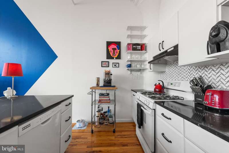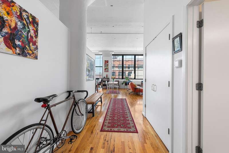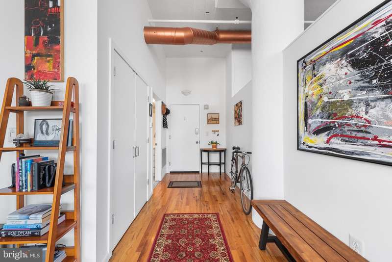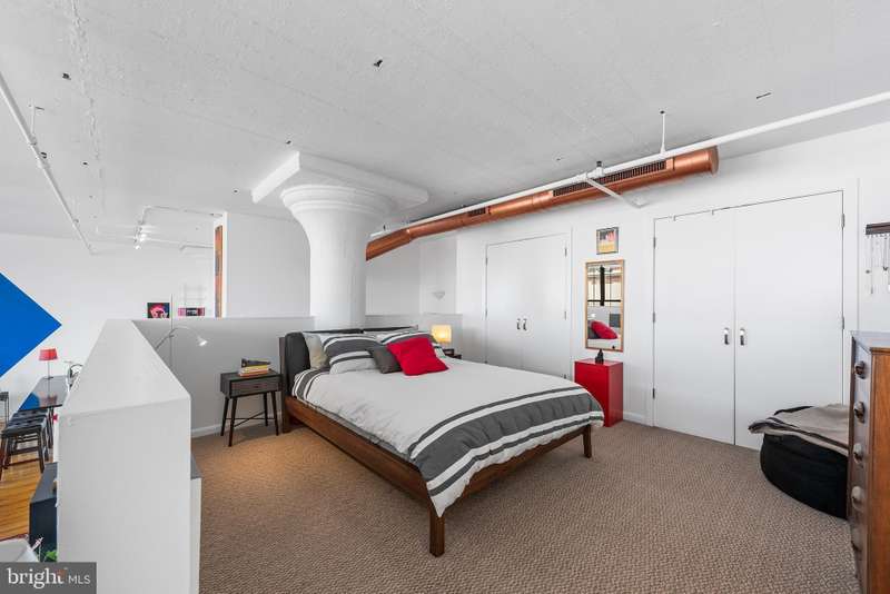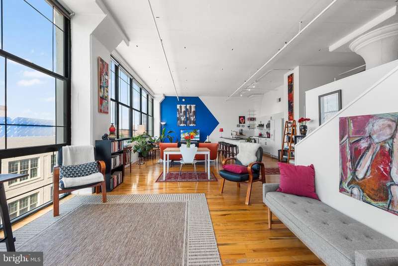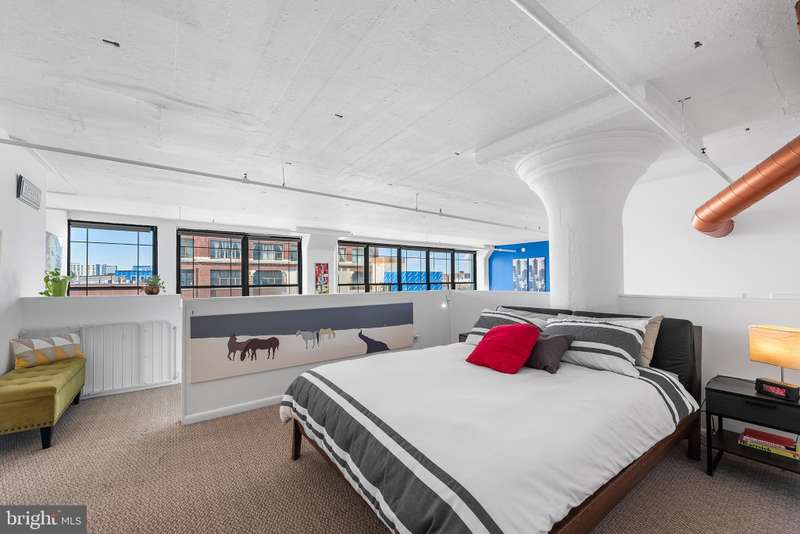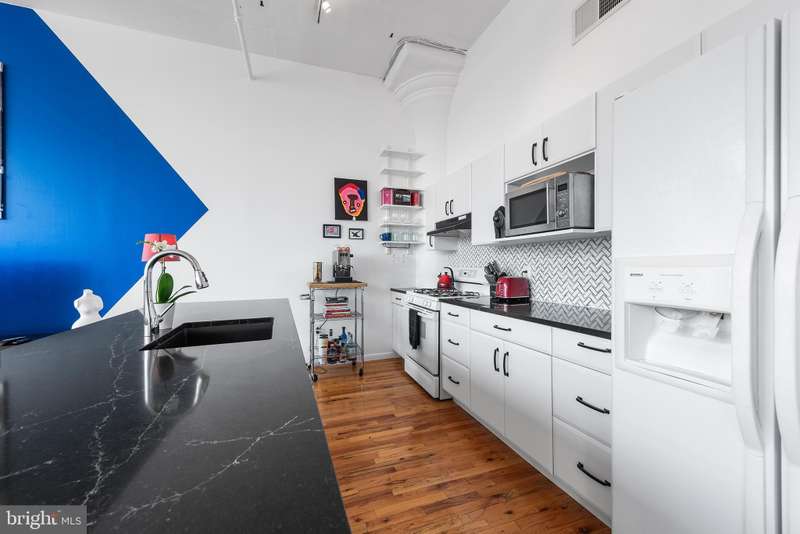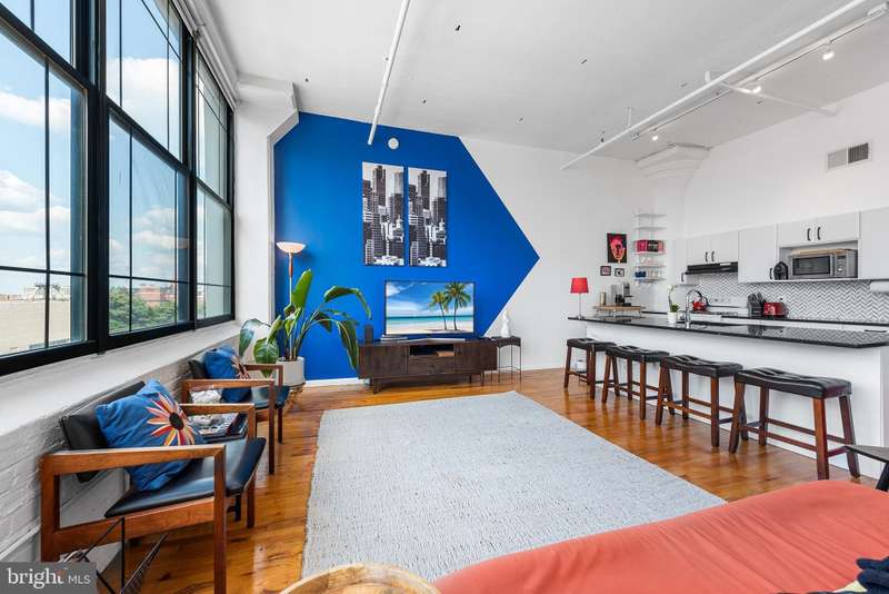 Welcome to Unit #604, a rare gem nestled in the iconic Old Shoe Factory Condominium-a former warehouse turned unique loft building in Callowhill, one of Philadelphia's most dynamic and creative corridors. Rich in character and industrial charm, this building tells a story-and Unit #604 invites you to be part of it. Inside, you'll find a spacious one-bedroom loft flooded with natural light from a dramatic wall of nearly floor-to-ceiling north-facing factory windows. Soaring ceilings, original hardwood floors, and striking black steel window frames set the stage for a true downtown loft experience that feels more Tribeca than typical Philly condo. The open-concept living space is both expansive and intimate. While the minimalist kitchen offers clean lines and a large island making cooking and entertaining effortless-whether you're hosting a dinner party or sketching over coffee. The elevated bedroom adds architectural dimension and cleverly conceals a massive bonus storage area, creatively accessed through a discreet crawl space door-offering an uncommon amount of hidden storage for city living. The deep soaking tub with whirlpool jets is perfect for winding down after a long day, and the in-unit washer and dryer, generous closet space, and newer HVAC system ensure comfort and convenience throughout the seasons. This pet-friendly building allows one dog or one cat, perfect for animal lovers seeking city living without compromise. Parking can be rented off-site, via one of the many nearby lots and ample street parking options are available within the neighborhood. Building amenities include a secure mailroom, elevator, and a chair lift for enhanced accessibility. Just outside your door, you'll find an energetic community surrounded by the Rail Park, art spaces, music venues, and beloved local dining spots like Wood St. Pizza, El Purepecha, and Cafe Lift. Unit #604 is more than a place to live-it's a creative retreat with one-of-a-kind charm, hidden functionality, and a location that keeps you connected to the pulse of the city.