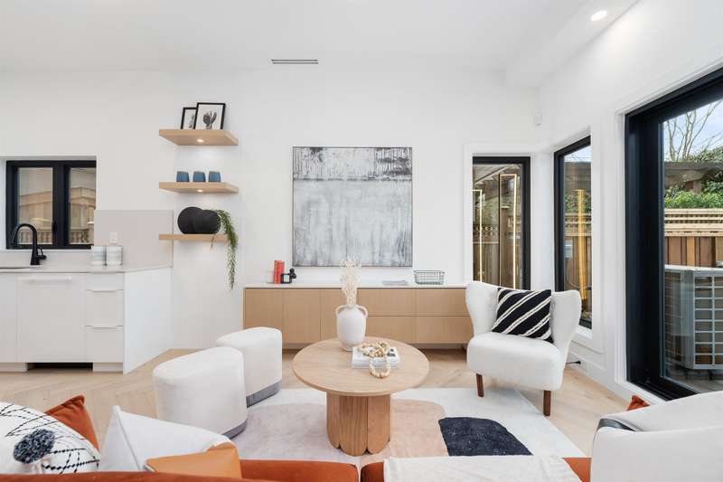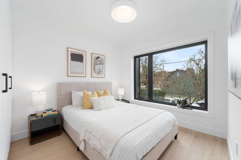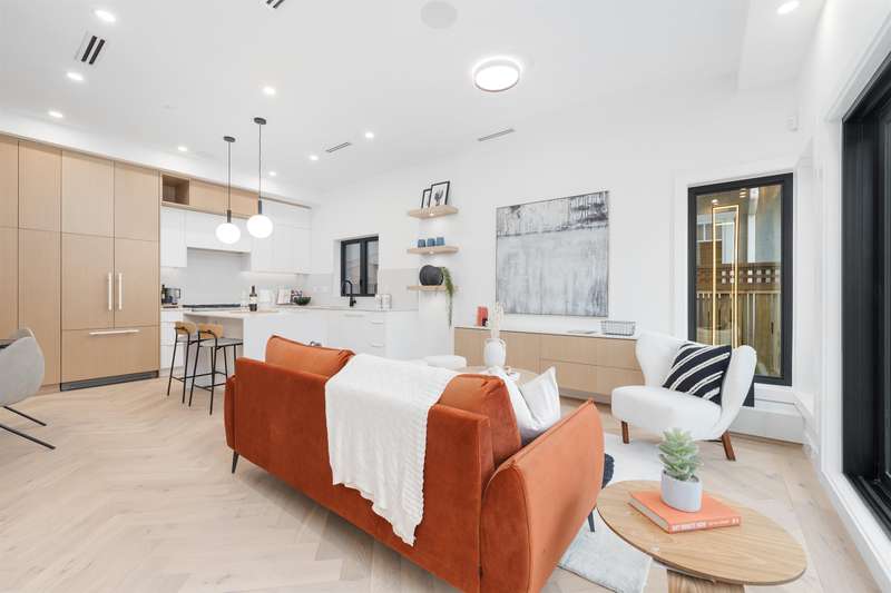 Nestled in Mount Pleasant’s coveted Cedar Cottage neighborhood, this newer Medallion Homes duplex dazzles with 4 bedrooms (3 on one level), 4 baths, and just under 1,700 sqft of stylish living. Built just last year, with NO GST applicable, this home features 10' ceilings, herringbone hardwood, built in speakers, and a metal roof with modern cladding and AC. Enjoy the convenience of an attached garage, extra parking pad, vast crawl space storage, and premium appliances, all backed by a 2/5/10 warranty! Move-in ready! OPEN: Nov 30, SAT 2-4pm