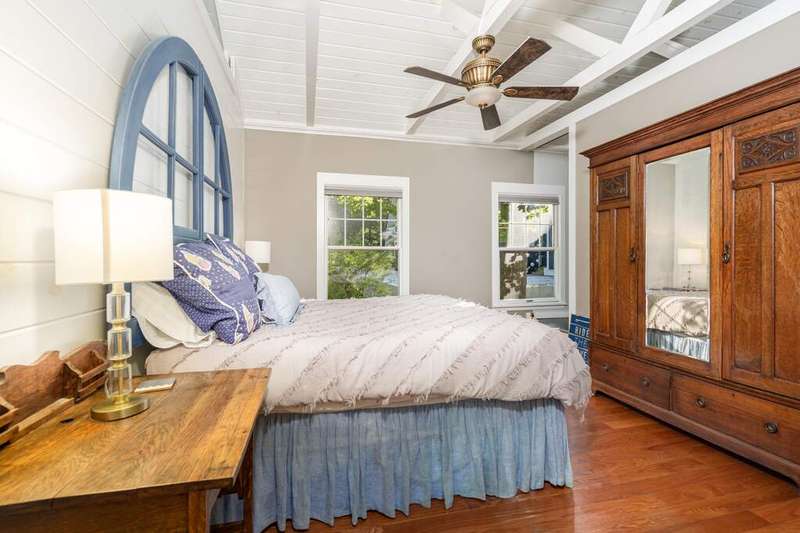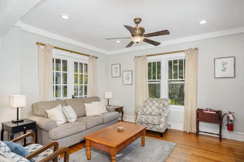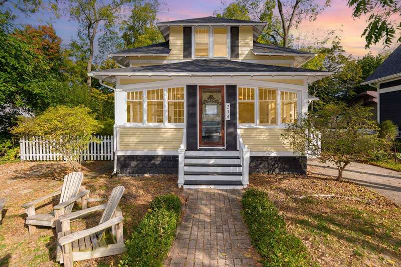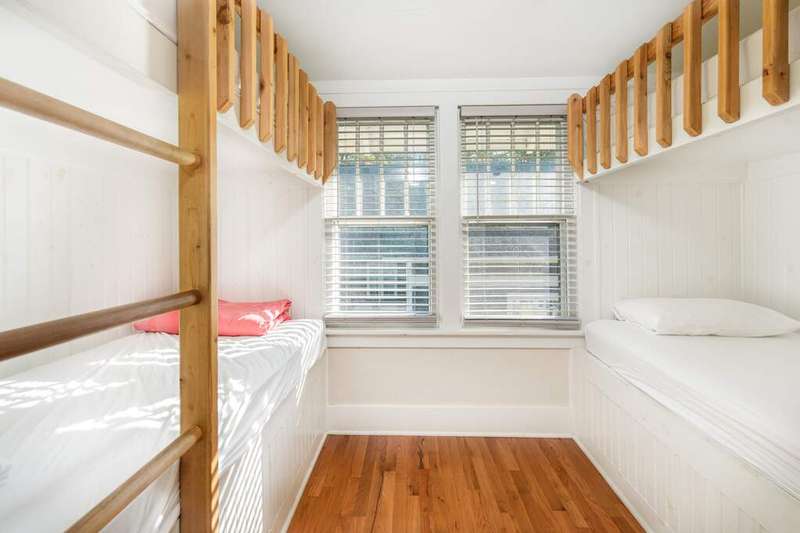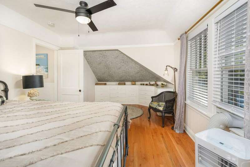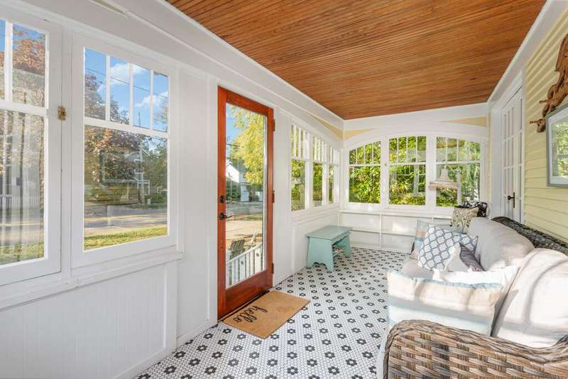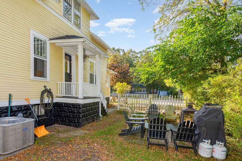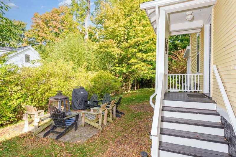 0.1 mi to downtown Saugatuck shops, galleries & riverfront dining Outdoor deck & fire-pit Whole-home generator & central AC. Located in Saugatuck City, this 4 bed, 3 bath home offers approx. 2,000 sq ft of living space plus a full unfinished basement. The main level includes a large primary suite with private bath, a second bedroom, and an additional full bath for convenience. The kitchen features white cabinetry, butcher-block counters, stainless appliances, and a tile backsplash, opening to dining and living areas with hardwood floors and period trim. A bright three-season porch adds flexible space for relaxing or entertaining. The partially fenced yard includes off-street parking for 3-4 cars, a deck for outdoor dining, a fire-pit area, and a potting shed suited for hobbies or garden storage. Includes 3D tour, video, and floor plan. Upstairs, two bedrooms and a full bath are joined by a bunk room with four built-in beds, offering generous accommodations for guests or additional living space. The unfinished basement provides storage and utility options as well as future expansion flexibility. Outdoors, mature trees and landscaping create privacy rarely found so close to downtown, while the deck and patio extend the living space for seasonal gatherings. Public utilities, central air, and a whole-home generator ensure comfort year-round. Just steps from the waterfront boardwalk, marinas, and the Saugatuck Center for the Arts, this property combines in-town convenience with the character and charm of Michigan's lakeshore community.