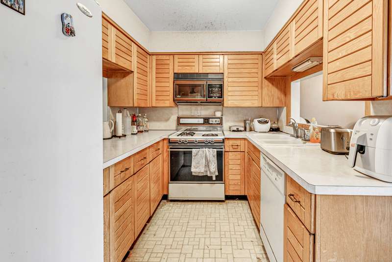 ***WELCOME HOME*** Spacious three-level townhome featuring 3 true bedrooms and 2.5 baths. As you enter, a convenient half bath is located to the left, and a skylight brightens the vaulted ceiling above. Just a few steps up, the main level features a family room with a fireplace, a fully applianced kitchen, an L-shaped dining area, and a living room with sliders opening to a private, fenced-in patio. All three bedrooms are good in size & located upstairs. Primary bedroom has a walk-in closet and private full bath. Two additional bedrooms share the second full bath. Additional features include a 1-car garage, a full basement with a second kitchen, gas heat, and central air. The home is centrally located, close to major shopping, restaurants, and just minutes from the Merritt Parkway. As a bonus, the complex comes with beautiful in ground pool - perfect for those long hot summer days! A strong opportunity for buyers looking to put in sweat equity, renovate or invest. Sold strictly AS-IS.